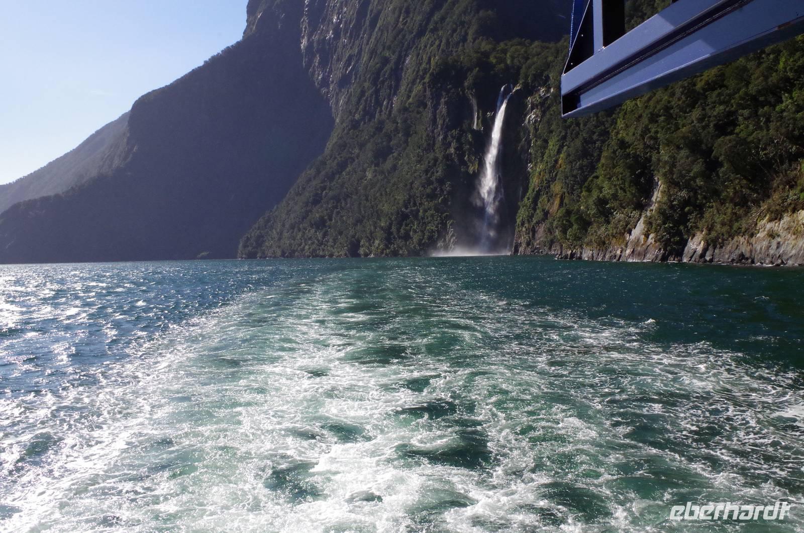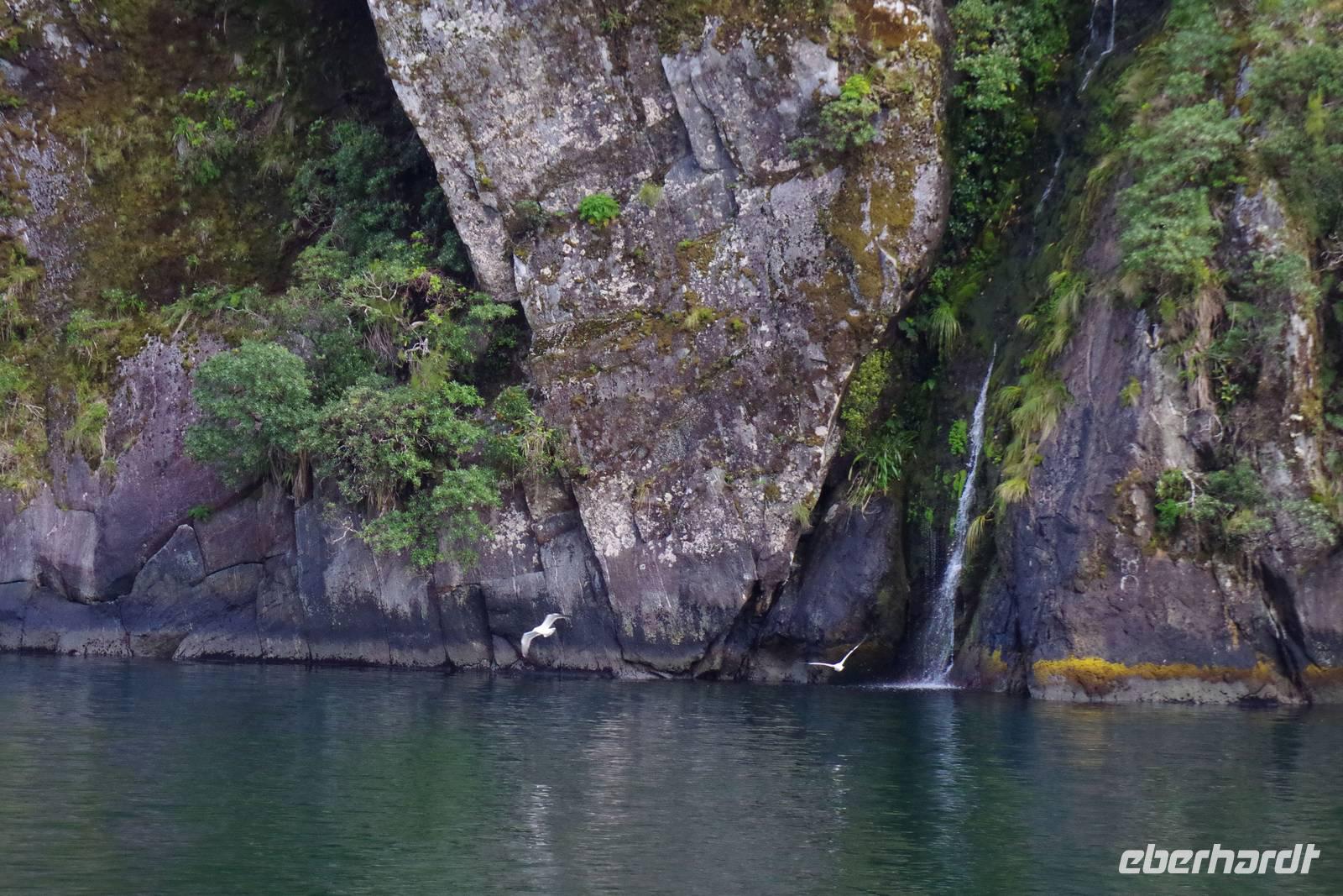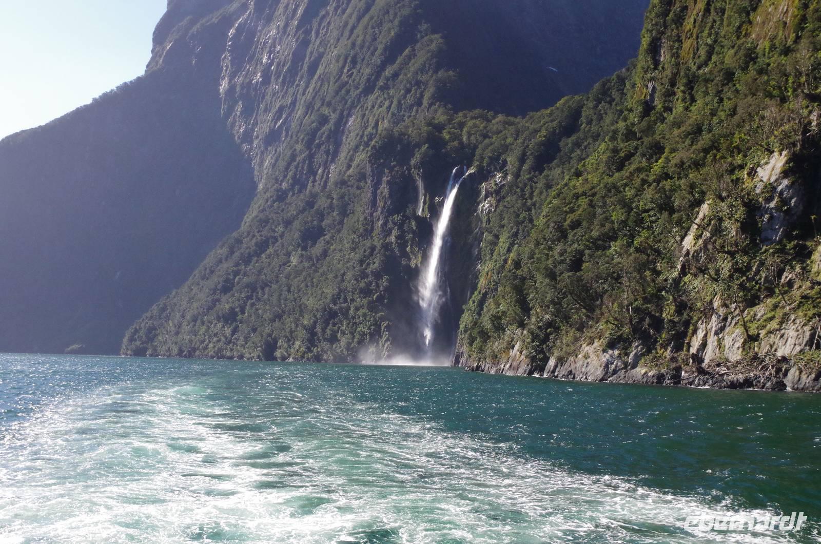 Die Nacht auf See war ruhig und nach einem guten Frühstück genossen wir die Fahrt raus aufs Meer. Wir sahen Gelbkopfpinguine und Robben, die im Wasser spielten. Der Ausblick auf die Berge des Fjords war atemberaubend. Auch der eine oder andere Wasserfall kam vor die Linse des Fotoapparates. Viel zu schnell fuhr die Milford Manier wieder im Hafen ein und es hieß Abschied nehmen.