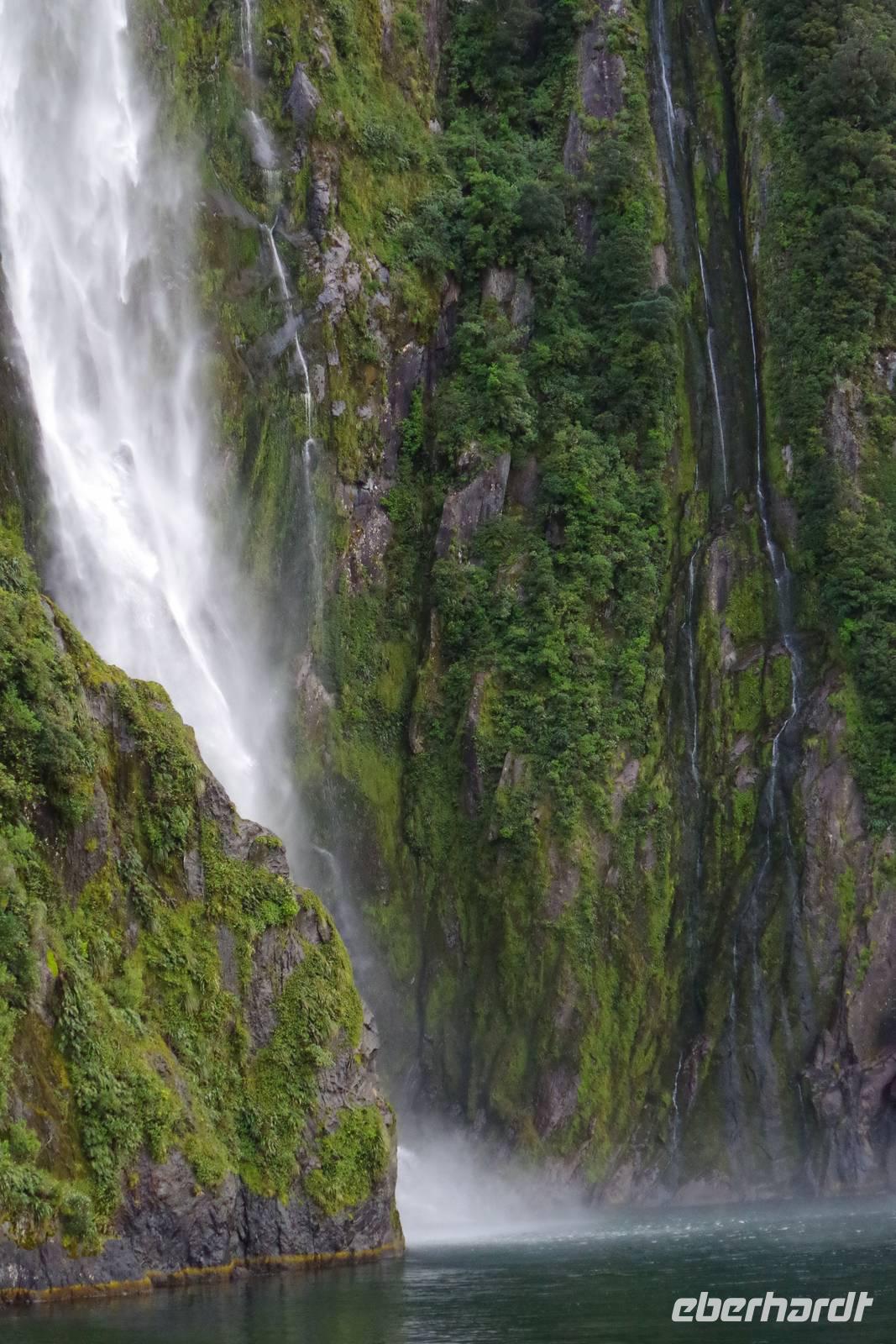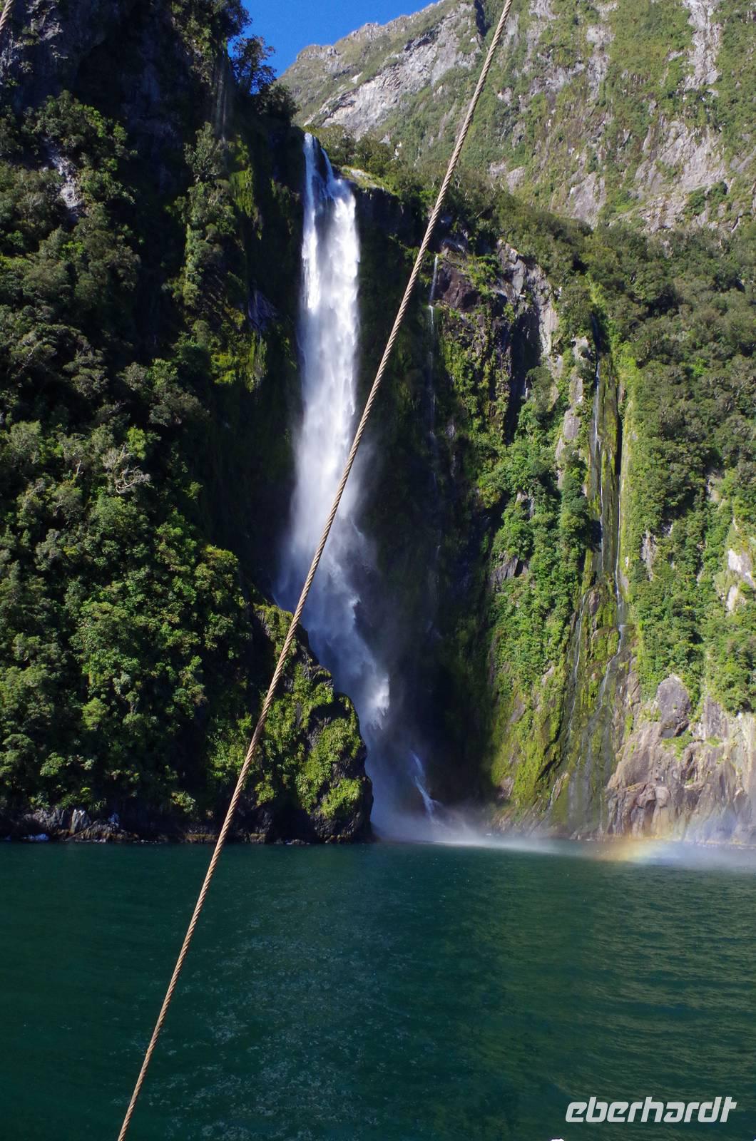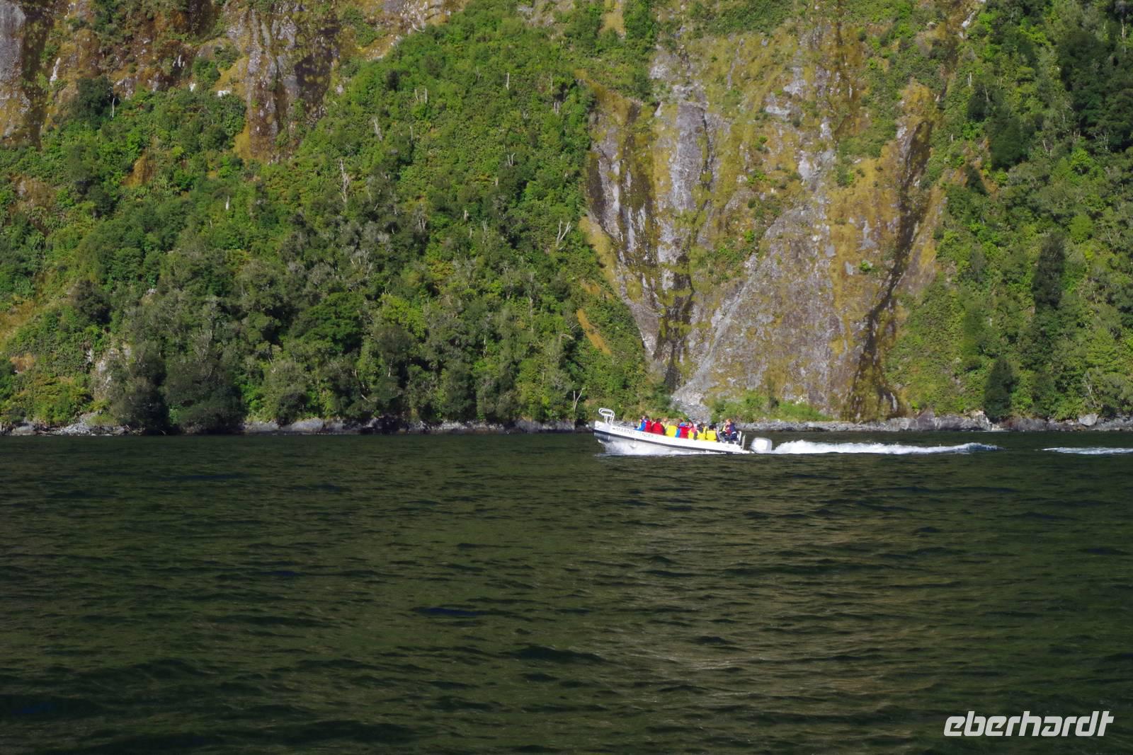 Die Nacht auf See war ruhig und nach einem guten Frühstück genossen wir die Fahrt raus aufs Meer. Wir sahen Gelbkopfpinguine und Robben, die im Wasser spielten. Der Ausblick auf die Berge des Fjords war atemberaubend. Auch der eine oder andere Wasserfall kam vor die Linse des Fotoapparates. Viel zu schnell fuhr die Milford Manier wieder im Hafen ein und es hieß Abschied nehmen.
