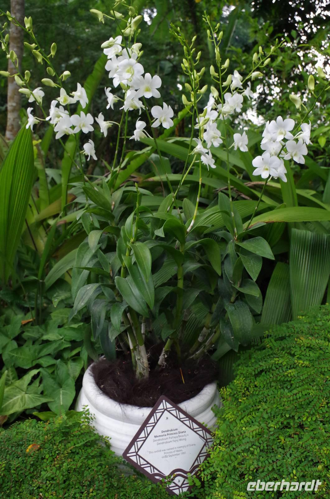 Dem Regen zum Trotz setzten wir unseren Spaziergang fort und entdeckten sogar die berühmten Orchideen, wie zum Beispiel die weiße Orchidee, die nach Prinzessin Diana benannt ist.