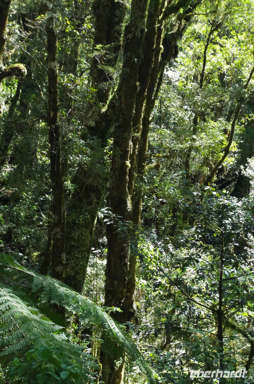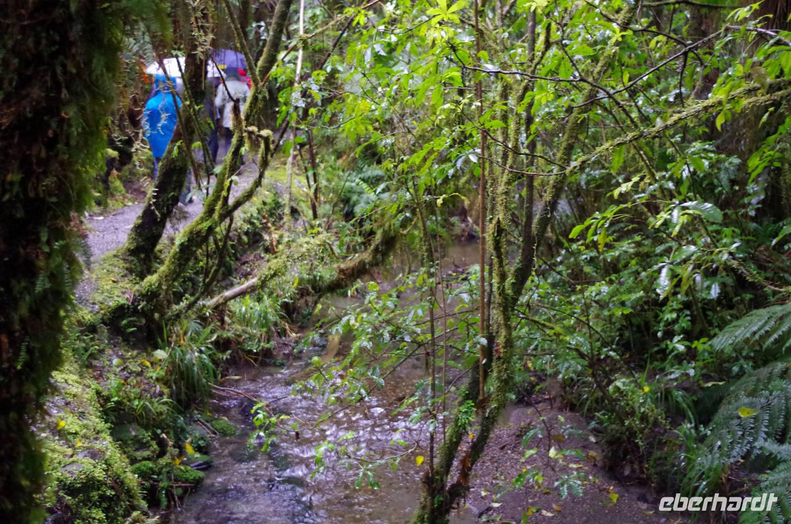 In der Nacht hatte es zu regnen begonnen und auch nach dem Frühstück sah es nicht so aus, als würde es bald aufhören. Aber wie man so schön sagt, gibt es kein falsches Wetter, nur falsche Kleidung. Somit startete unser Regentag nach dem Frühstück mit einem Spaziergang durch den Regenwald. Regenwald bei Regen hat schon etwas Mystisches. Die Farben, die Geräusche und der Geruch sind einmalig. Hans erzählte uns hier auch etwas zum Thema Glühwürmchen und deren Verstecke.