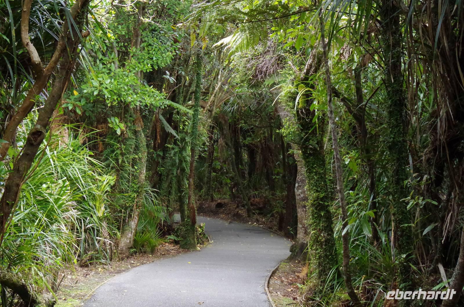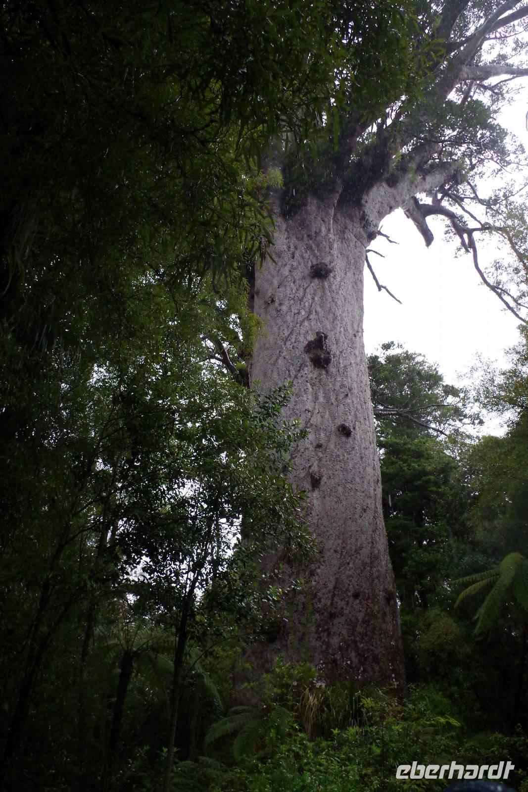 Bevor wir uns aber auf direktem Weg in die Großstadt machten, erfuhren wir noch ein wenig zur Geschichte und Bedeutung des bedeutenden Kauri Baumes von Neuseeland. Im Wapoua Kauri Forest ist der fast 2000 Jahre alte Tane Mahuta (Herr des Waldes) zu finden. Bei einem kleinen Rundgang durch den Wald können wir einen Blick auf den gewaltigen Baum werfen und sind vom Ausmaß dieses Baumes erstaunt.