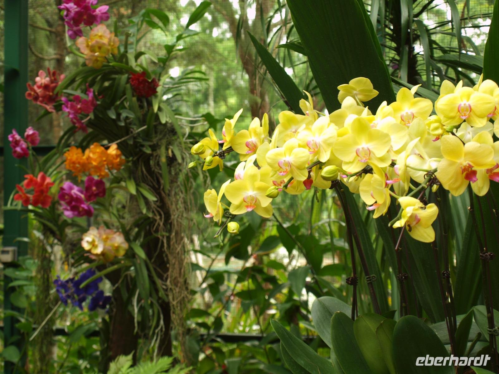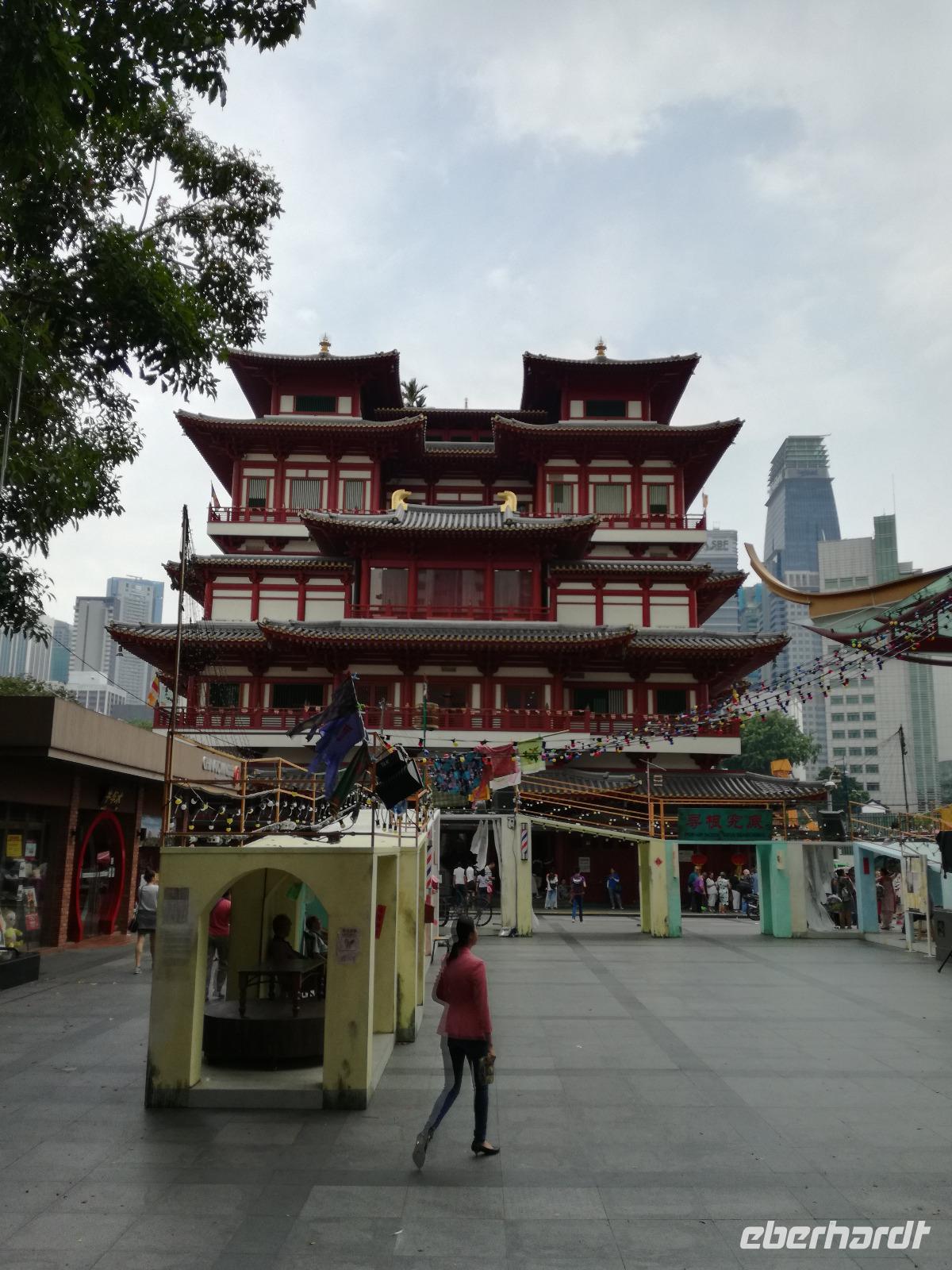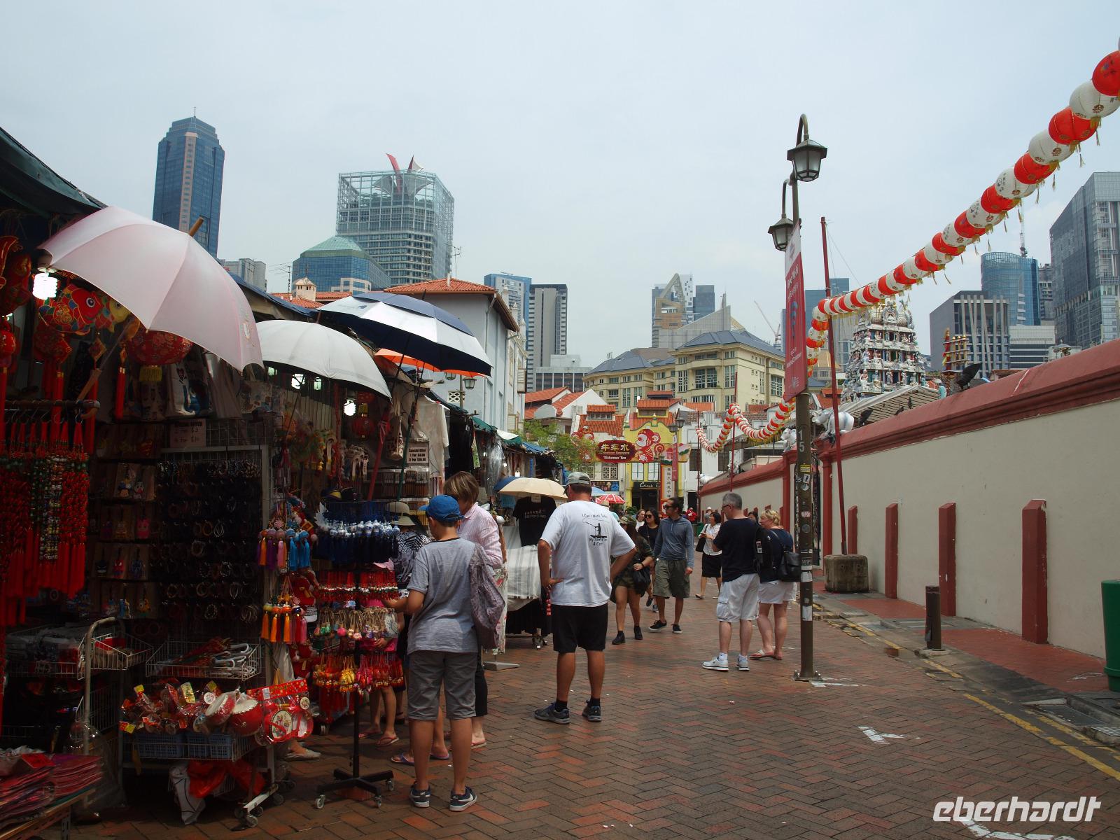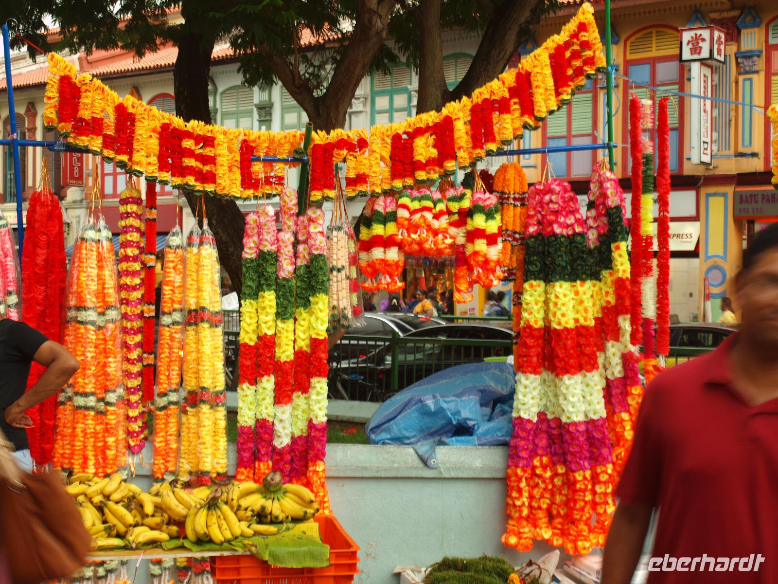 Nach einem ausgiebigen Frühstück fahren wir mit den Taxen zum Hotel Marina Bay Sands. Wir wollen auf die Aussichtsplattform im dritten Turm hinauf um von dort Singapur bei Tageslicht zu betrachten, bevor wir später mit der Stadtrundfahrt weiter machen. Gegen Mittag sind wir dann alle Abfahrtbereit und warten ungeduldig in der Hotellobby. Wir laden die Koffer in den Bus und beginnen die Tour in den Gardens by the Bay, die wir bisher ja nur von weitem oder von oben gesehen hatten. David führt uns ein Stück in die Gärten hinein, von hier sieht man die riesigen Superbäume am besten. Weiter geht die Fahrt nach Chinatown, hier schlendern wir durch die bunten, mit Girlanden verzierten Gassen. Wir kosten auch die leckere Königin der Früchte, eine Mangostane. Wir laufen entlang der Mauern eines alten Hindu Tempels und besichtigen das Wahrzeichen Chinatowns, den Buddha Tooth Relic Temple, dieser wurde allein für die Beherbergung eines Zahnes von Buddha errichtet. Unser nächstes Ziel ist der Orchideengarten im großen Botanischen Garten Singapurs. Er ist der größte der Welt und man kann sich dort über 1.000 verschiedene Arten anschauen. Darunter auch sehr seltene Exemplare die es nur in diesem Garten gibt, selbst unsere Angela Merkel hat hier eine Orchidee zu ihren Ehren erhalten. Nach einem kleinen Rundgang mit David gehen wir wieder zurück, denn es kündigt sich ein Gewitter an... Doch noch haben wir Glück und kommen trocken in den Stadtteil von Little India, hier wird gerade das Lichterfest „Diwali" vorbereitet welches am 29. Und 30. Oktober gefeiert wird. Dementsprechend herrscht auch ein reges Treiben in den Straßen...