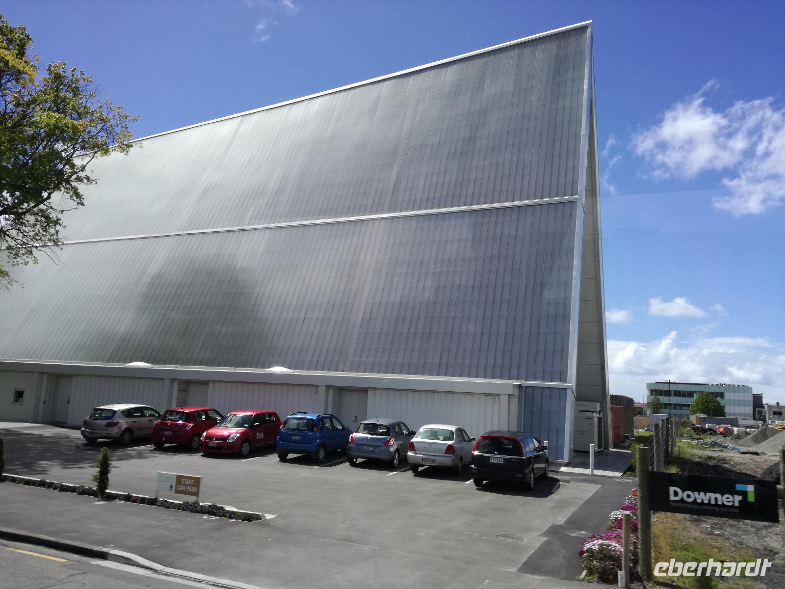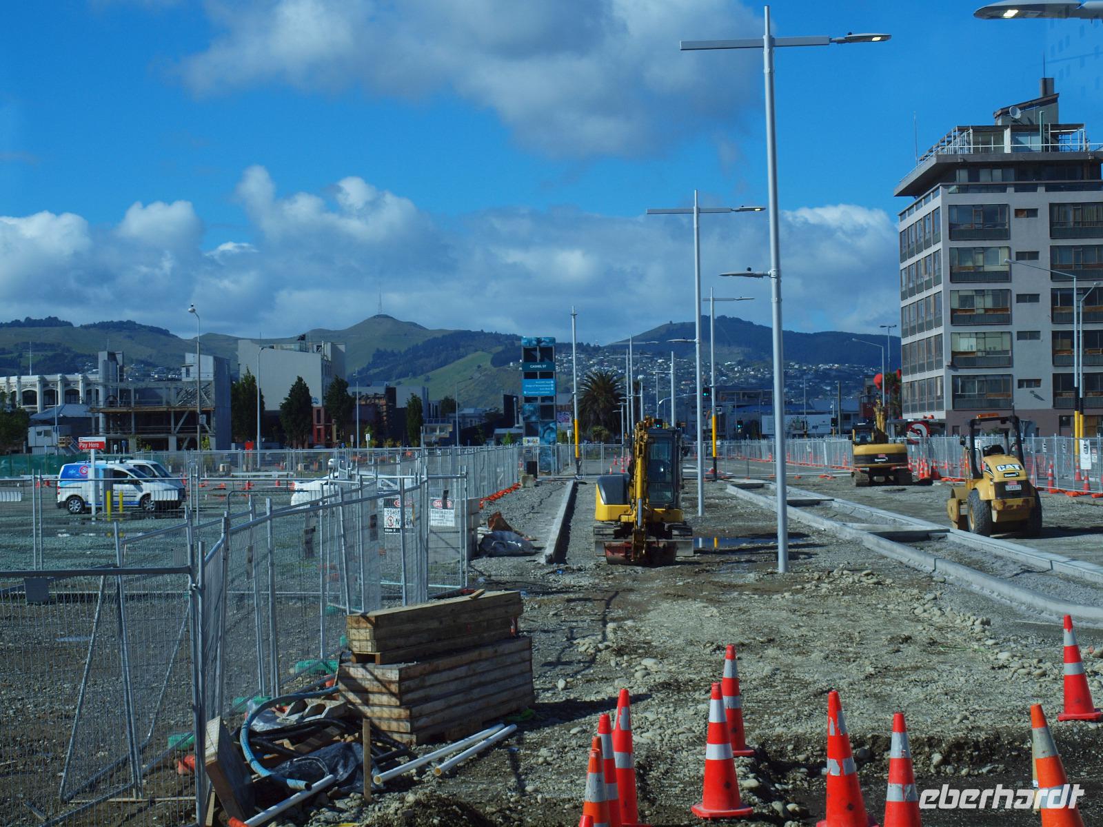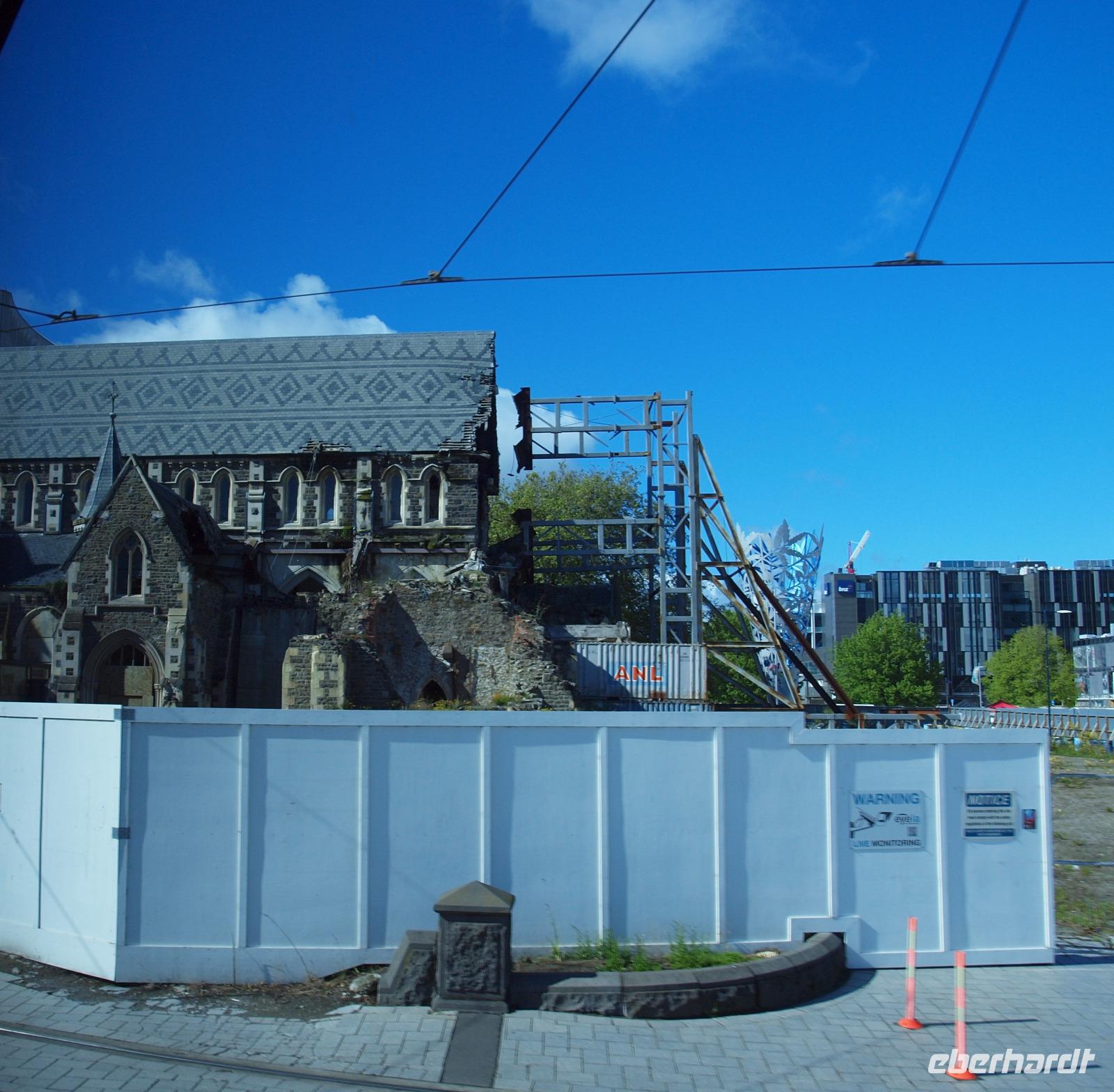 Wir landen pünktlich am Vormittag in Christchurch und freuen uns auf festen Boden unter unseren Füßen. Einige von uns müssen sich nur noch einer etwas genaueren Kontrolle unterziehen, doch dann sind wir endlich angekommen. Hans, unser Reiseleiter für die nächsten Wochen, heißt uns herzlichen Willkommen am anderen Ende der Welt. Wir beginnen gleich mit einer kurzen orientierenden Stadtrundfahrt, leider ist noch recht viel kaputt aufgrund des Erdbebens 2011. So langsam erheben sich neue Gebäude aus dem Boden, die Parkanlagen verleihen der Stadt einen freundlichen Touch und die Menschen scheinen auch endlich wieder aufzuatmen. Wir fahren durch die Straßen, die noch zum großen Teil Baustellen sind und halten an der „Christchurch Kathedrale", das Wahrzeichen der Stadt. Sie wurde bei dem Erdbeben schwer beschädigt und wird seither mit einem Baugerüst abgestützt. Wie es mit dem Gebäude weiter geht ist noch unklar, viele hoffen jedoch auf einen Wiederaufbau.