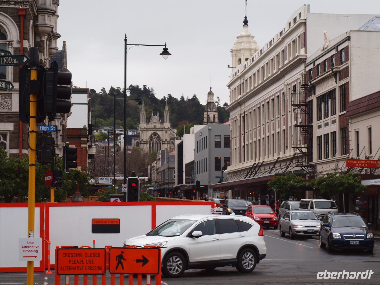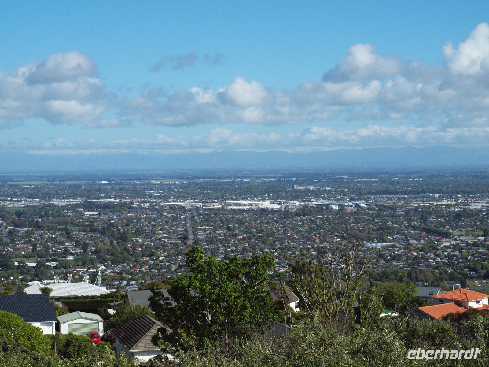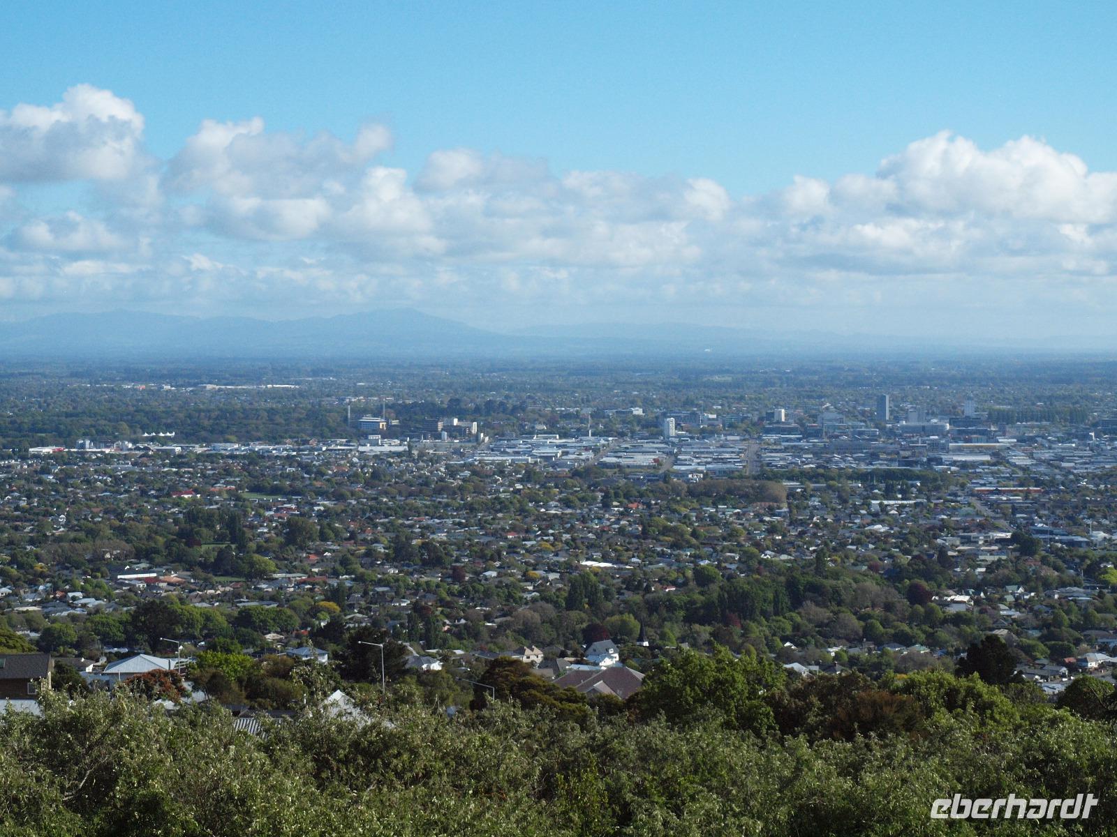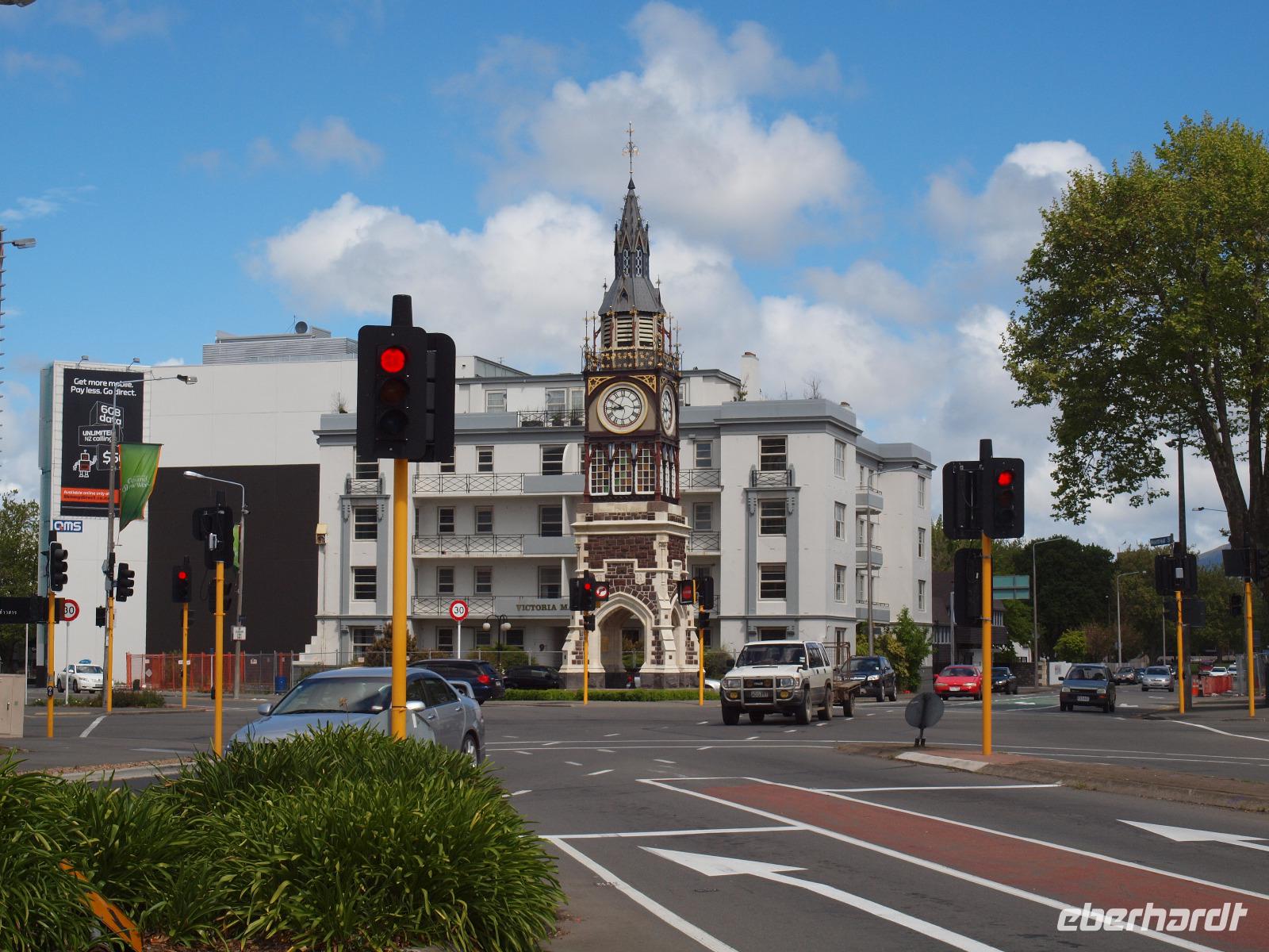 Wir landen pünktlich am Vormittag in Christchurch und freuen uns auf festen Boden unter unseren Füßen. Einige von uns müssen sich nur noch einer etwas genaueren Kontrolle unterziehen, doch dann sind wir endlich angekommen. Hans, unser Reiseleiter für die nächsten Wochen, heißt uns herzlichen Willkommen am anderen Ende der Welt. Wir beginnen gleich mit einer kurzen orientierenden Stadtrundfahrt, leider ist noch recht viel kaputt aufgrund des Erdbebens 2011. So langsam erheben sich neue Gebäude aus dem Boden, die Parkanlagen verleihen der Stadt einen freundlichen Touch und die Menschen scheinen auch endlich wieder aufzuatmen. Wir fahren durch die Straßen, die noch zum großen Teil Baustellen sind und halten an der „Christchurch Kathedrale", das Wahrzeichen der Stadt. Sie wurde bei dem Erdbeben schwer beschädigt und wird seither mit einem Baugerüst abgestützt. Wie es mit dem Gebäude weiter geht ist noch unklar, viele hoffen jedoch auf einen Wiederaufbau.