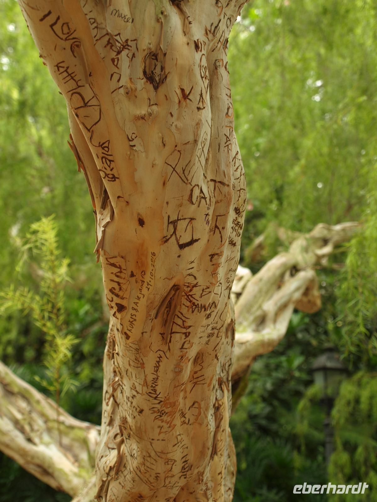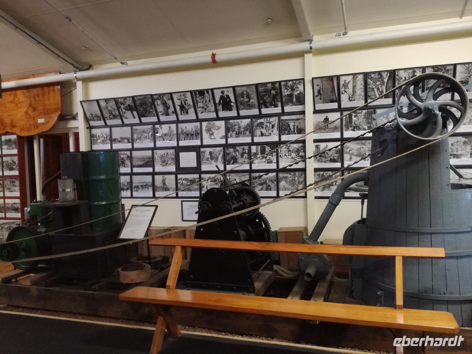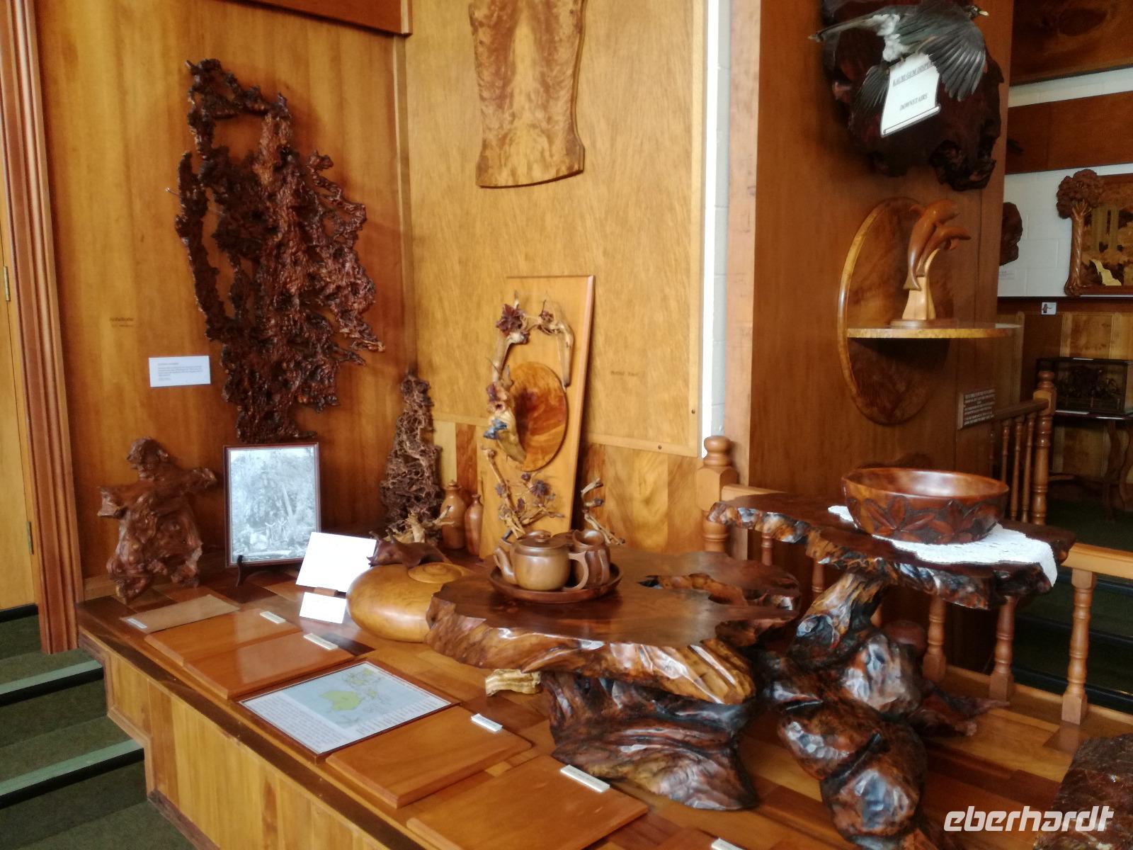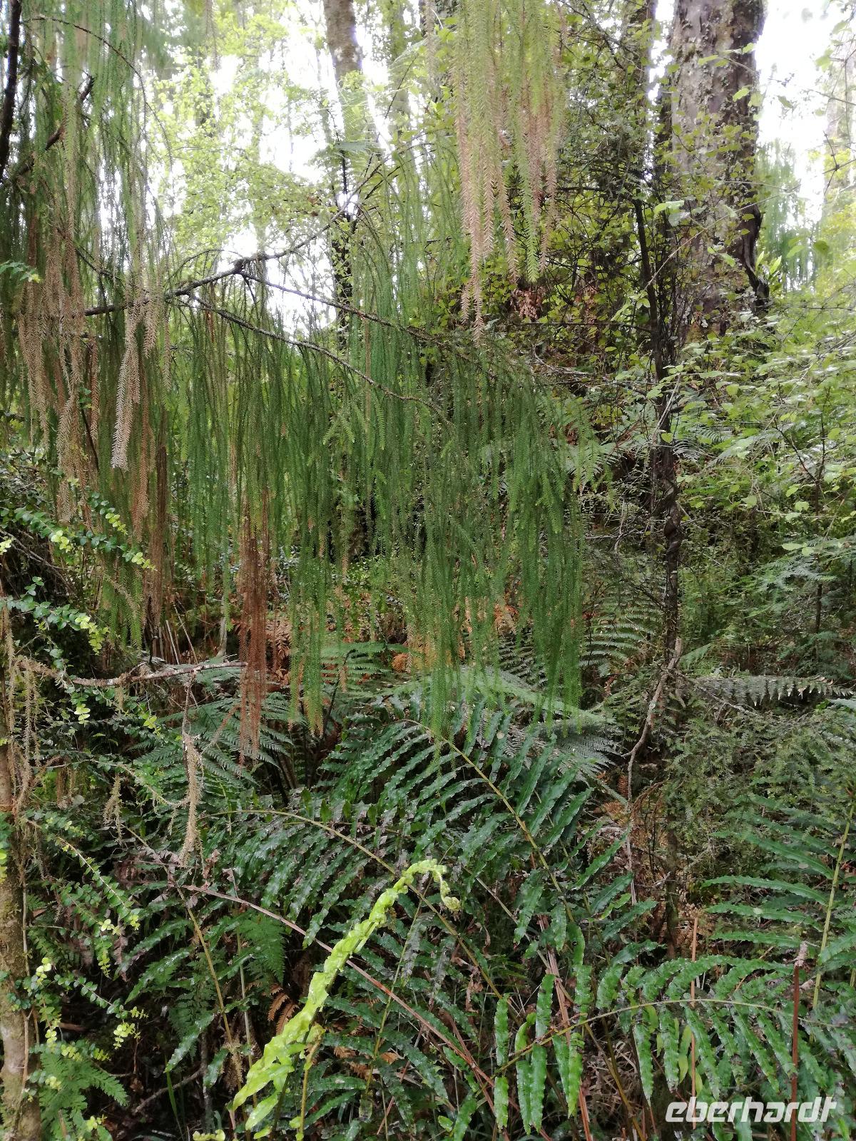 Von hier aus fahren wir wieder ein Stück der alten bekannten Strecke zurück. Dann biegen wir irgendwann rechts ab und stehen wieder im Sand. Hier am Nintey Mile Beach, der eigentlich nur 55 Meilen lang ist (also ca. 88 Kilometer). Wir laufen ein paar Meter bis zum Wasser und fragen uns, was Roger da im Sand sammelt. Es sind Muscheln, Muscheln für sein Abendessen, eine seiner Leibspeisen wie er meint. Mit dem Bus nehmen wir also den Strand nun als Highway und Roger ist in seinem Element. Mit einigen gewagten Fahrmanövern hält er uns auf Trab. Nach einigen Kilometern verlassen wir den Strand dann wieder und steuern ein kleines Kauri-Museum an. Hier wird unser Bus erst einmal vom Sand befreit und wir können uns ein paar interessante Dinge im Ausstellungsraum ansehen. Letzte Station für heute sind dann noch lebende Kauribäume. Wir machen einen kleinen Abstecher in den Busch und sehen wohl zum ersten Mal die großen Bäume, die die Erde und den Himmel noch heute auseinander halten...