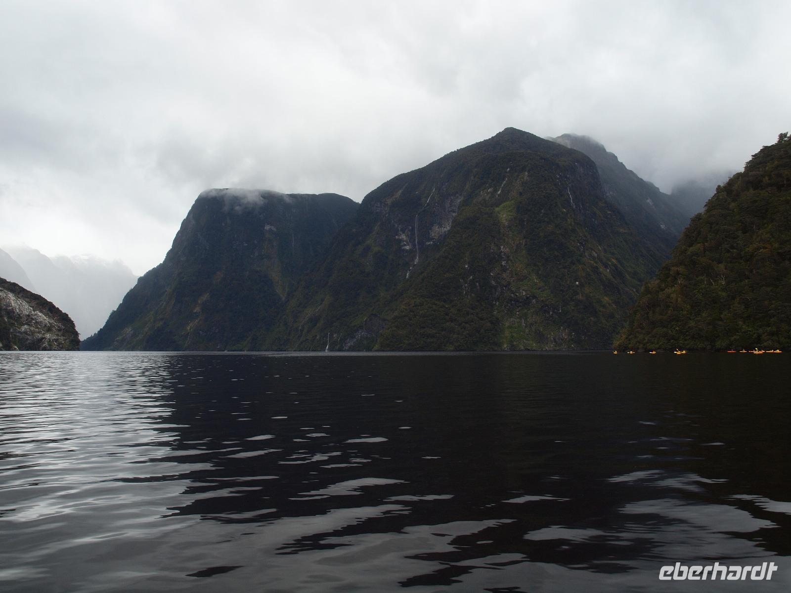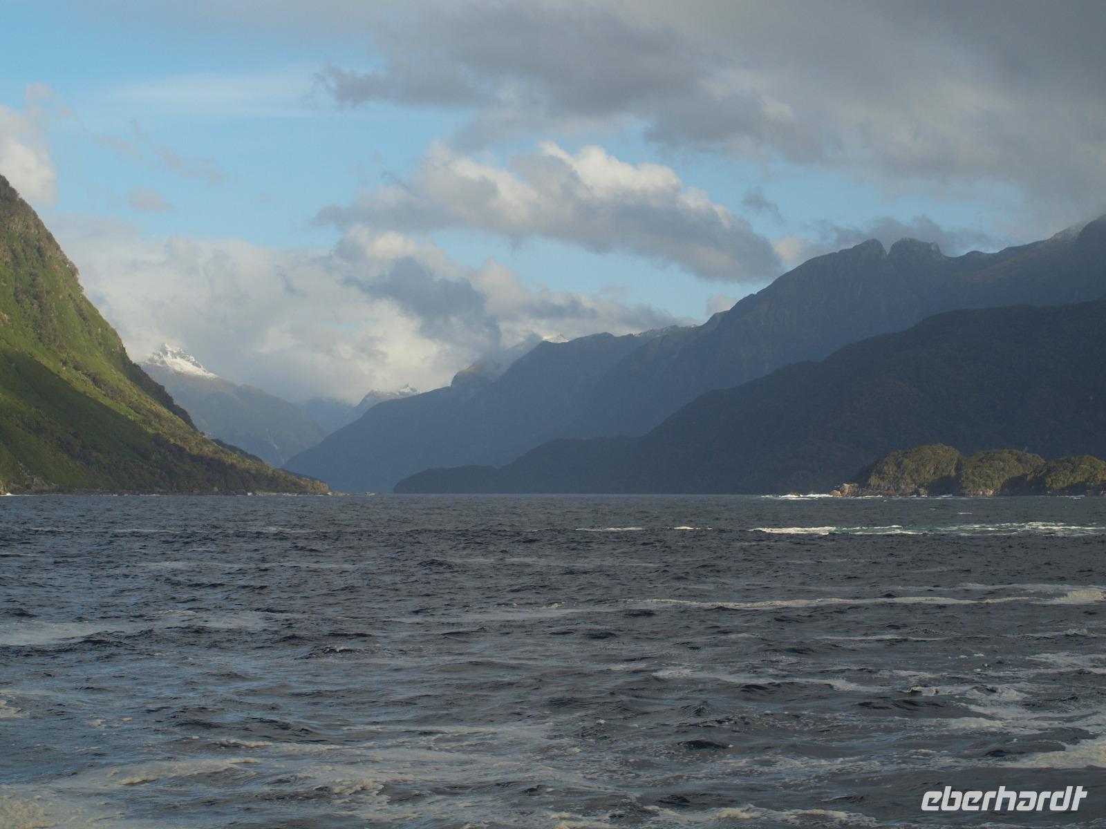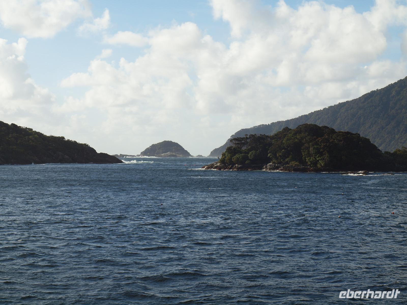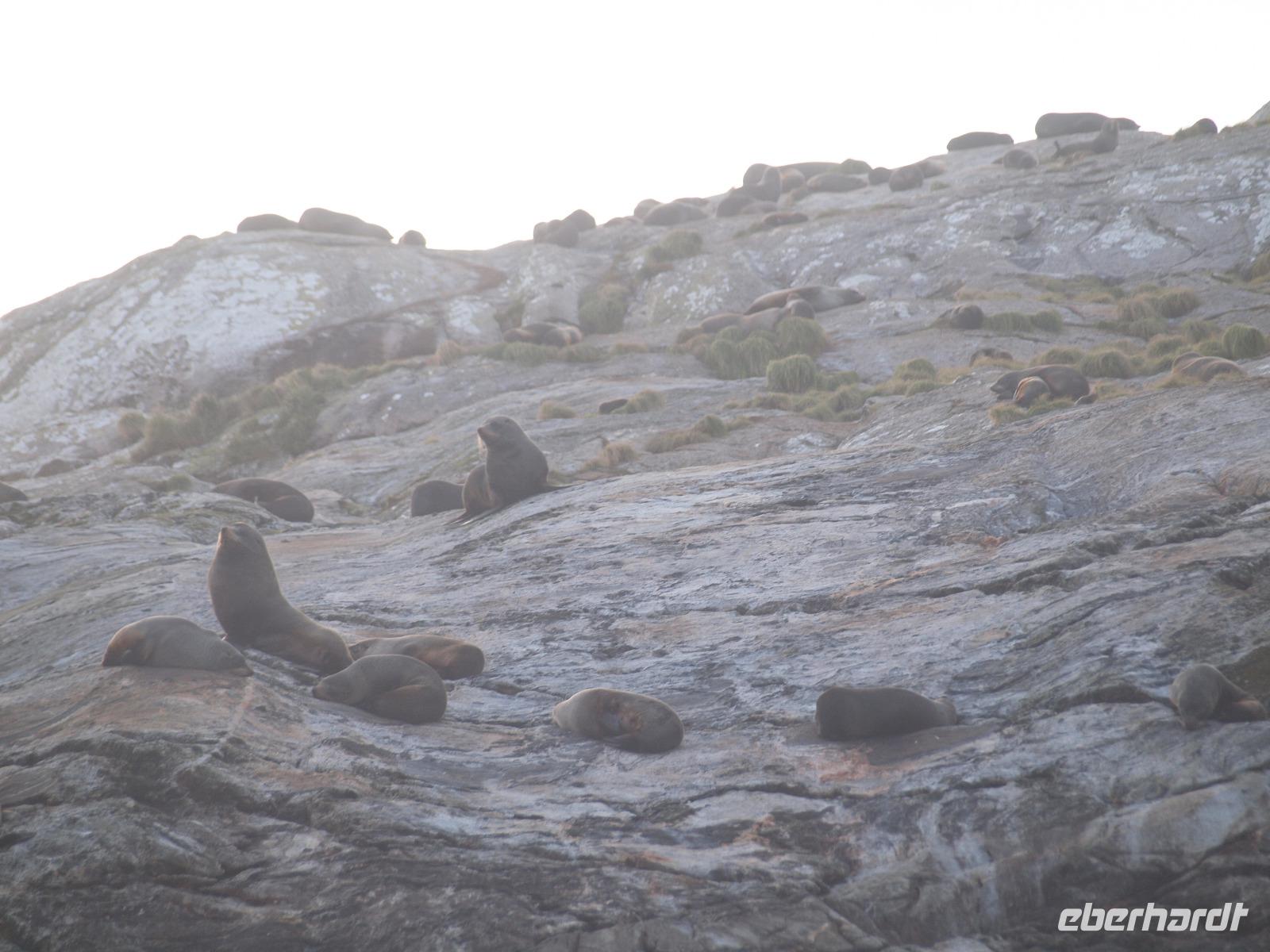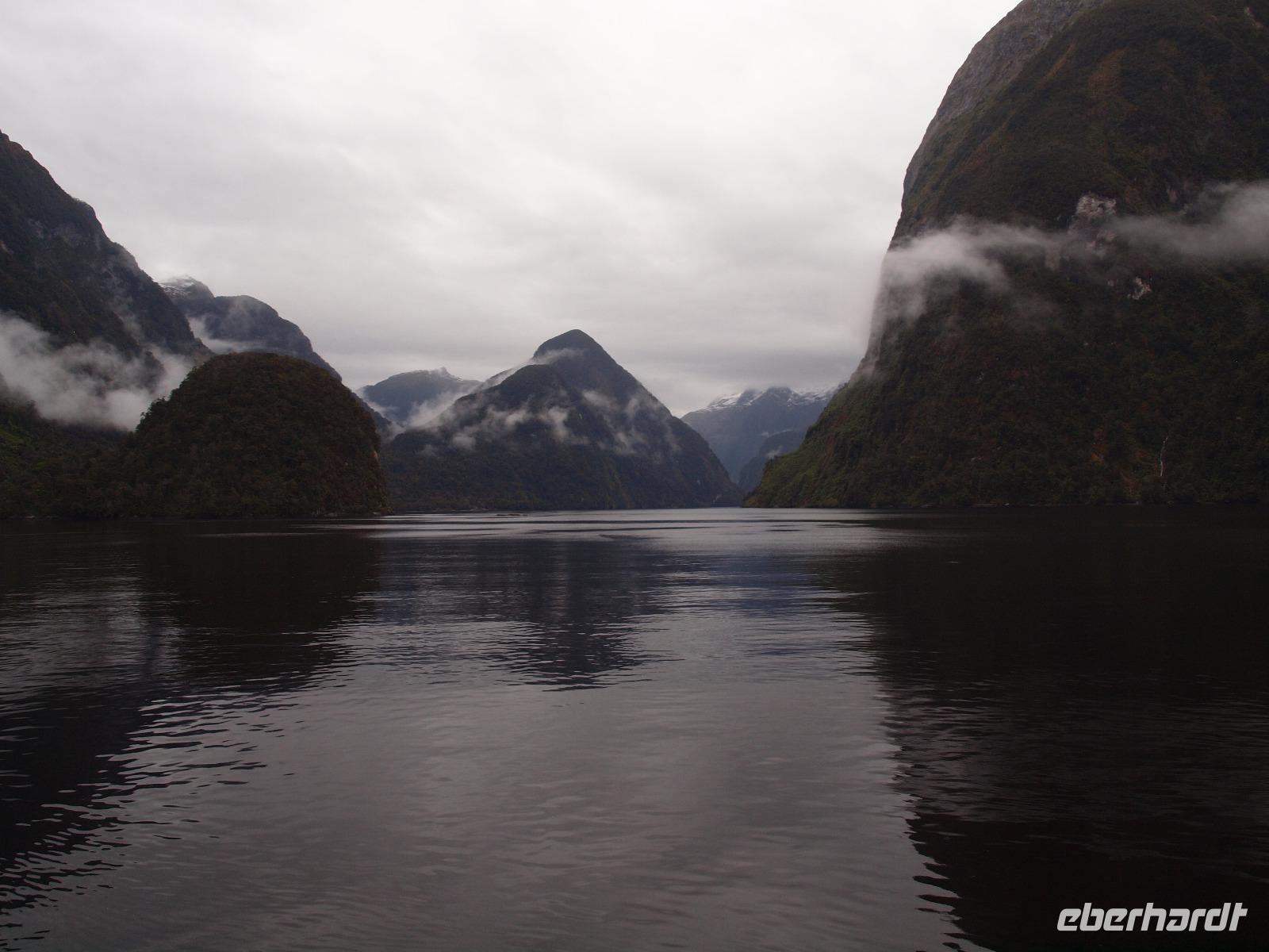 Wir verlassen heute die quirlige Stadt und fahren wieder in Richtung Westen. Der Fjordland-Nationalpark ist unser Ziel. In der Ortschaft Manapouri verabschieden wir uns für einen Tag von Hans und Maxine und begeben uns mit leckeren Lunchpaketen aufs Boot. Dieses bringt uns vom Anlegeplatz „Pearl Habour" über den See in den West Arm des Manapouri Sees. Hier gehen wir von Bord und steigen in einen Bus um. Dieser bringt uns, mit einigen Fotostopps, über den Wilmot Pass nach Deep Cove. Die Crew der Fjordland Navigator erwartet uns bereits und heißt uns herzlich Willkommen. Zuerst werden die allgemeinen Sicherheitsbestimmungen besprochen, was der Ablauf des heutigen Tages für uns bereit hält und wie und wo wir was an Board finden. Nach der Einweisung beziehen wir unsere Kabinen und treffen uns wenig später wieder auf dem Hauptdeck. Die Crew hat in der Zwischenzeit alles vorbereitet um mit uns entweder mit den Tenderbooten oder mit den Kajaks einen Ausflug zu unternehmen. Da es immer wieder sehr regnet entscheiden sich die Meisten von uns für die Tenderboote. Gemeinsam mit anderen Schiffsgästen und einem der Crewmitglieder fahren wir in die Nähe der Felswände. Spätestens jetzt wird uns bewusst, wie schön Regen sein kann. Überall bahnen sich an den Felswänden Wasserfällen ihren Weg in den Fjord. Sarah, die unser Boot steuert, erklärt uns, dass es diese Wasserfälle nur bei Regen gibt, da die Felswände so steil sind und das Wasser keine Möglichkeit findet sich irgendwo zu sammeln. Außerdem erklärt sie uns, warum das Wasser im Fjord nahezu schwarz erscheint. Bei starkem Regen, der in dieser Region sehr häufig vorkommt, stürzen die Süßwassermassen die steilen Hänge hinunter. Dieses kalte Süßwasser bildet eine zwei bis zehn Meter dicke Schicht über dem schwereren, aber auch wärmeren Salzwasser. Die mit dem Regen in den Fjord gewaschenen Gerbstoffe lassen weniger Licht durch das Süßwasser. Somit können schon in geringer Tiefe Tiere und Pflanzen im Salzwasser existieren, die man sonst nur in der dunklen Tiefsee antrifft, wie zum Beispiel Seesterne, Anemonen und Schwarze Korallen. Der Doubtful Sound ist der längste Fjord im Nationalpark und beherbergt an der Mündung zur Tasmanischen See ein paar Seelöwen Kolonien, sowie ein paar Gelbaugenpinguine. Und wir haben das Glück eben diese Tiere etwas später zu sehen. Zurück an Bord nimmt unser Skipper Kurs auf den Ausgang des Fjords. Der Seegang nimmt spürbar zu. Wir steuern auf kleine Felsengruppen zu und die Kamerageräusche sind aus alles Ecken der Aussichtsdecks zu hören. Wir sehen zuerst einen kleinen Pinguin, danach gleich noch einen, wir fahren weiter zu einer anderen Felsengruppe und dort sehen wir Seelöwen. Nach einer Weile bei den Tieren und vielen vielen Bildern wird es Zeit sich einen ruhigen Ankerplatz für die Nacht zu suchen. In der Zwischenzeit wärmen wir uns drinnen wieder auf. Die Crew beginnt bereits das Abendessen vorzubereiten und wir finden uns nach und nach auf unseren Plätzen ein. In geselliger Runde genießen wir das hervorragende Abendessen. Nach dem Abendessen können wir noch einem Vortrag eines der Crewmitglieder lauschen. Auch wenn wir nicht jedes Wort verstehen, eine Art Gute-Nacht-Geschichte ist es allemal. Mit diesen wundervollen Eindrücken des Tages ziehen wir uns auf die Kabinen zurück.