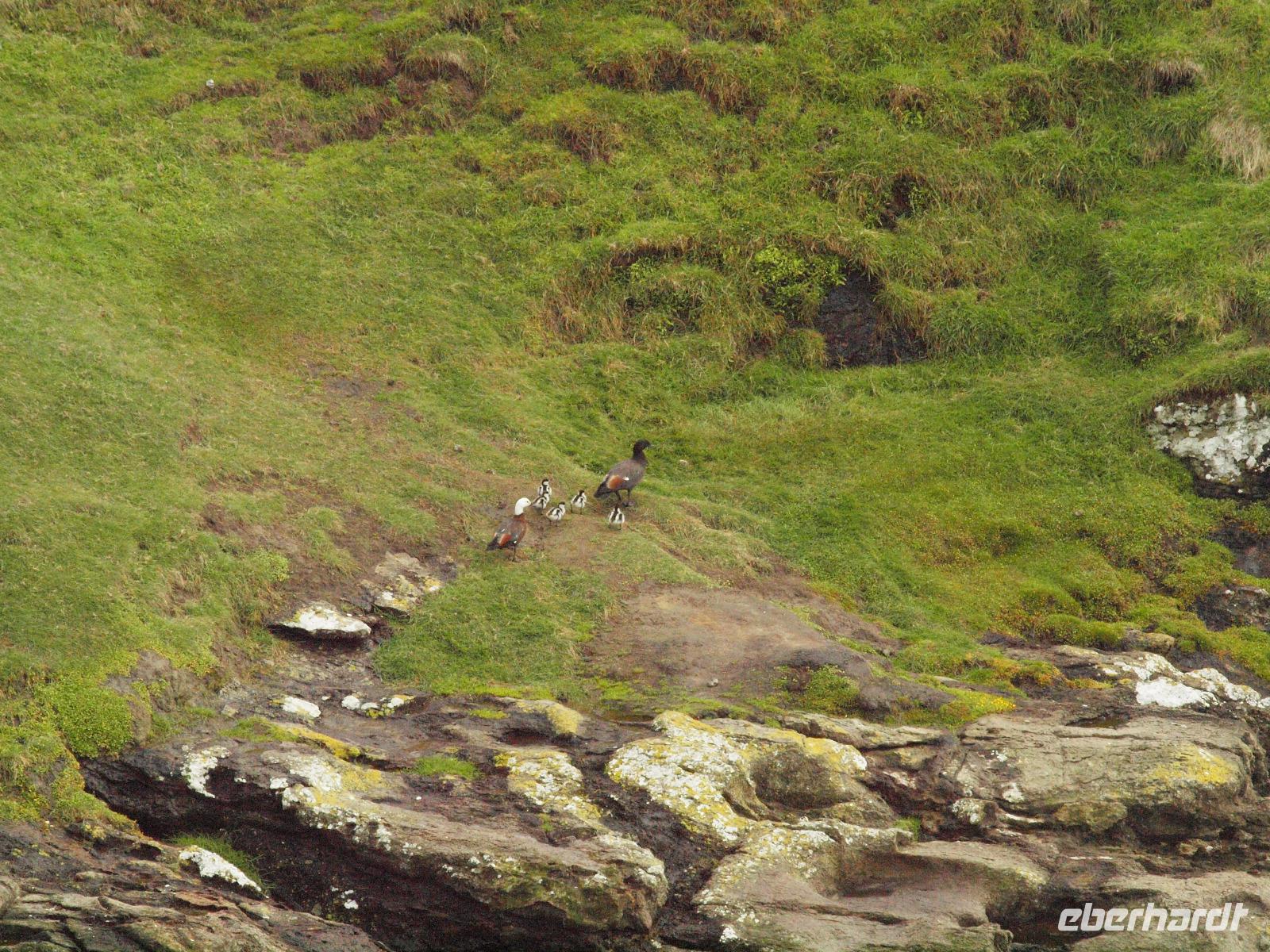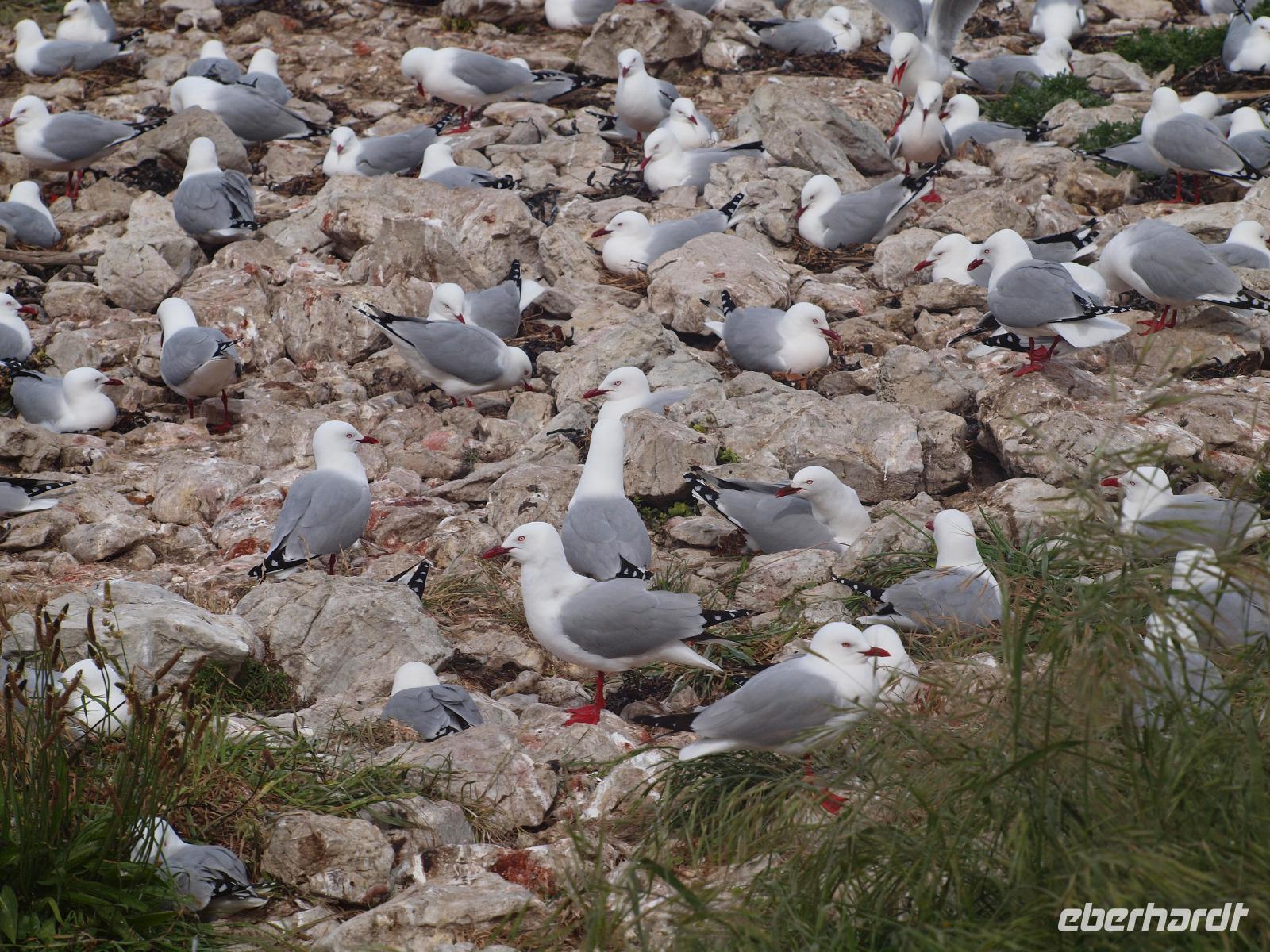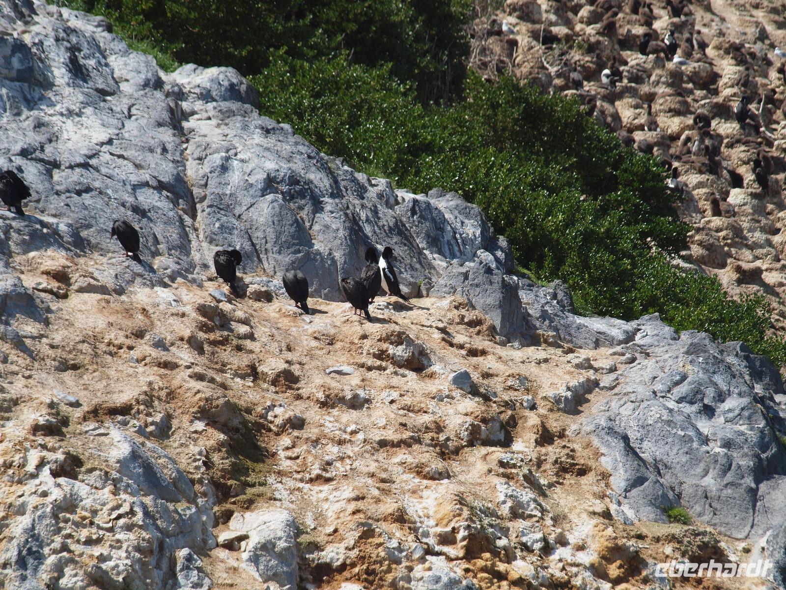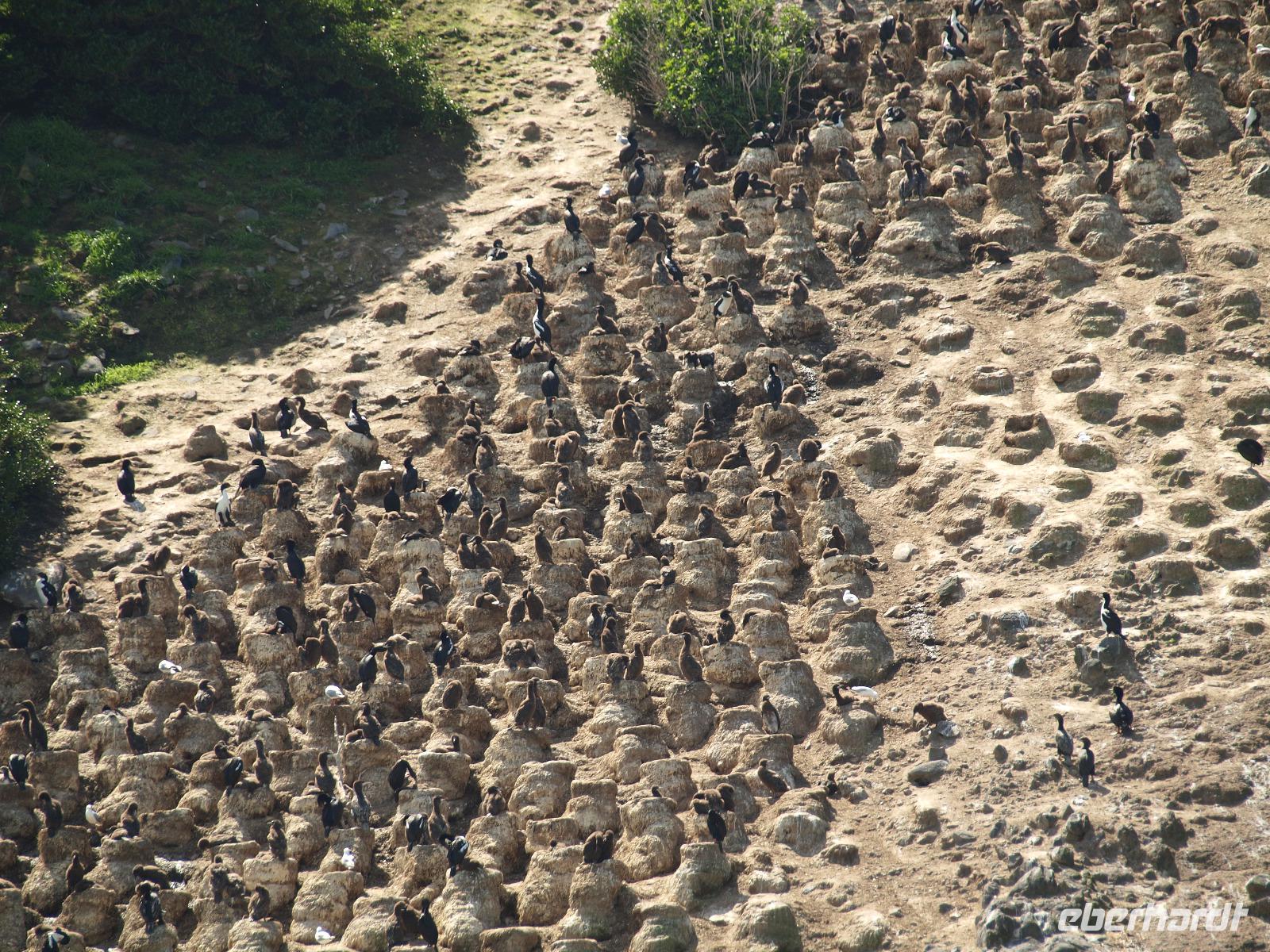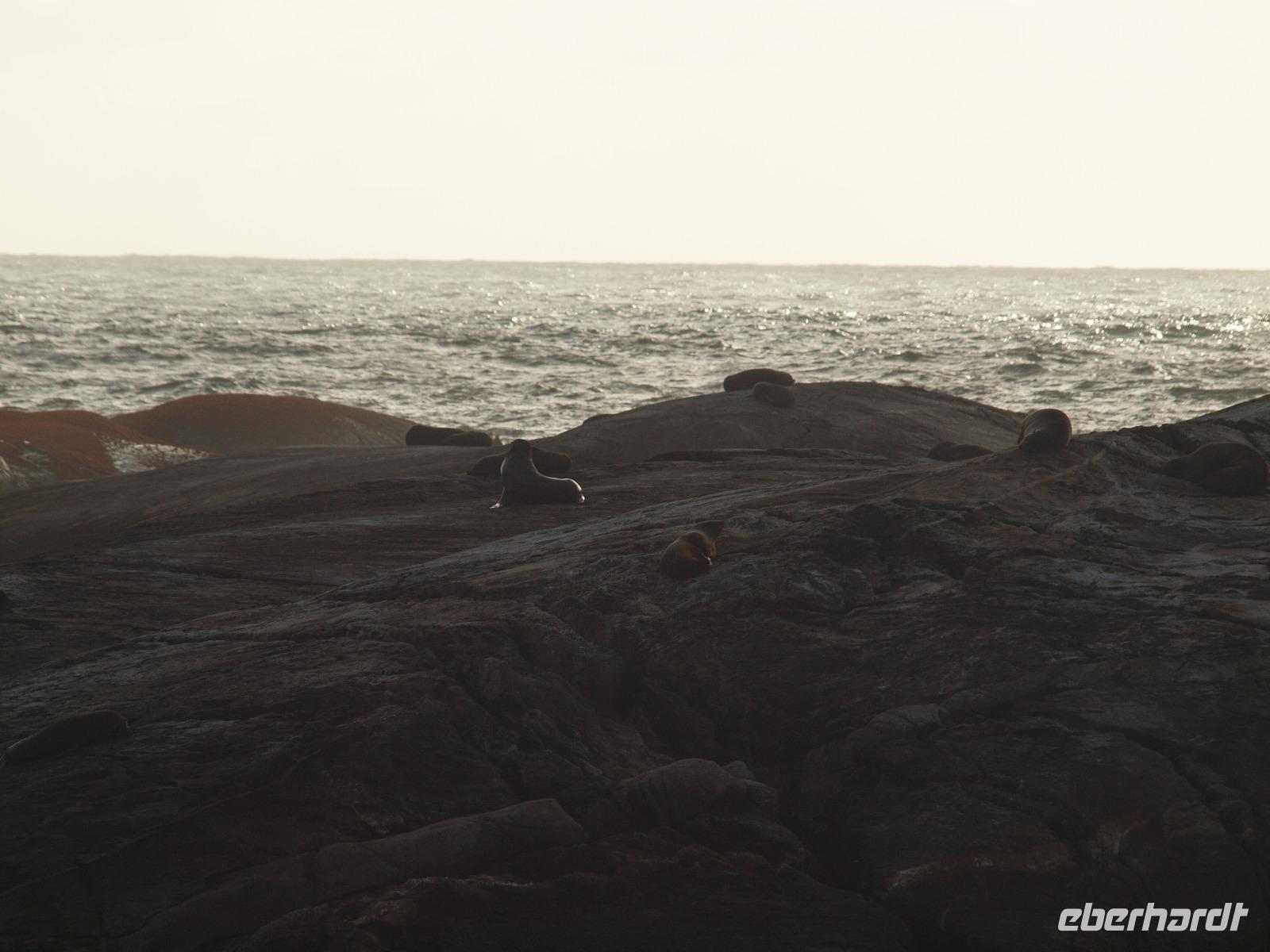 Nach dem Besuch der Pinguine fahren wir nur wenige Meter wieder die Strecke die wir gekommen sind zurück und gehen an Bord der Monarch. Das kleine Boot bringt uns hinaus auf die weite See. Ziel dieser Unternehmung ist es, den großen Königsalbatrossen etwas näher zu kommen. Natürlich sehen wir auch wieder ein paar Seelöwen, die sich genüsslich in der Sonne ausruhen. Unser Skipper Buddy nimmt dann Kurs auf einen im Wasser schwimmenden Albatros und versucht mit uns so nah wie möglich an ihn heranzukommen, doch dieser entscheidet sich lieber für die Flucht und fliegt davon. Während Buddy weiter nach den großen Vögeln Ausschau hält entdeckt sein Kollege Jürgen ein paar kleine Blaupinguine im Wasser. Die kleinen Kerlchen sind anscheinend dabei sich ihre Fische fürs Mittagsessen zu fangen. Und wieder nimmt Buddy Kurs auf einen Albatros. Zwischendurch kreuzen auch ein paar andere Seevögel unseren Weg, wie zum Beispiel die allgemein gut bekannte Seemöwe. Und gerade als wir uns auf den Rückweg machen wollen fliegt doch tatsächlich noch ein Königsalbatros an uns vorbei, Glück gehabt! Auf dem Weg zur Anlegestelle fahren wir auch wieder an den steilen Felswänden vorbei. Hier haben sich inzwischen auch drei Albatrosse niedergelassen, ein weiteres Mal Glück gehabt!