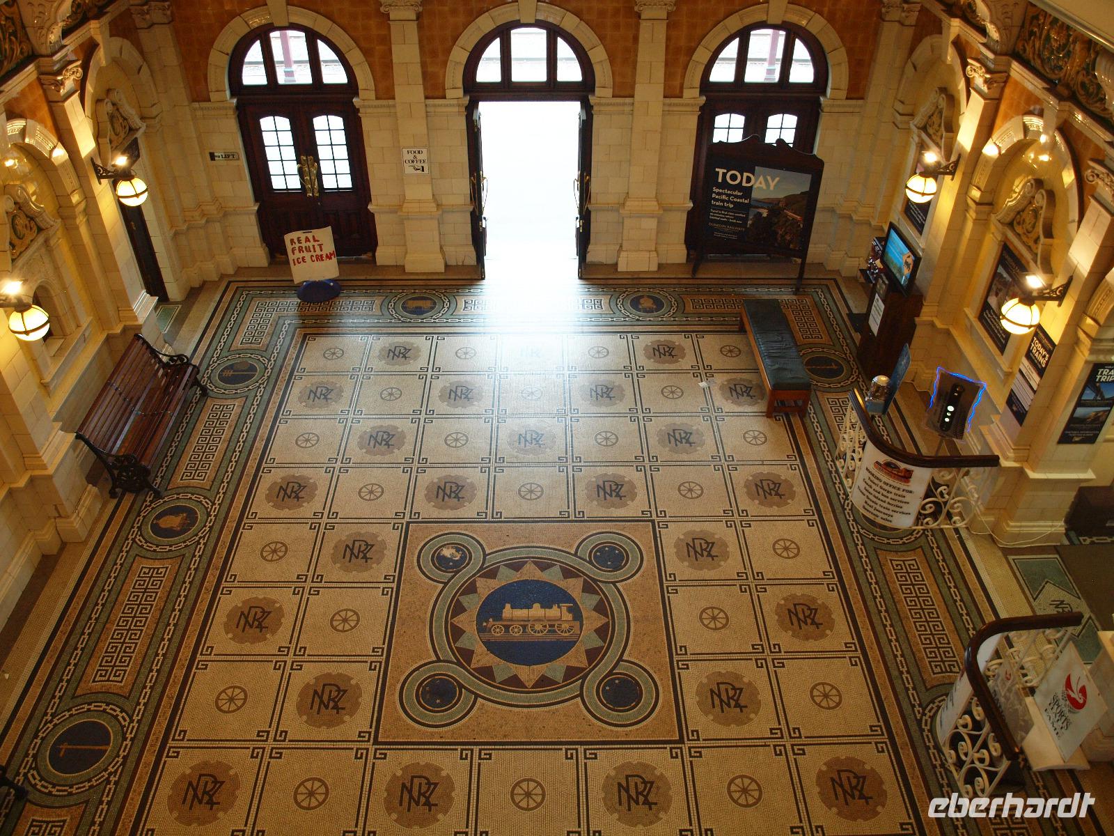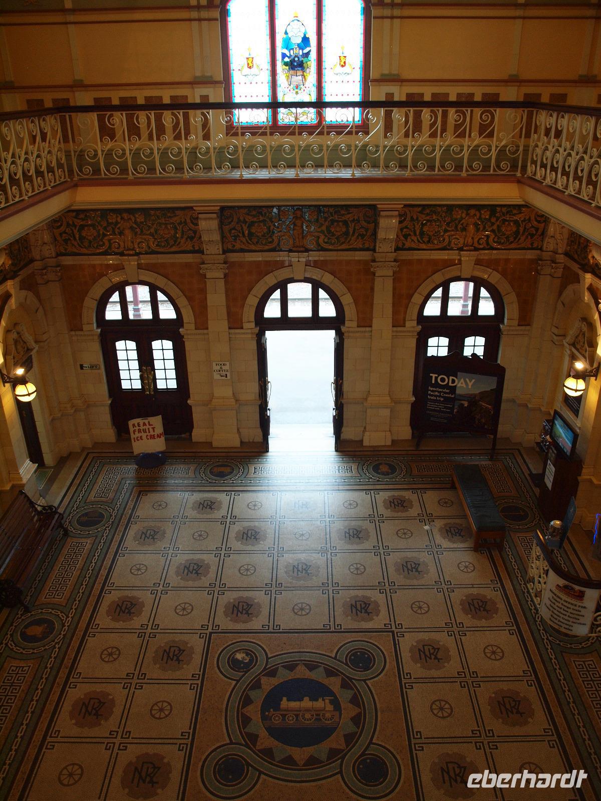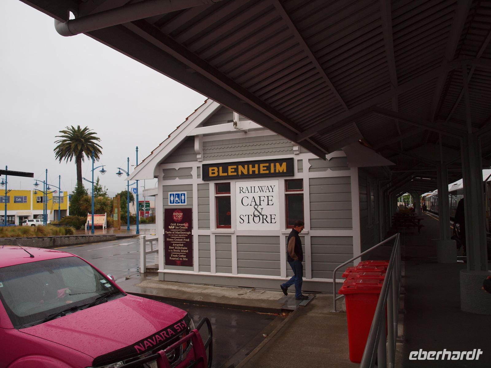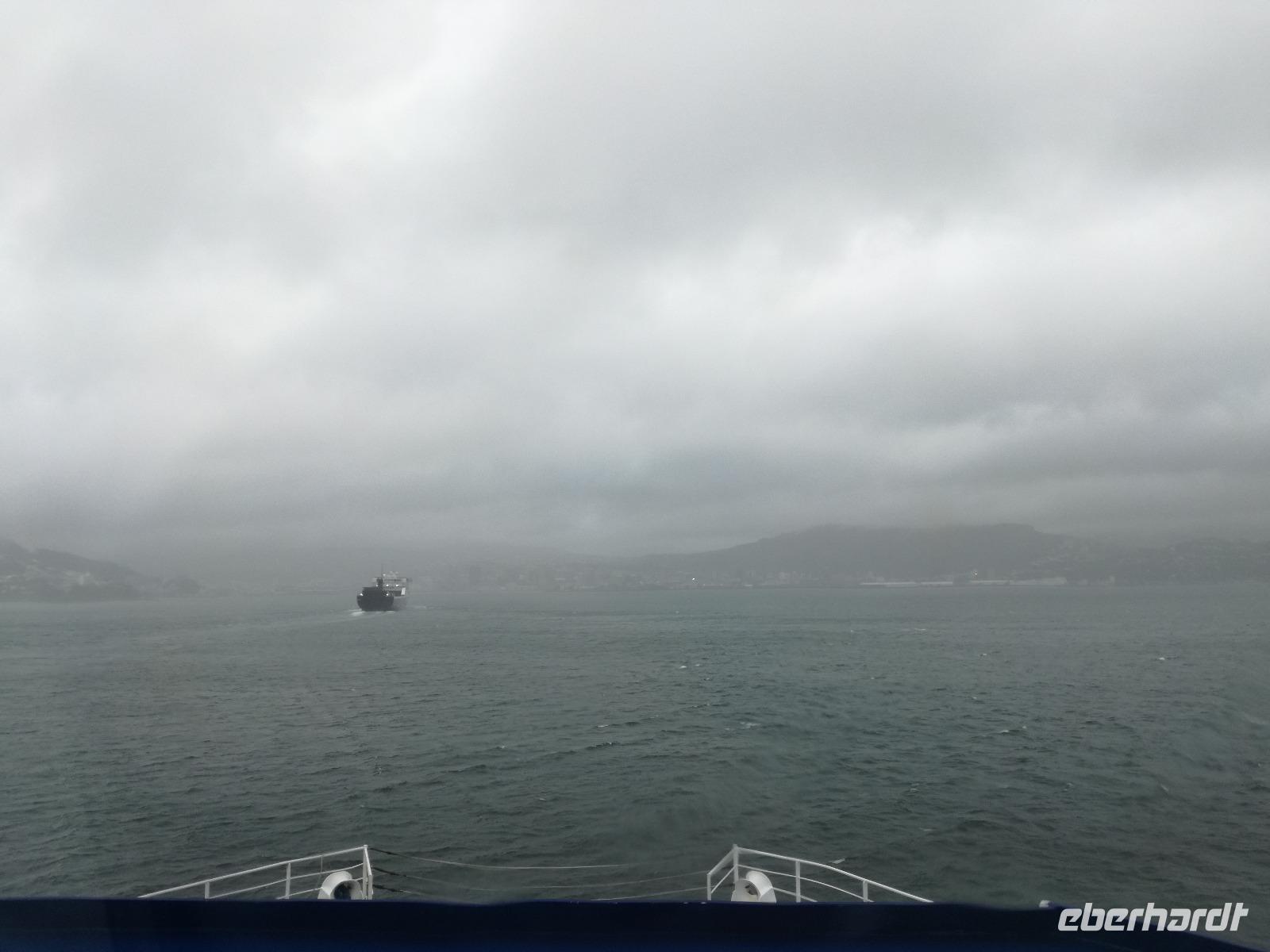 Heute müssen wir uns schon von Maxine und der Südinsel verabschieden. Am Bahnhof von Kaikoura fließen Abschiedstränen, so groß wie der Pazifische Ozean, naja zumindest fast! Und ganz getreu dem Klischee über die Deutschen Touristen sind wir natürlich früher am Bahnhof. So können wir aber auch die Minuten, die bis zur Abfahrt bleiben noch am Strand oder in dem kleinen Souveniraden am Bahnhof verbringen. Auch fast pünktlich fährt dann der Zug auch im Bahnhof ein. Unsere Koffer werden mit einem lilafarbenen Schild versehen, dieses soll den Kofferträgern am Bahnhof in Picton signalisieren, dass die Koffer weiter nach Wellington auf die Fähre müssen. Unsere Sitzplätze im Zug sind bereits reserviert worden und so steht einer gemütlichen Reise nichts mehr Wege, nicht einmal die Schulklassen bringen uns heute aus der Ruhe. Versorgt werden wir im Zug auch, wenn wir das wollen, das Bordrestaurant bietet für jeden Geschmack etwas. So verfliegt die Zeit sehr schnell und auch wenn der Regen uns die Gelegenheit auf schöne Bilder während der Fahrt verwehrt, so können wir die Panoramafahrt entlang der Küste und durch Weinanbaugebiete doch genießen. Nach gut zweieinhalb Stunden erreichen wir Picton. Leider regnet es immer noch sehr stark und wir bleiben bis zur Abfahrt der Fähre im Terminal. Die Schulklassen sind auch wie wir auf dem Weg nach Wellington und einige von ihnen versüßen uns die Wartezeit. Zweimal singen die Kinder eines Schulchores Lieder auf Maori. Ein wirklich toller Moment! Kurz darauf werden wir zum Boarding gebeten. Auf der Fähre verteilt sich Menge recht schnell und so verbringen wir die Zeit auf der Fähre entweder mit Lesen, Essen, Schlafen oder dem Versuch doch noch ein paar Fotos zu machen. Die Überfahrt ist recht ruhig, die See meint es gut mit uns, doch leider ist eben alles trüb und grau in grau. Am Abend, nach ca. vier Stunden Fährüberfahrt erreichen wir dann Wellington. Auch unsere Koffer haben es bis hier her unbeschadet geschafft und werden freudig von uns am Gepäckband wieder aufgenommen. Am Fährenterminal wartet auch schon unser neuer Bus mit neuem Fahrer, Phil verlädt unsere Koffer und fährt uns dann ins Hotel, hier verbringen wir dann auch den Rest des Abends.