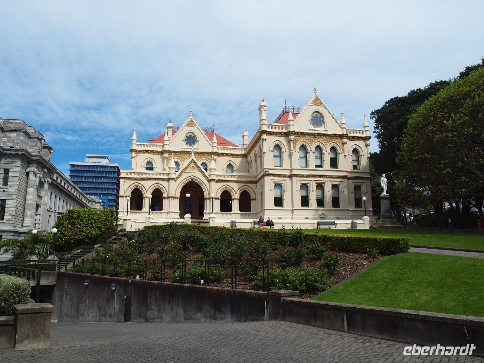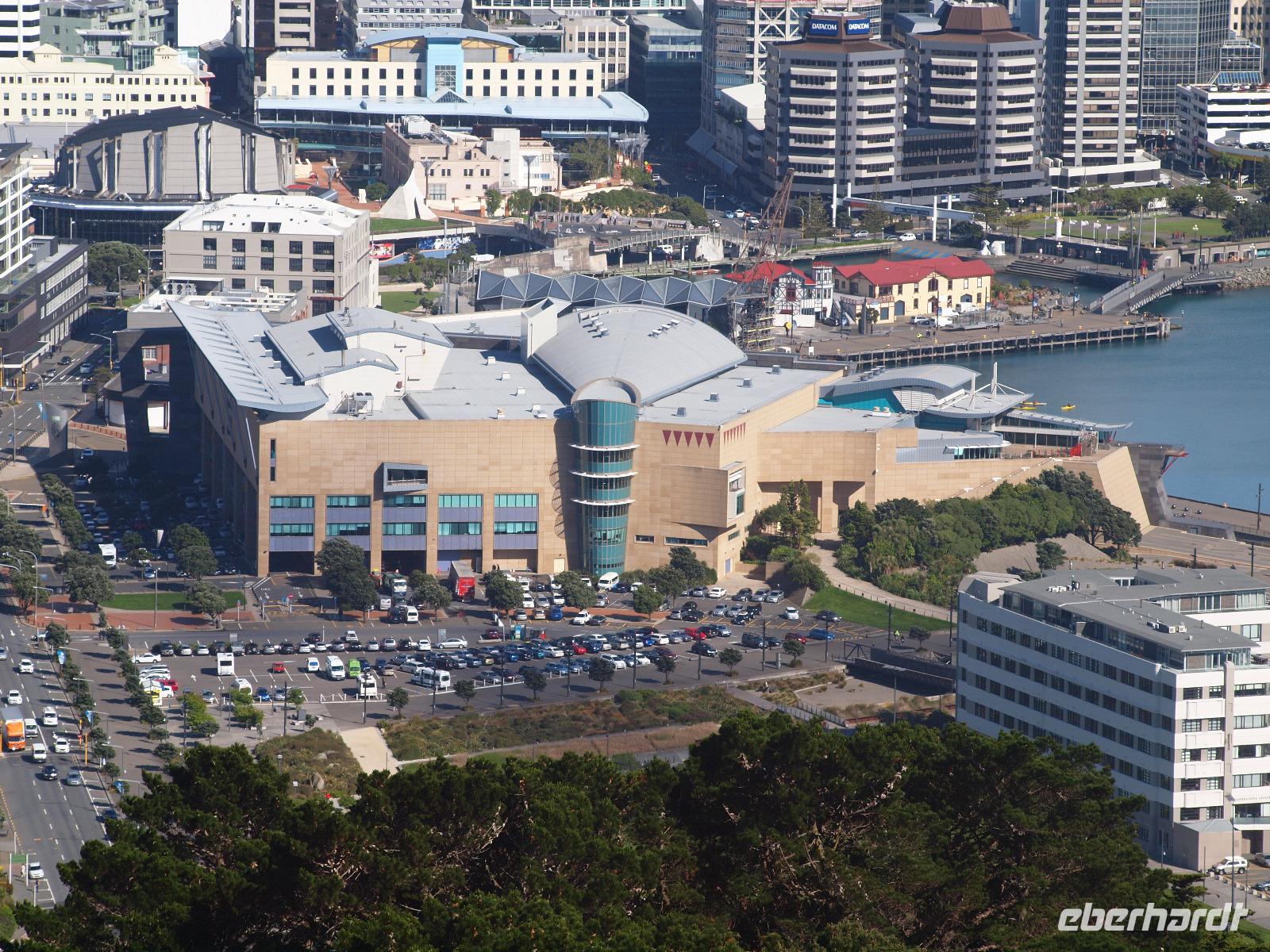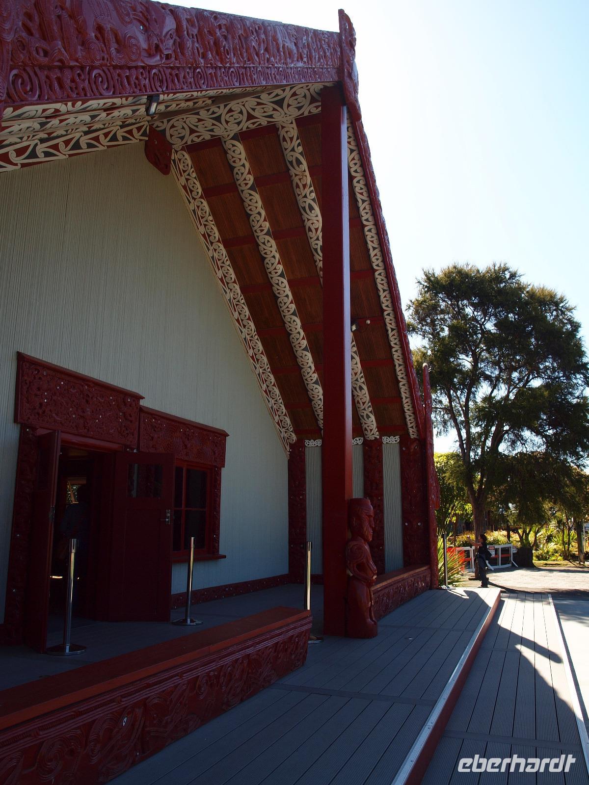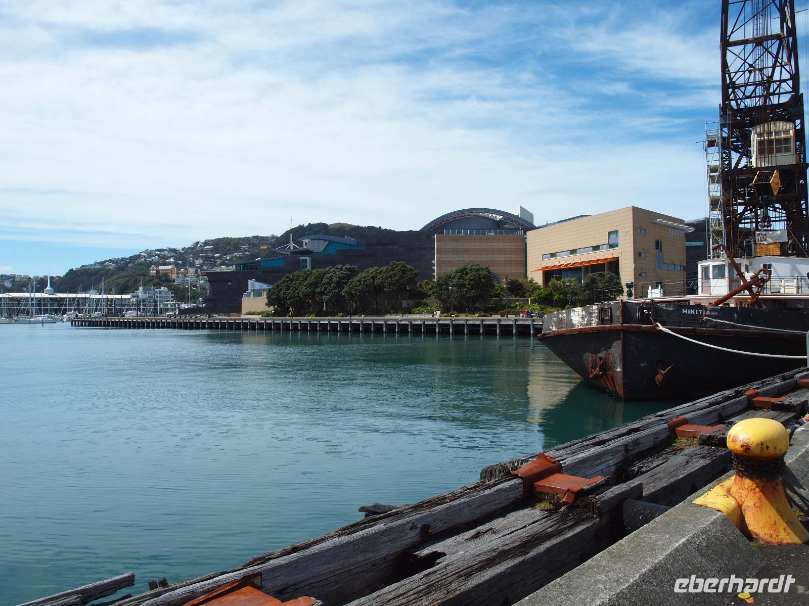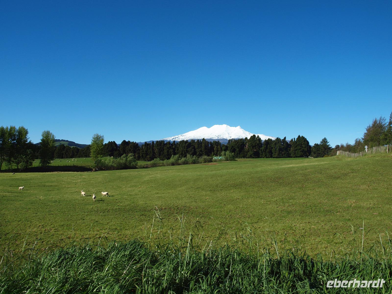 Den heutigen Vormittag verbringen wir in der Hauptstadt von Neuseeland. Um uns einen besseren Überblick über die Stadt zu verschaffen fahren wir zuerst, heute zum Glück auch bei strahlendem Sonnenschein, auf den Mount Victoria. Von hier oben sehen wir die ganze Stadt mit Hafen, die umliegenden Buchten und den Flughafen, eingebettet von grünen Hügeln. Wellington (Maori: Te Whanga-nui-a-Tara) ist zusammen mit angrenzenden Städten nach Auckland der zweitgrößte Ballungsraum des Landes. Die Maori-Bezeichnung Te Whanganui-a-Tara bezieht sich auf den angrenzenden Hafen von und bedeutet übersetzt „Der große Hafen des Tara". Trotz Sonnenschein spüren wir aber auch den Wind, der Wellington seinen Spitznamen „Windy Welly" verleiht. Wie fahren nun wieder zurück ins Zentrum, durch die Hauptstraßen der Stadt, vorbei an Wolkenkratzern und Einkaufspassagen. Unser nächster Halt ist das Regierungsviertel, gut erkennbar durch das Regierungsgebäude, den Bienenstock. Gleich nebenan das ältere Parlamentsgebäude. Durch einen kleinen Park führt uns der Weg zum „Old Gouvernement Building", es ist das größte Holzgebäude der Südhalbkugel und dient heute der Universität als juristische Fakultät. Das Gebäude steht Besuchern offen und so können wir einen Blick in dieses altehrwürdige Gebäude werfen. Einige Räume sind für die Besucher extra hergerichtet und so bekommen wir einen guten Einblick, wie es wohl früher ausgesehen hat, als hier noch Politik gemacht wurde. Nach der Besichtigung fahren wir zum Nationalmuseum Te Papa (Der Ort der Schätze dieses Landes). Im Museum wird auf sechs Ebenen Neuseeland von vielseitigen Aspekten beleuchtet. Insbesondere wird die Entwicklung von den ersten Besiedlungen an bis zum heutigen modernen Staat dargestellt. Wir haben genug Freizeit um einige der Ausstellungsräume anzuschauen. Oder man nutzt die Zeit um in der Innenstadt noch etwas durch die Straßen zu bummeln und vielleicht an der Waterfront ein Restaurant fürs Mittagessen zu finden. Nach der Pause treffen wir uns vor dem Te Papa wieder um unsere Reise in nach Norden fortzusetzen. Es dauert eine Weile bis wir die Stadtgrenzen hinter uns lassen und uns wieder in der Natur befinden. Wir fahren entlang der Westküste, vorbei an Kapiti Island, einem Vogelschutzgebiet und Heimat für eine Vielzahl einheimischer Vögel, unter anderen auch einige Arten der seltenen Kiwivögel. Kurz darauf erreichen wir Levin für eine kleine Pause. Weiter geht es und unser nächster Stopp ist in der kleinen Stadt Bulls. Hier macht man immer wieder kleine Wortwitze mit dem Namen der Stadt. Auch die Briefkästen, die in Neuseeland ja generell ulkig sind, sind Milchkannen. Von Bulls aus biegen wir dann an der Gabelung links ab, Richtung Hunterville, Taihape und Waiouru. Das Landschaftsbild verändert sich schlagartig als wir in der Weite den schneebedeckten Vulkan Ruapehu sehen. Er ist über die grünen Hügel und Wiesen gut zu erkennen und gibt ein nahezu perfektes Foto ab. Als wir immer näher kommen machen wir auch einen Fotostopp an der Straße. Alle Blicke sind auf den Ruapehu gerichtet, doch einer von uns hat auch den Blick für die Umgebung und erspäht doch tatsächlich, wenn auch nur ganz leicht, die Silhouetten des Vulkan Taranaki. Ganz allein steht er im Dunst, nur ca. 100 Kilometer entfernt. Warum er nicht mit den anderen Vulkanen im Zentrum der Nordinsel steht, werden wir morgen erfahren. Am frühen Abend erreichen wir die kleine Stadt Ohakune und übernachten etwas außerhalb des Zentrums, am Fuße des Vulkans. Bis zum Abendessen bleiben uns noch ein paar Momente für einen Abendspaziergang oder die Chance auf ein entspannendes Bad im beheizten Whirlpool.