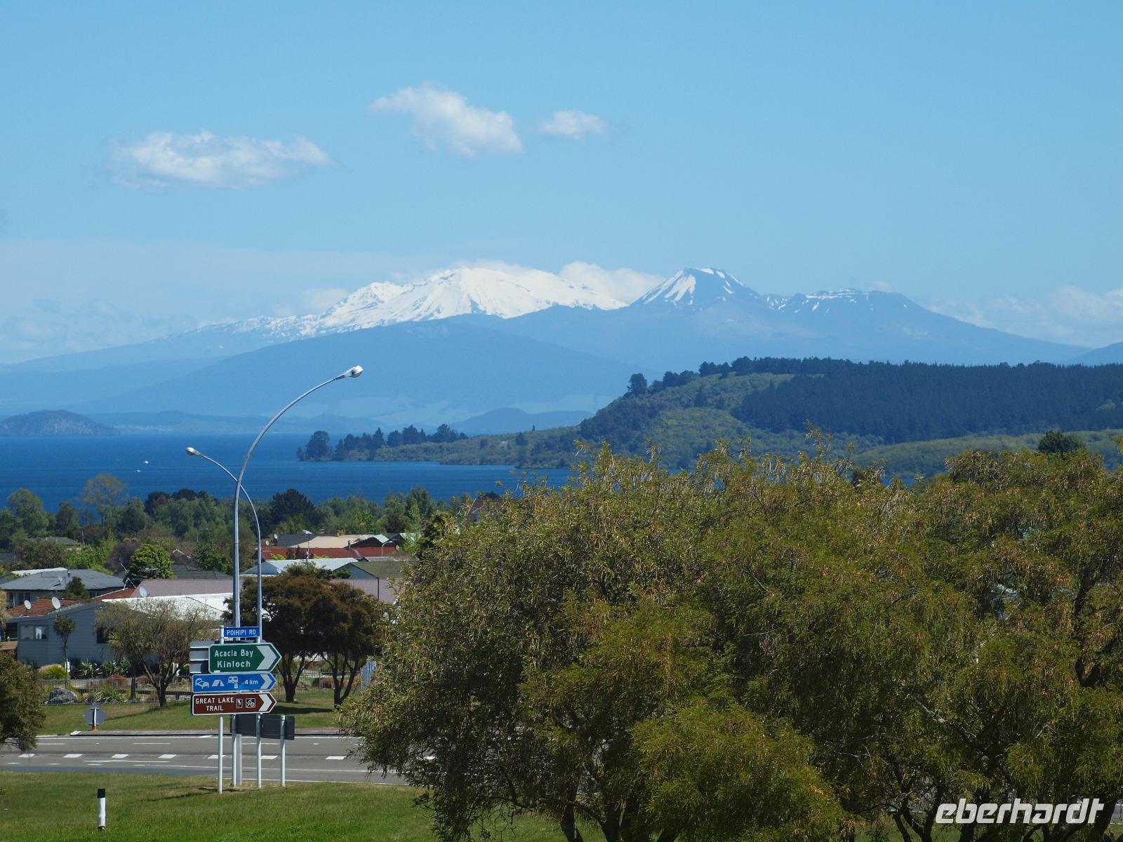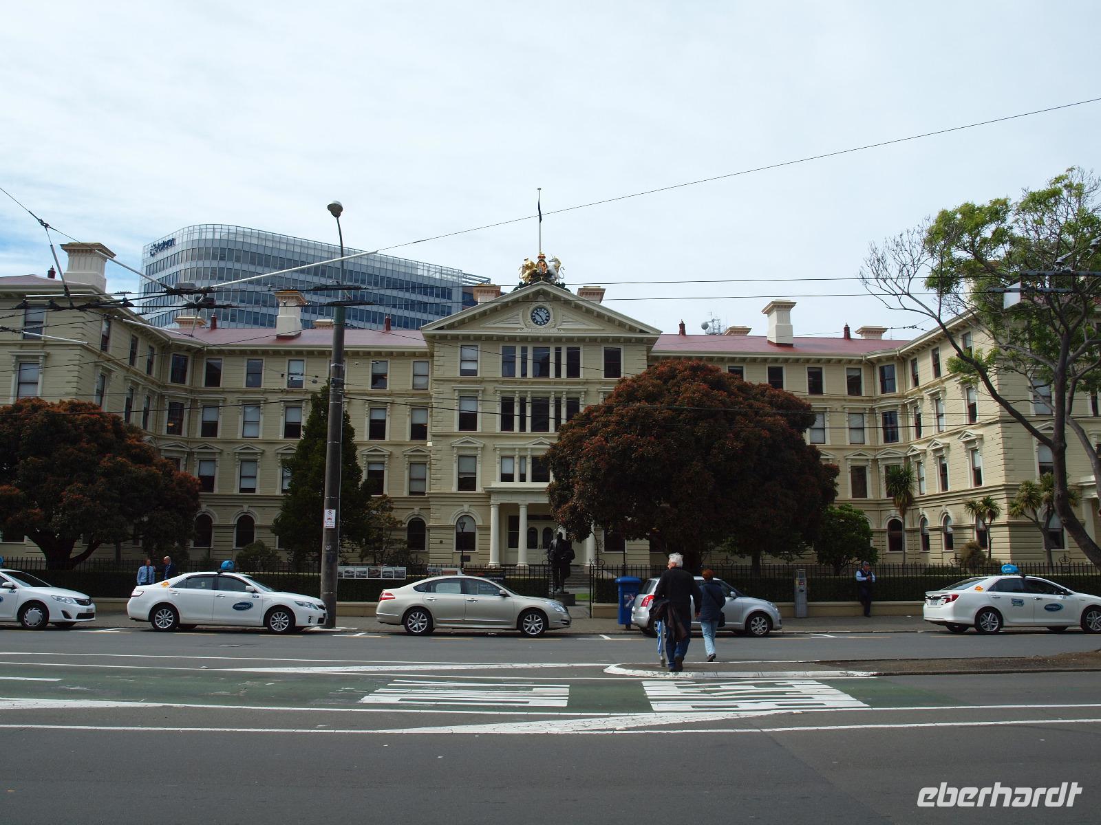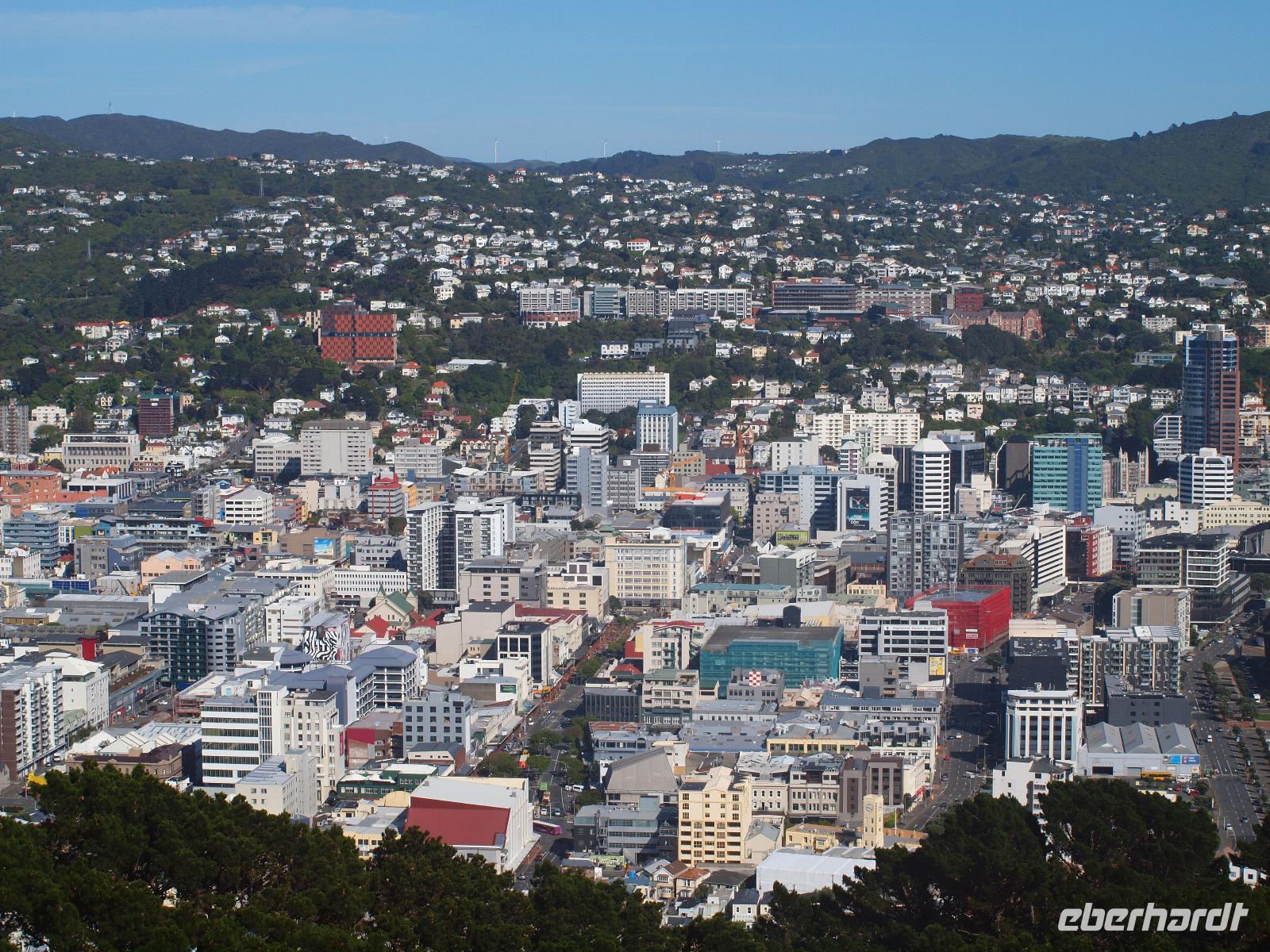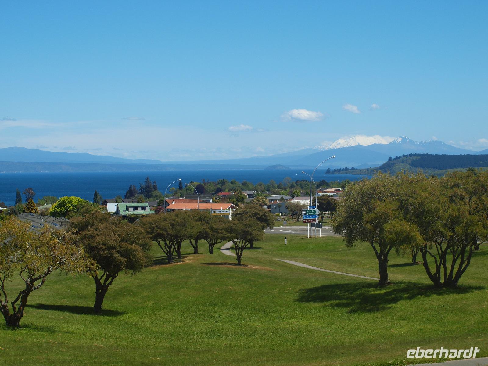 Den heutigen Vormittag verbringen wir in der Hauptstadt von Neuseeland. Um uns einen besseren Überblick über die Stadt zu verschaffen fahren wir zuerst, heute zum Glück auch bei strahlendem Sonnenschein, auf den Mount Victoria. Von hier oben sehen wir die ganze Stadt mit Hafen, die umliegenden Buchten und den Flughafen, eingebettet von grünen Hügeln. Wellington (Maori: Te Whanga-nui-a-Tara) ist zusammen mit angrenzenden Städten nach Auckland der zweitgrößte Ballungsraum des Landes. Die Maori-Bezeichnung Te Whanganui-a-Tara bezieht sich auf den angrenzenden Hafen von und bedeutet übersetzt „Der große Hafen des Tara". Trotz Sonnenschein spüren wir aber auch den Wind, der Wellington seinen Spitznamen „Windy Welly" verleiht. Wie fahren nun wieder zurück ins Zentrum, durch die Hauptstraßen der Stadt, vorbei an Wolkenkratzern und Einkaufspassagen. Unser nächster Halt ist das Regierungsviertel, gut erkennbar durch das Regierungsgebäude, den Bienenstock. Gleich nebenan das ältere Parlamentsgebäude. Durch einen kleinen Park führt uns der Weg zum „Old Gouvernement Building", es ist das größte Holzgebäude der Südhalbkugel und dient heute der Universität als juristische Fakultät. Das Gebäude steht Besuchern offen und so können wir einen Blick in dieses altehrwürdige Gebäude werfen. Einige Räume sind für die Besucher extra hergerichtet und so bekommen wir einen guten Einblick, wie es wohl früher ausgesehen hat, als hier noch Politik gemacht wurde. Nach der Besichtigung fahren wir zum Nationalmuseum Te Papa (Der Ort der Schätze dieses Landes). Im Museum wird auf sechs Ebenen Neuseeland von vielseitigen Aspekten beleuchtet. Insbesondere wird die Entwicklung von den ersten Besiedlungen an bis zum heutigen modernen Staat dargestellt. Wir haben genug Freizeit um einige der Ausstellungsräume anzuschauen. Oder man nutzt die Zeit um in der Innenstadt noch etwas durch die Straßen zu bummeln und vielleicht an der Waterfront ein Restaurant fürs Mittagessen zu finden. Nach der Pause treffen wir uns vor dem Te Papa wieder um unsere Reise in nach Norden fortzusetzen. Es dauert eine Weile bis wir die Stadtgrenzen hinter uns lassen und uns wieder in der Natur befinden. Wir fahren entlang der Westküste, vorbei an Kapiti Island, einem Vogelschutzgebiet und Heimat für eine Vielzahl einheimischer Vögel, unter anderen auch einige Arten der seltenen Kiwivögel. Kurz darauf erreichen wir Levin für eine kleine Pause. Weiter geht es und unser nächster Stopp ist in der kleinen Stadt Bulls. Hier macht man immer wieder kleine Wortwitze mit dem Namen der Stadt. Auch die Briefkästen, die in Neuseeland ja generell ulkig sind, sind Milchkannen. Von Bulls aus biegen wir dann an der Gabelung links ab, Richtung Hunterville, Taihape und Waiouru. Das Landschaftsbild verändert sich schlagartig als wir in der Weite den schneebedeckten Vulkan Ruapehu sehen. Er ist über die grünen Hügel und Wiesen gut zu erkennen und gibt ein nahezu perfektes Foto ab. Als wir immer näher kommen machen wir auch einen Fotostopp an der Straße. Alle Blicke sind auf den Ruapehu gerichtet, doch einer von uns hat auch den Blick für die Umgebung und erspäht doch tatsächlich, wenn auch nur ganz leicht, die Silhouetten des Vulkan Taranaki. Ganz allein steht er im Dunst, nur ca. 100 Kilometer entfernt. Warum er nicht mit den anderen Vulkanen im Zentrum der Nordinsel steht, werden wir morgen erfahren. Am frühen Abend erreichen wir die kleine Stadt Ohakune und übernachten etwas außerhalb des Zentrums, am Fuße des Vulkans. Bis zum Abendessen bleiben uns noch ein paar Momente für einen Abendspaziergang oder die Chance auf ein entspannendes Bad im beheizten Whirlpool.