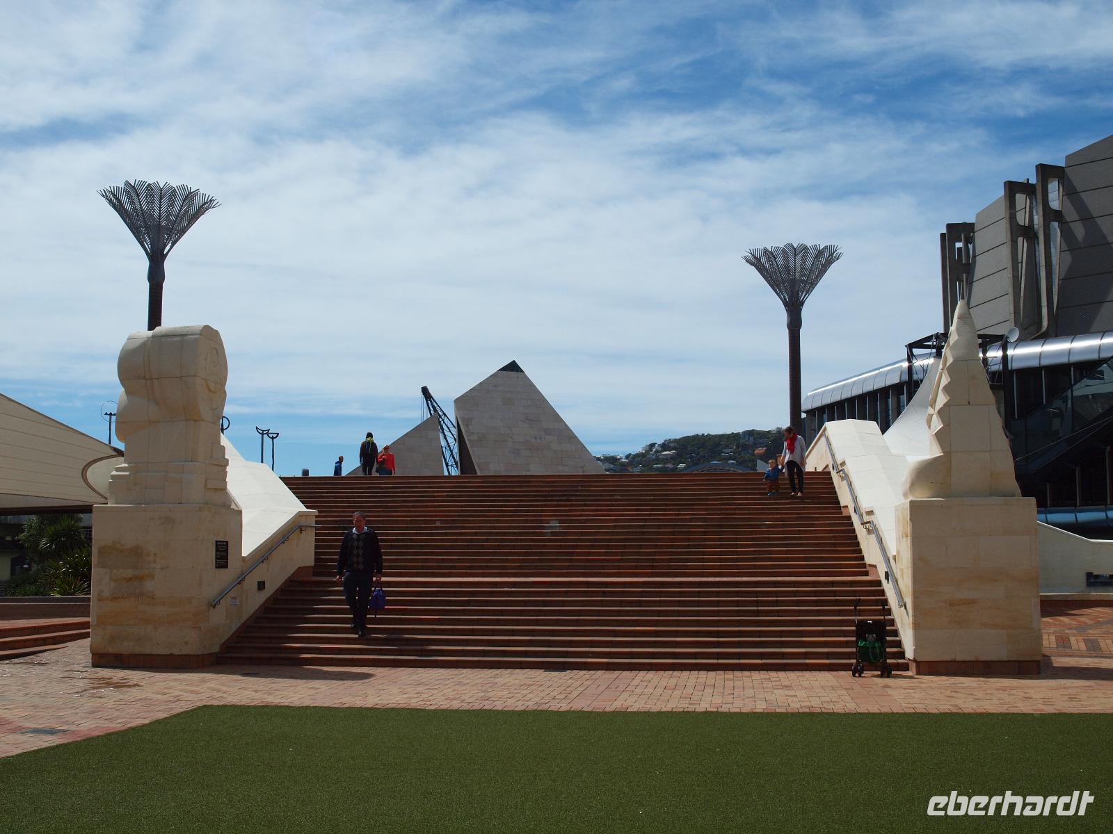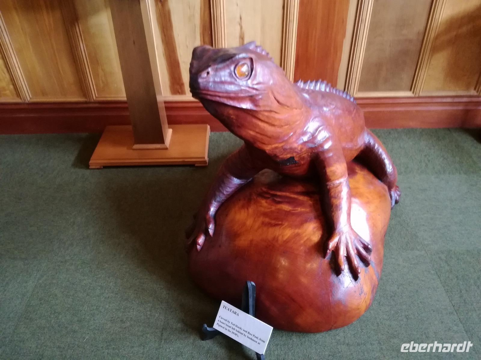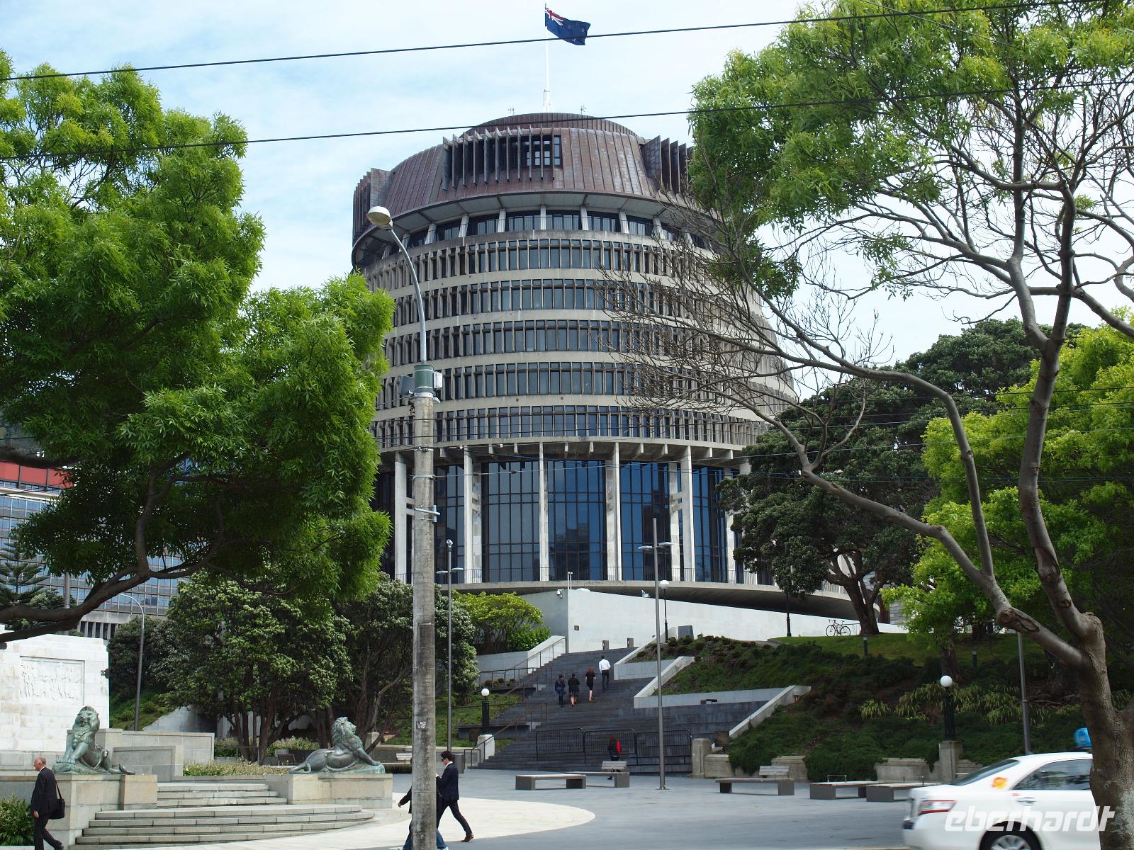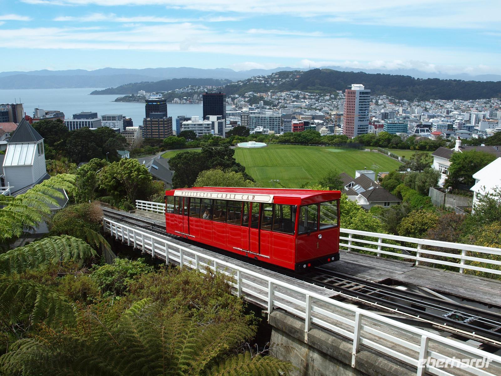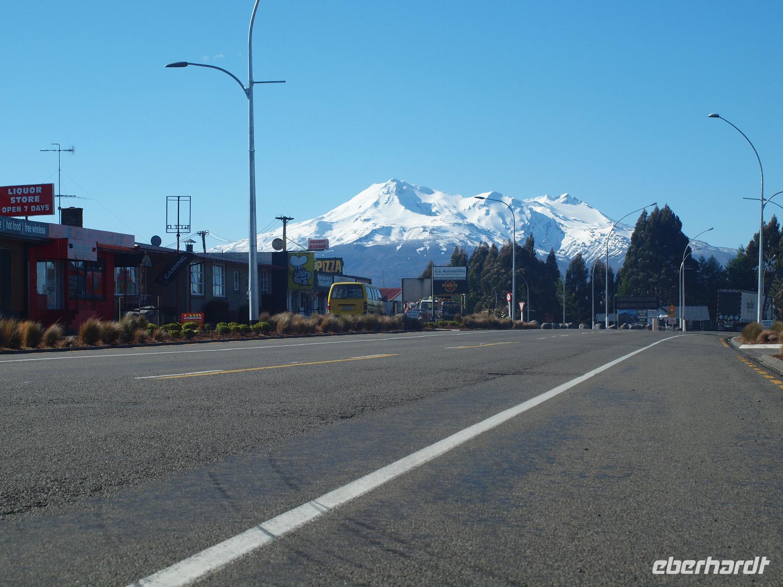 Den heutigen Vormittag verbringen wir in der Hauptstadt von Neuseeland. Um uns einen besseren Überblick über die Stadt zu verschaffen fahren wir zuerst, heute zum Glück auch bei strahlendem Sonnenschein, auf den Mount Victoria. Von hier oben sehen wir die ganze Stadt mit Hafen, die umliegenden Buchten und den Flughafen, eingebettet von grünen Hügeln. Wellington (Maori: Te Whanga-nui-a-Tara) ist zusammen mit angrenzenden Städten nach Auckland der zweitgrößte Ballungsraum des Landes. Die Maori-Bezeichnung Te Whanganui-a-Tara bezieht sich auf den angrenzenden Hafen von und bedeutet übersetzt „Der große Hafen des Tara". Trotz Sonnenschein spüren wir aber auch den Wind, der Wellington seinen Spitznamen „Windy Welly" verleiht. Wie fahren nun wieder zurück ins Zentrum, durch die Hauptstraßen der Stadt, vorbei an Wolkenkratzern und Einkaufspassagen. Unser nächster Halt ist das Regierungsviertel, gut erkennbar durch das Regierungsgebäude, den Bienenstock. Gleich nebenan das ältere Parlamentsgebäude. Durch einen kleinen Park führt uns der Weg zum „Old Gouvernement Building", es ist das größte Holzgebäude der Südhalbkugel und dient heute der Universität als juristische Fakultät. Das Gebäude steht Besuchern offen und so können wir einen Blick in dieses altehrwürdige Gebäude werfen. Einige Räume sind für die Besucher extra hergerichtet und so bekommen wir einen guten Einblick, wie es wohl früher ausgesehen hat, als hier noch Politik gemacht wurde. Nach der Besichtigung fahren wir zum Nationalmuseum Te Papa (Der Ort der Schätze dieses Landes). Im Museum wird auf sechs Ebenen Neuseeland von vielseitigen Aspekten beleuchtet. Insbesondere wird die Entwicklung von den ersten Besiedlungen an bis zum heutigen modernen Staat dargestellt. Wir haben genug Freizeit um einige der Ausstellungsräume anzuschauen. Oder man nutzt die Zeit um in der Innenstadt noch etwas durch die Straßen zu bummeln und vielleicht an der Waterfront ein Restaurant fürs Mittagessen zu finden. Nach der Pause treffen wir uns vor dem Te Papa wieder um unsere Reise in nach Norden fortzusetzen. Es dauert eine Weile bis wir die Stadtgrenzen hinter uns lassen und uns wieder in der Natur befinden. Wir fahren entlang der Westküste, vorbei an Kapiti Island, einem Vogelschutzgebiet und Heimat für eine Vielzahl einheimischer Vögel, unter anderen auch einige Arten der seltenen Kiwivögel. Kurz darauf erreichen wir Levin für eine kleine Pause. Weiter geht es und unser nächster Stopp ist in der kleinen Stadt Bulls. Hier macht man immer wieder kleine Wortwitze mit dem Namen der Stadt. Auch die Briefkästen, die in Neuseeland ja generell ulkig sind, sind Milchkannen. Von Bulls aus biegen wir dann an der Gabelung links ab, Richtung Hunterville, Taihape und Waiouru. Das Landschaftsbild verändert sich schlagartig als wir in der Weite den schneebedeckten Vulkan Ruapehu sehen. Er ist über die grünen Hügel und Wiesen gut zu erkennen und gibt ein nahezu perfektes Foto ab. Als wir immer näher kommen machen wir auch einen Fotostopp an der Straße. Alle Blicke sind auf den Ruapehu gerichtet, doch einer von uns hat auch den Blick für die Umgebung und erspäht doch tatsächlich, wenn auch nur ganz leicht, die Silhouetten des Vulkan Taranaki. Ganz allein steht er im Dunst, nur ca. 100 Kilometer entfernt. Warum er nicht mit den anderen Vulkanen im Zentrum der Nordinsel steht, werden wir morgen erfahren. Am frühen Abend erreichen wir die kleine Stadt Ohakune und übernachten etwas außerhalb des Zentrums, am Fuße des Vulkans. Bis zum Abendessen bleiben uns noch ein paar Momente für einen Abendspaziergang oder die Chance auf ein entspannendes Bad im beheizten Whirlpool.