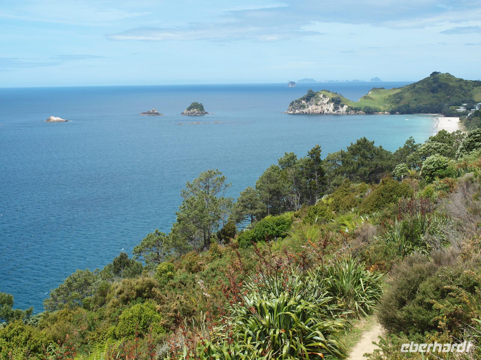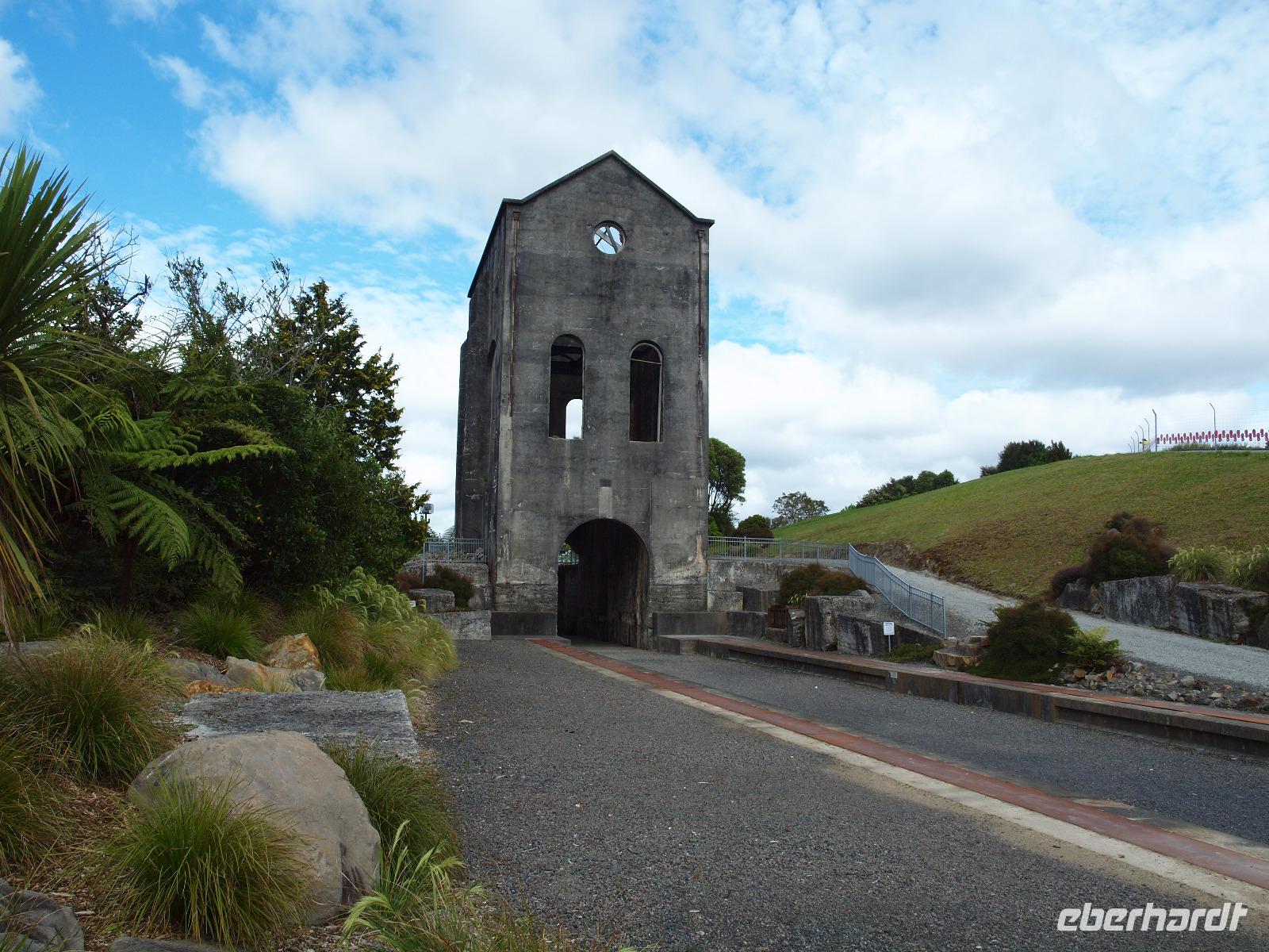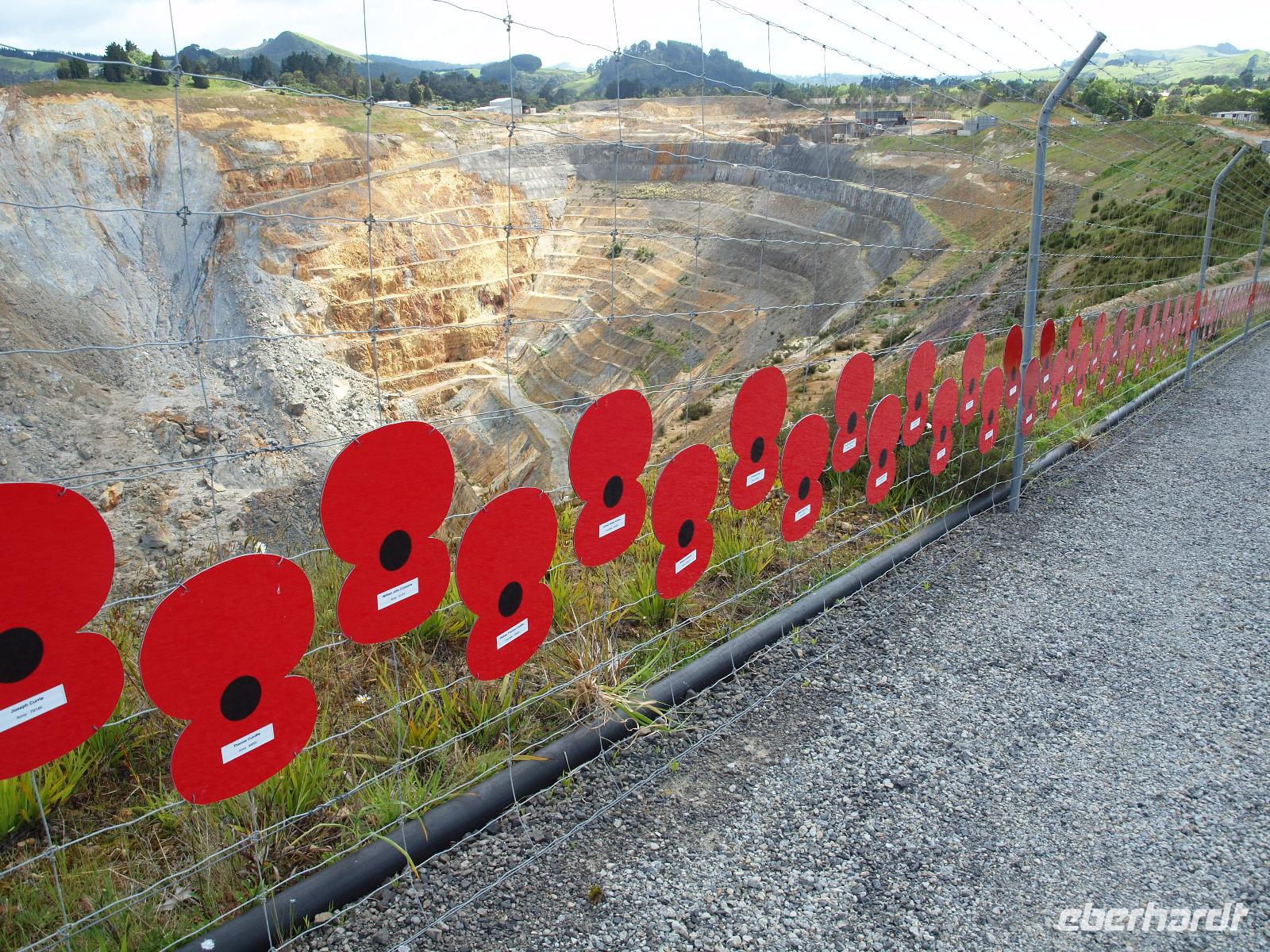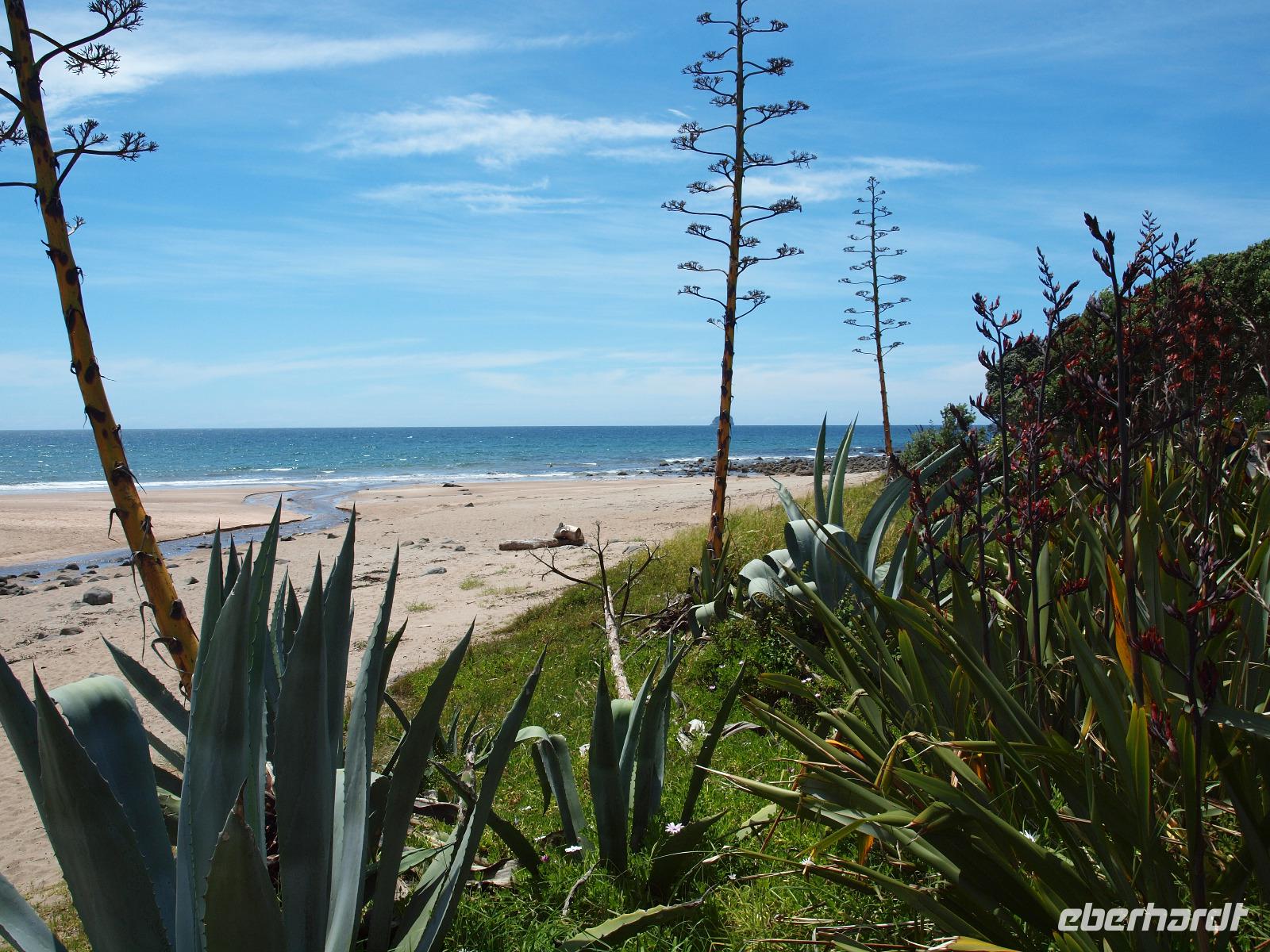Nach unserer Nacht auf dem Land und einen guten Frühstück mit unserer Gastfamilie müssen wir uns auch schon wieder auf den Weg zum Bus nach Cambridge machen. Wir verabschieden uns von unseren Gastgebern und werden von Ivan nach Cambridge gebracht. Alle anderen der Gruppe sind bereits am Bus und unterhalten sich noch ein bisschen mit ihren Gastgebern. Die anfängliche Skepsis wich einem strahlenden Lächeln, es scheint also allen gut ergangen zu sein. Unsere Reise führt uns heute wieder einmal quer über die Insel. Die Coromandel Halbinsel liegt an der Ostküste der Nordinsel. Das Gebiet lebt mittlerweile hauptsächlich vom Tourismus. Der Regenwald überzieht weite Teile des Inneren der Halbinsel, an der Küste befinden sich schöne Strände und beeindruckende Aussichtspunkte. Eben diese Strände sollen heute unser Ziel sein. Unterwegs jedoch halten wir noch an einer Goldgräberstadt, Waihi. Wir gehen hinauf zur Grube und müssen feststellen, dass hier eine Seite komplett verschüttet ist. Einige Arbeiter laufen die Hänge ab, ich nutze die Chance und stelle ein paar Frage zum Erdrutsch. Es war wohl ein Unfall, der Erdrutsch hat ca. ein Drittel der Grube verschüttet, aber verletzt wurde zum Glück niemand. Der Arbeiter erzählt uns auch, dass das Goldvorkommen sehr hoch ist und nur einige Kilometer außerhalb der Stadt eine zweite Grube gegraben wird. Irgendwann sollen dann beide durch Gänge miteinander verbunden werden. Ich bedanke mich für seine Auskünfte und gebe meine Informationen natürlich weiter. Von Waihi aus ist es nicht mehr weit bis zum Hot Water Beach. Hier beweisen Thermanlquellen direkt am Strand den vulkanischen Ursprung des Gebietes. Wasser mit 64 °C tritt aus zwei Quellen aus, die bei Ebbe etwa 2 Stunden lang zugänglich sind. Wir sehen noch ein paar Besucher wie sie eifrig Löcher in den Sand graben, aber die Flut kommt bereits zurück und gestaltet das entspannte Faullenzen in der natürlichen Badewanne etwas schwieriger. Wir genießen die Augenblicke am Strand und dehnen unseren Spaziergang so lange wie möglich aus. In einem kleinen Restaurant, unweit vom Strand, legen wir dann auch noch unser Mittagessen ein. Sonne, blauer Himmel, Strand - was will man mehr?
