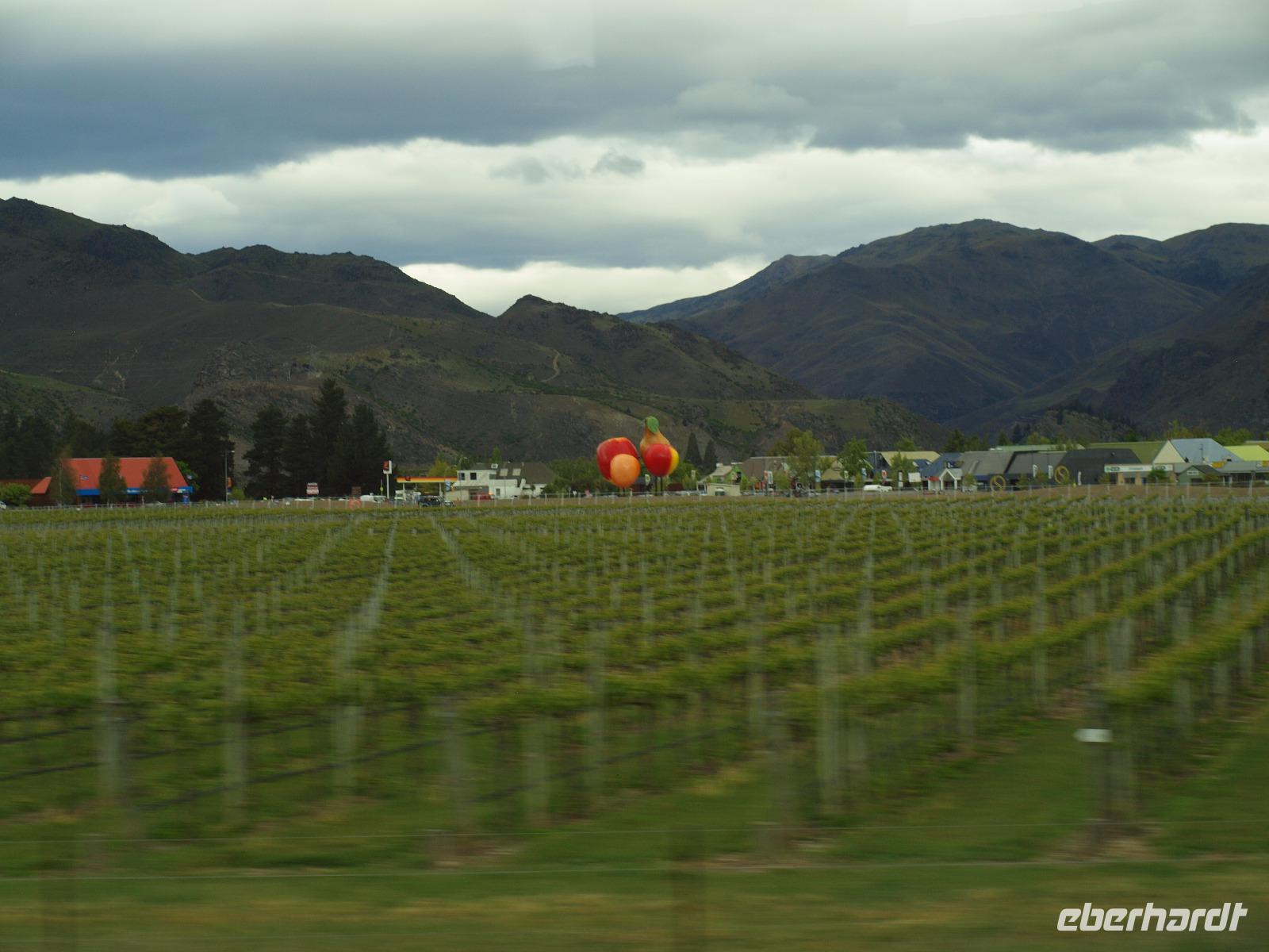 Nach dem See sind es noch immer gute 100 Kilometer bis nach Queenstown. Das weiß natürlich auch Maxine und beschließt in Cromwell einen Zwischenstopp einzuplanen, damit sie unserem Bus auch etwas zu trinken geben kann. Wir haben in der Zwischenzeit Pause bei einem Obstladen und können uns hier schon mal für die nächsten ein zwei Tage ein paar Snacks holen, vor allem die Äpfel sind beliebt! :)
