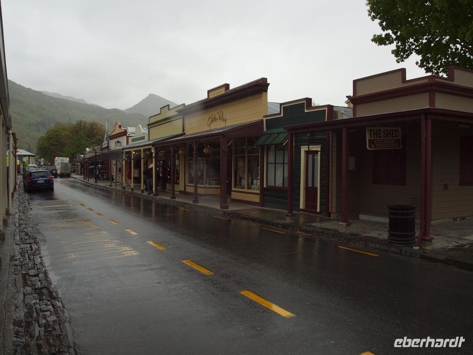 Bevor wir nach Queenstown fahren, halten wir noch im Goldgräberstädtchen Arrowtown. Leider nimmt der Regen hier wieder zu und die Geschäfte sind auch kurz vor Ladenschluss. Aber zum Durchschlendern ist Arrowtown genau richtig.