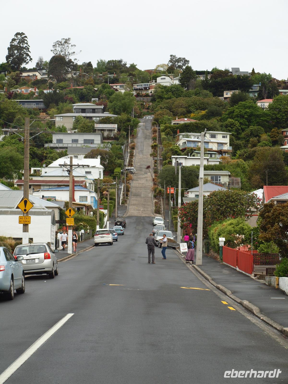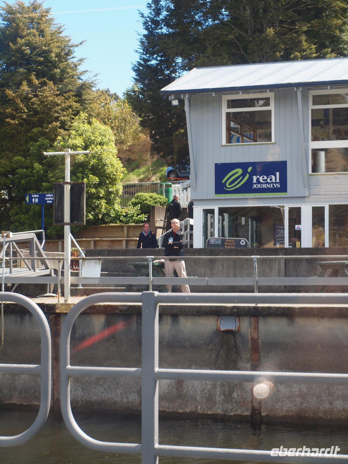 Noch vor dem Frühstück versammeln wir uns schon wieder auf dem Aussichtsdeck, weitere kleine Pinguine sind auf einem Felsen vor uns aufgetaucht. Während wir die Fotos schießen, wird das Frühstück vorbereitet und wir können direkt mit dem Essen weiter machen. Unser nächstes Ziel ist der sogenannte Hall Arm. Einer der malerischen Seitenarme des Fjords. Kurz darauf erleben wir einen nahezu besonderen Moment. Unser Skipper bittet uns darum für mindestens fünf Minuten kein lautes Geräusch von uns zu geben. Er schaltet alle Geräte und Maschinen an Bord aus und plötzlich herrscht absolute Stille. Wir hören die Wasserfälle von den Steilwänden hinunter fließen, Vögel zwitschern, statt Gespräche und atmen klare Luft statt Dieseldämpfe. Der Doubtful Sound - Der Fjord der Stille. Diese fünf Minuten erscheinen uns als wahres Highlight. Leider müssen wir nun wieder zurück zur Anlegestelle „Deep Cove". Wir verabschieden uns bei der Crew und steigen voller wunderbarer Erlebnisse im Gepäck zurück in die Busse. An der Station „West Arm" steigen wir wieder auf das kleinere Boot um und genießen die letzten Momente im Fjordland-Nationalpark. In Manapouri zurück werden wir schon von Hans und Maxine erwartet. Wir erzählen den beiden natürlich sofort von unseren Erlebnissen und mit einem Lächeln auf den Lippen starten wir unsere Fahrt nach Dunedin. Unterwegs durchfahren wir die Ortschaften Gore uns Clinton. Am frühen Abend erreichen wir dann die Universitätsstadt Dunedin. Dunedin war einst, dank des Goldrausches, die reichste Stadt Neuseelands. Nach einer kurzen Fahrt durch das Zentrum, Octagon genannt, halten wir beim historischen Bahnhofsgebäude, welches 1906 errichtet wurde. Einmal im Jahr wird der Bahnhof zum Laufsteg für die größte Modenschau der Region und beherbergt heute unter anderem ein Restaurant, eine Galerie sowie die New Zealand Sports Hall of Fame. Gleich danach fahren wir zu steilsten bewohnten Straße der Welt und laufen bis zum oberen Ende hinauf. Die maximale Steigung der knapp 350 Meter langen Straße beträgt ca. 35 %. Der Tag neigt sich nun wirklich dem Ende und wir fahren zu unserem Hotel. Gegen Mitternacht hören wir dann schon die ersten Feuerwerkskörper, morgen ist die berühmt berüchtigte Guy Fawkes Nacht.