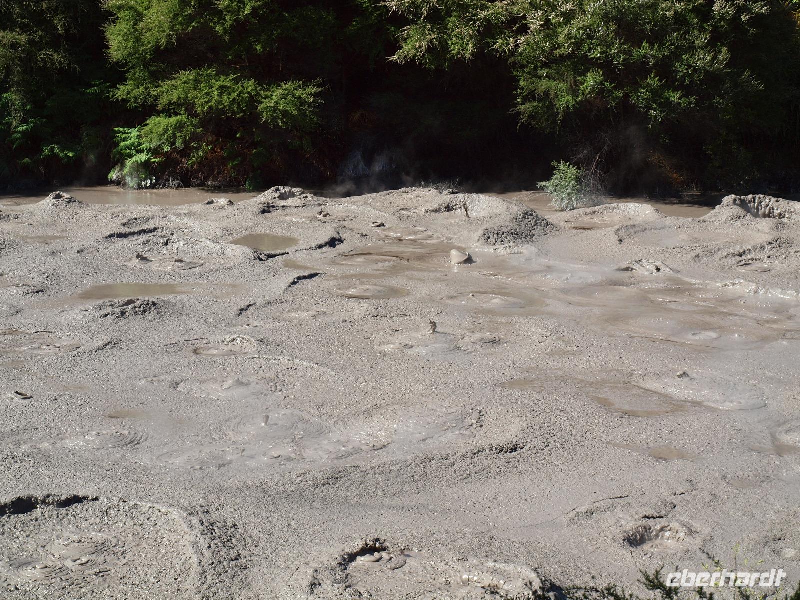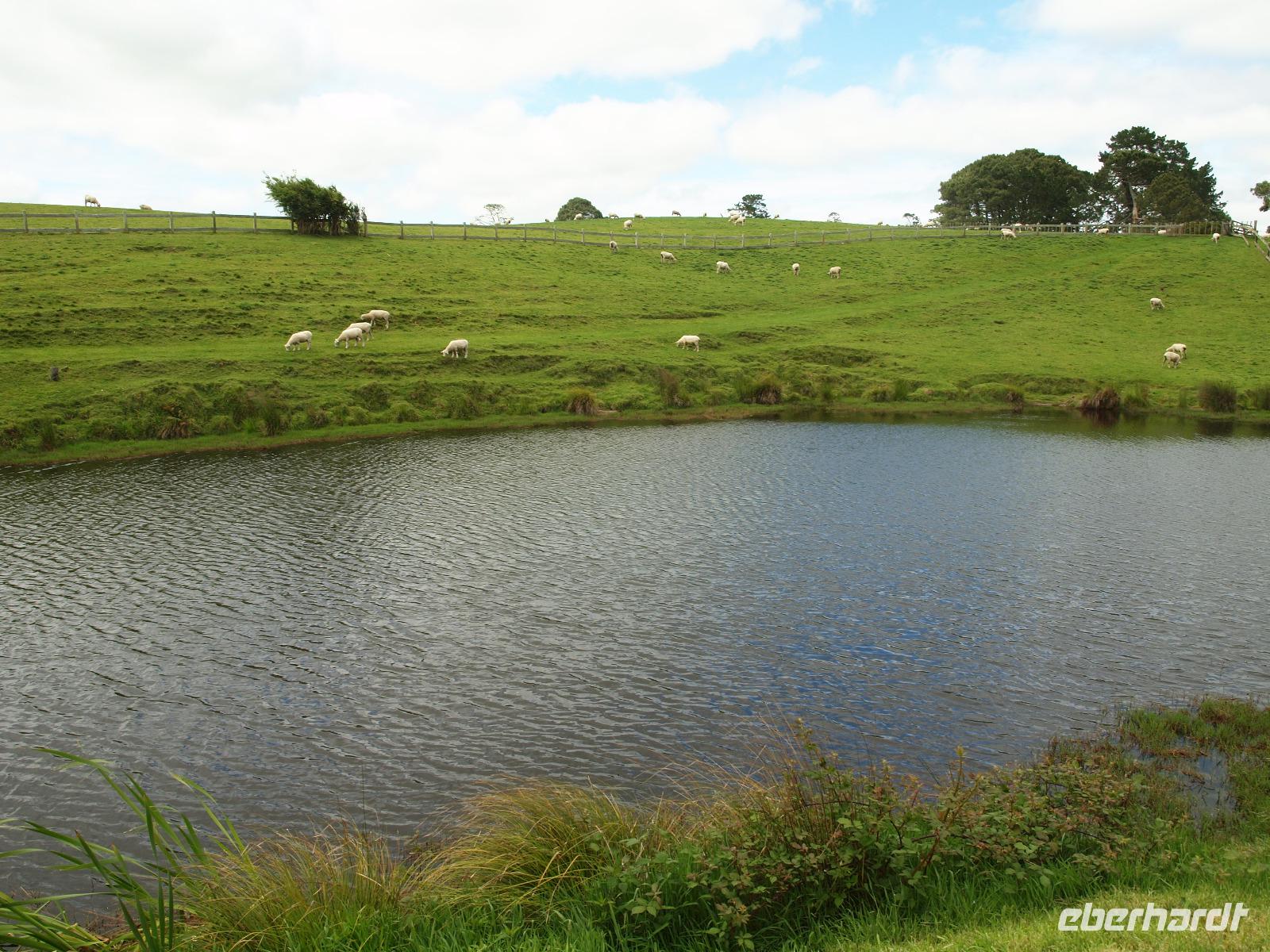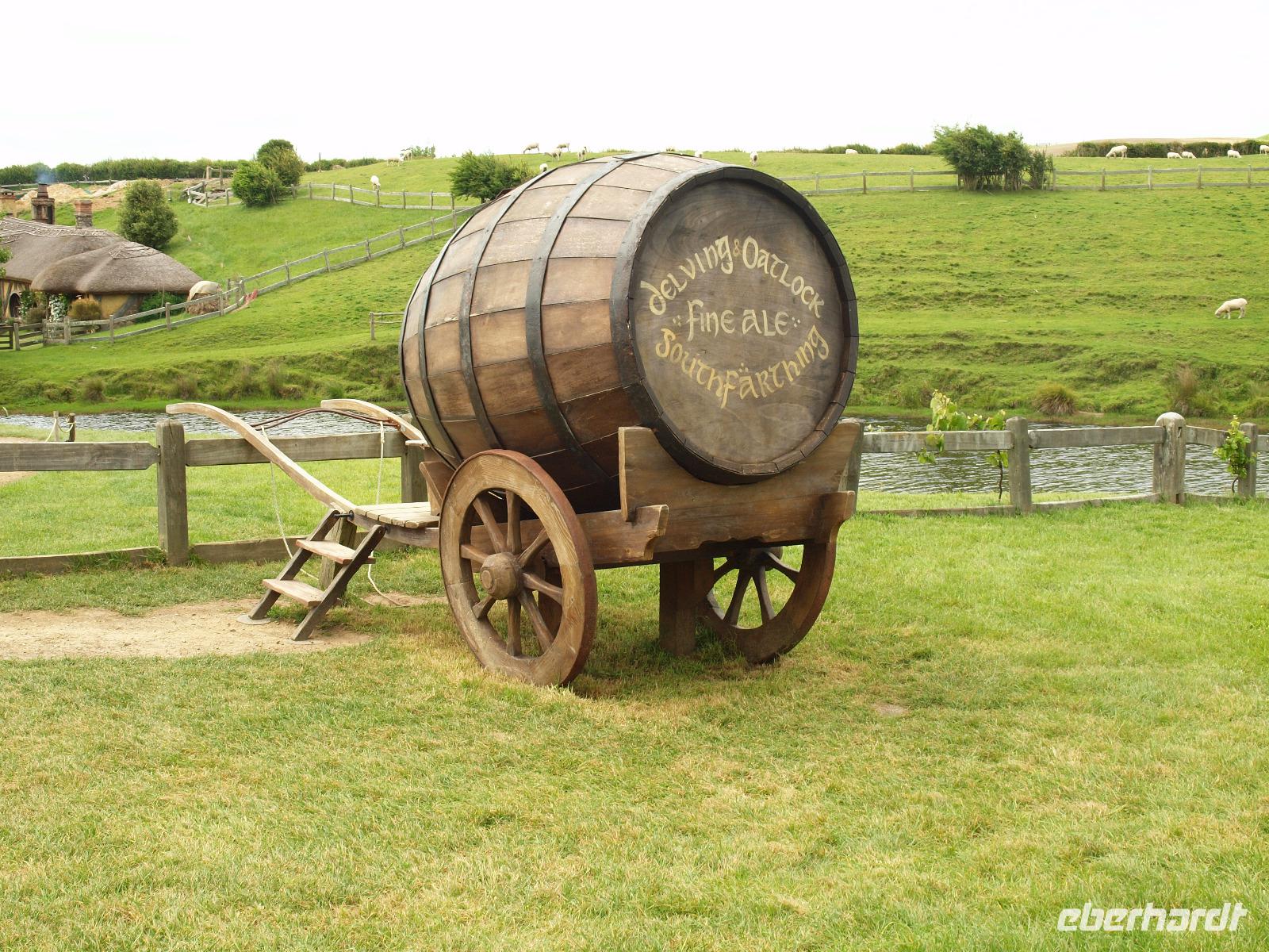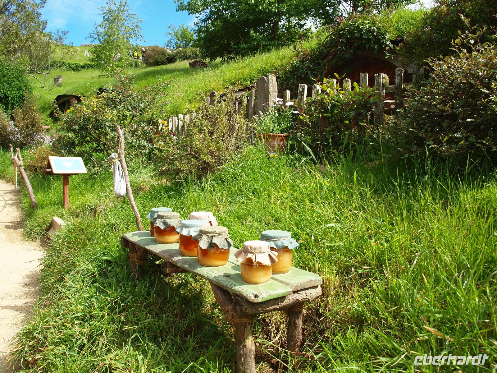 Der Morgen beginnt für einige von früher als für den Rest der Gruppe. Eine Handvoll Freiwillige begeben sich heute auf die Spuren der Hobbits. Von Rotorua aus fahren wir ca. eine Stunde lang durch grasgrüne Hügellandschaften immer weiter in nordwestliche Richtung, eigentlich in genau die Richtung, in der unser Tagesziel etwas später liegt... doch vorher biegen wir rechts nach Matamata ab, die Heimat der Hobbit-Drehorte. Die „Herr der Ringe"-Filmfreunde unter uns sind schon sehr gespannt auf das Filmset „Hobbiton". Während der Fahrt bekommen wir ein paar Informationen von unserem Fahrer bezüglich Rotorua und Umgebung, dann lässt er ein paar Videos über den Busmonitor abspielen, diese sollen uns schon mal in „Hobbit-Stimmung" bringen... Wir erreichen das Filmset und werden von unserem Guide Kacey in Empfang genommen. Er begleitet und führt uns durch die Anlage. Die kleinen Wohnhöhlen sind in die umliegenden Grashügel gebaut, nur kleine Höhlen sind dahinter, die gerade einmal Platz für zwei Personen bieten. Beim Dreh sind die Schauspieler nur schnell darin verschwunden und haben drinnen dann gewartet bis die Kamera vorbei war. Über die Hügel gehen wir an fast allen 40 Wohnhöhlen vorbei und mindestens drei Damen unserer Gruppe haben ein Foto von jeder Höhle. ;) Wir lassen uns etwas vom Fotografieren anstecken und lassen uns zusammen von Kacey fotografieren. Während des Rundgangs sehen wir die Liebe zum Detail. Die Gärten sind echt, das Gemüse kann man tatsächlich ernten und genießen. Die kleinen Briefkästen, Hofläden und Wäscheleinen runden das Bild ab, es fehlt nur noch dass die Bewohner draußen in der Sonne sitzen und sich bei einem Plausch mit den Nachbarn über die Schultern schauen lassen. Die Tour führt uns weiter über die große Wiese, wo sich im Film Groß und Klein zum Feiern und Amüsieren versammeln. Kurz danach erreichen wir den „Green Dragon" den Pub der Hobbits. Ein Freibier wartet hier auf uns und lässt die Besichtigung dann auch schon enden. Auf dem Weg zum Bus laufen wir entlang des Sees und hier sehen wir sogar die übrig gebliebenen Fischerutensilien und Fische. Dieses malerische Filmset benötigt keinerlei Verbesserung durch Technik. Der Produzent, Peter Jackson, hat hier wirklich 100 Prozent Leidenschaft gezeigt.