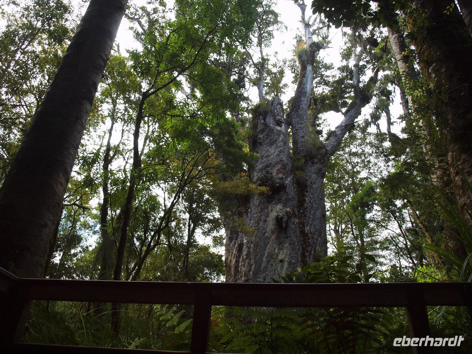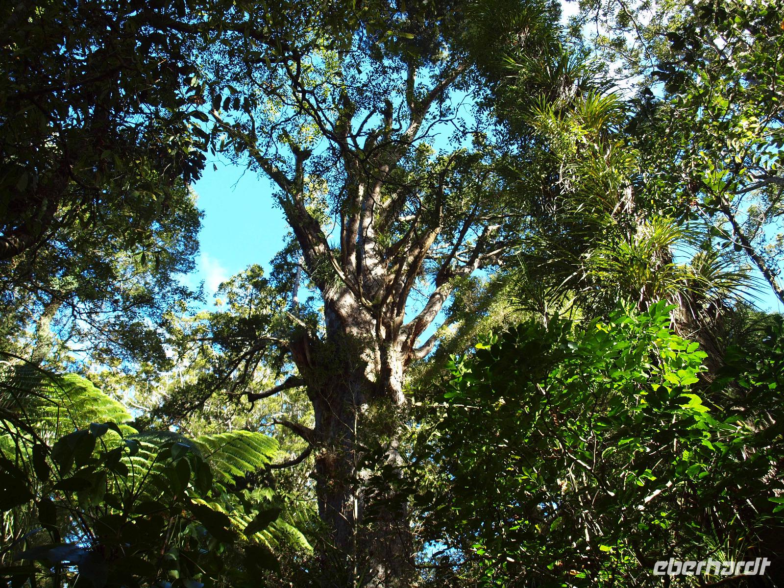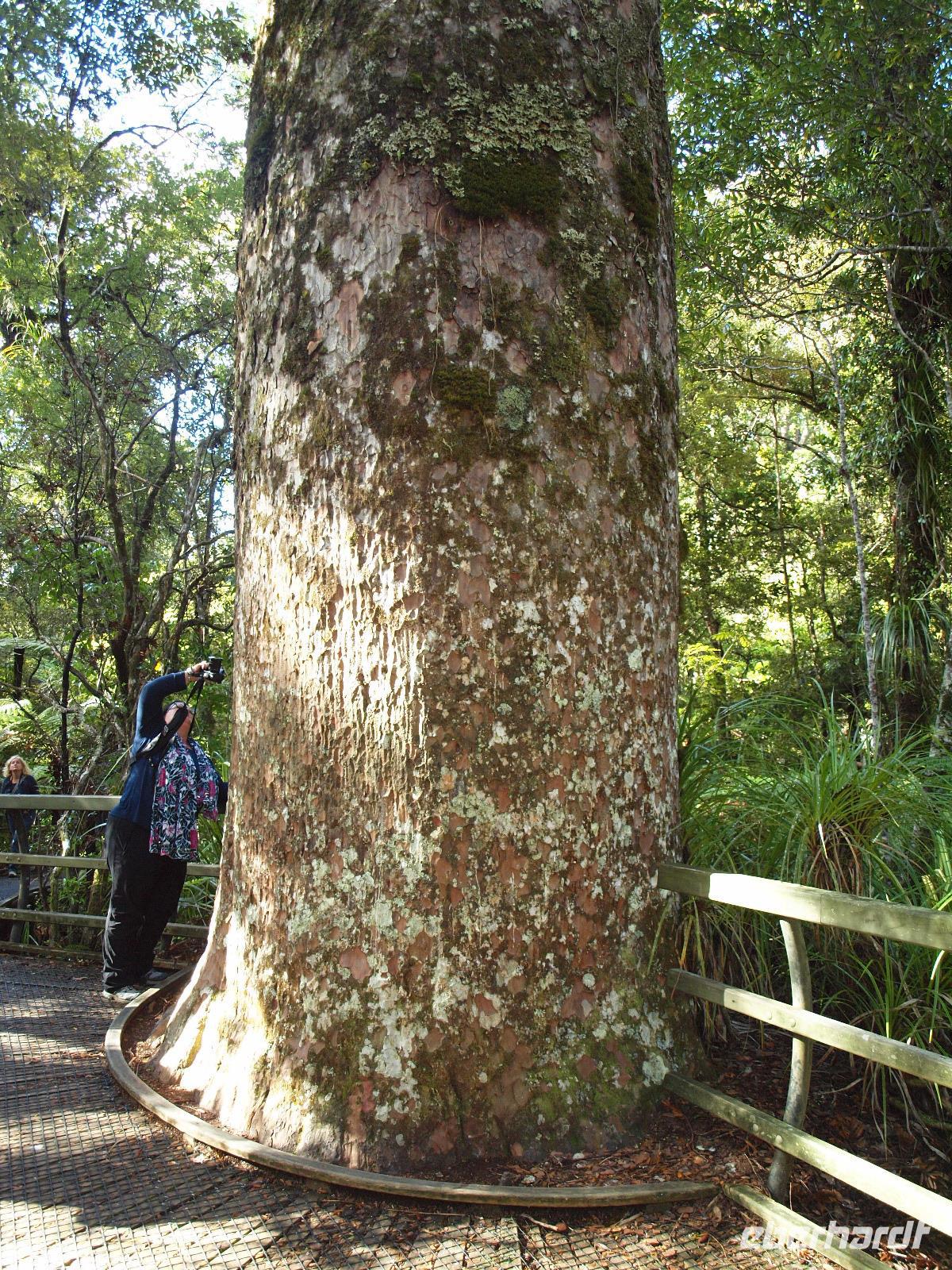Um uns abzulenken gehen wir unserem Tagesprogramm nach. Wir fahren gen Westen, nach Opononi. Von einem Aussichtspunkt aus sehen wir noch ein paar Wanderdünen. Es ist sehr windig hier, daher gehen wir relativ schnell auch wieder zurück in den Bus. Hauptattraktion des heutigen Tages sind die Kauribäume. Wir erreichen den Herren/Gott des Waldes, Tane Mahuta. Wir haben bereits von ihm gehört, erinnert ihr euch? Er ist etwa 51 Meter hoch und somit der höchste Kauri Neuseelands. Wenige Kilometer weiter erreichen wir über einen Waldweg weitere bemerkenswerte Kauribäume. Die Four Sisters zum Beispiel, vier Stämme, die aus einer Wurzel wachsen. Und dann noch der Vater des Waldes, Te Matua Ngahere, er ist zwar nicht hoch gewachsen, dafür aber sehr breit. Sein Stamm misst einen Durchmesser von über fünf Metern. Von hier aus führt uns die Straße weiter in engen Kurven durch den dichten Waipoua Wald. Nach einer kleinen Pause in Dargaville fahren wir weiter über den Highway 12 und 1 in Richtung Auckland. Kurz vor unserem Tagesziel entführen Hans und ich die gesamte Gruppe noch einmal. Im Wenderholm Park, nördlich von Orewa und Auckland, legen wir eine letzte Pause ein. Während die meisten von uns nochmal zu den Toiletten gehen zaubern Hans und ich auf einer Parkbank ein kleines Buffet herbei. Zusammen stoßen wir auf unsere Reise am anderen Ende der Welt an. Es ist auch schon ein kleiner Abschied, von diesem Paradies, denn morgen müssen wir wieder nach Hause. Über die Hafenbrücke fahren wir in die Stadt der Segel. Gleich nachdem wir die Zimmer bezogen haben treffen wir uns wieder unten in der Lobby und gehen gemeinsam zum Skytower, denn von hier oben sieht man Auckland am besten. Über die Queenstreet schlendern wir dann zurück zum Hotel. Unser letztes gemeinsames Abendessen, wir lassen die Reise Review passieren und ich bin ganz Ohr was das Feedback betrifft. Hier in dieser Stadt, in der für mich mein Abenteuer Neuseeland damals begann und endete, endet es auch diesmal wieder, diesmal aber kann ich dieses Gefühl mit 18 Reisegästen teilen...