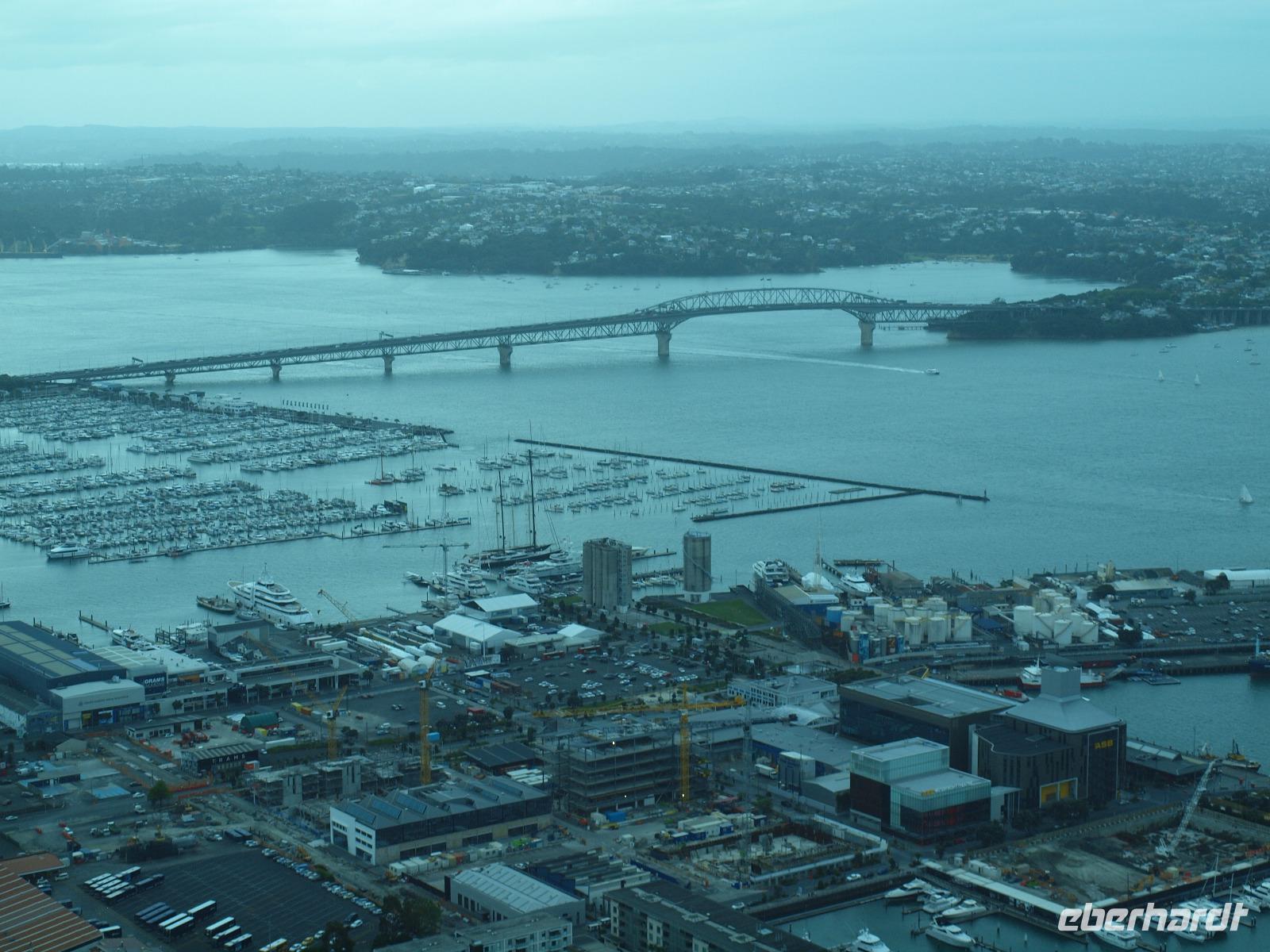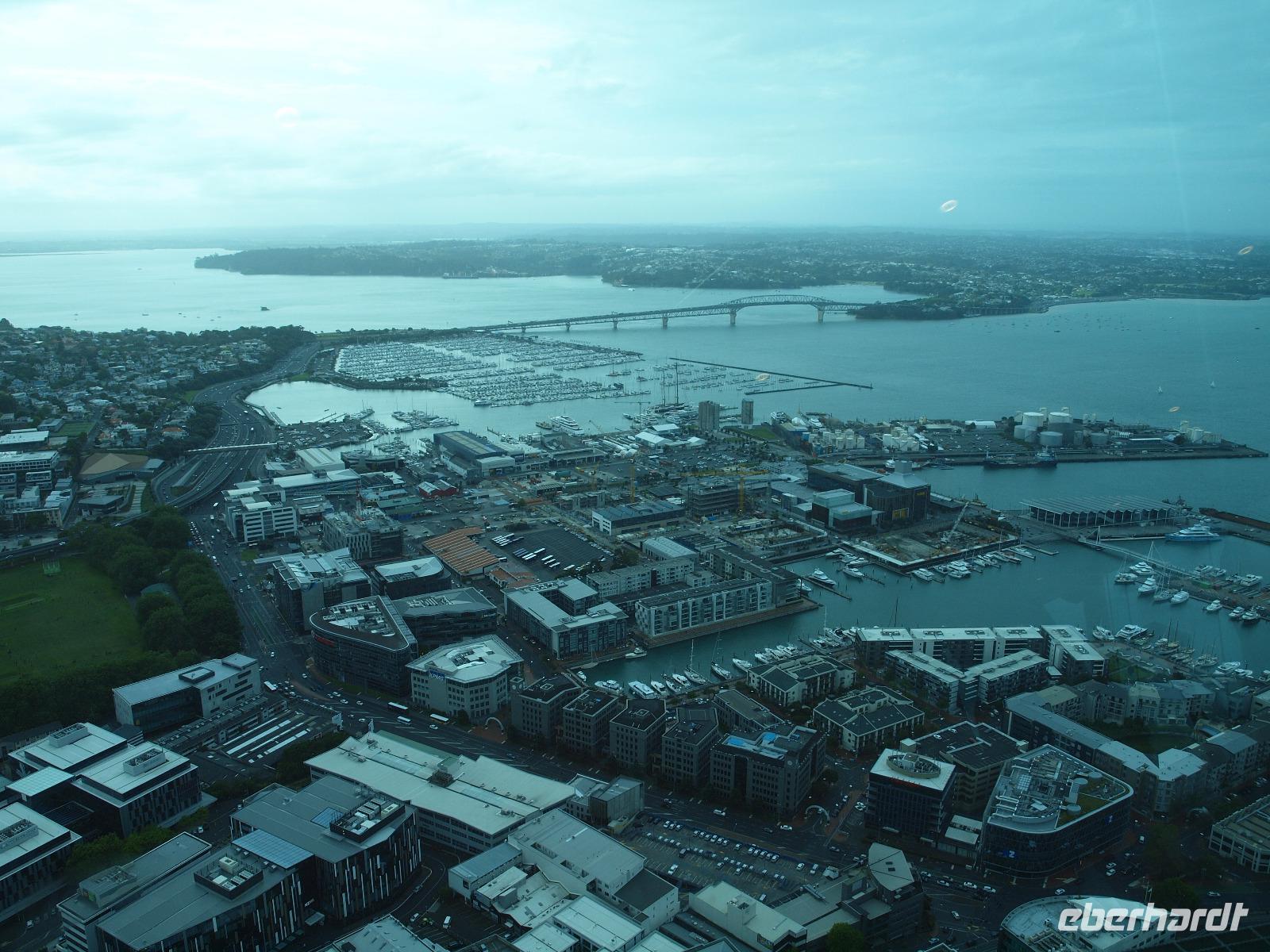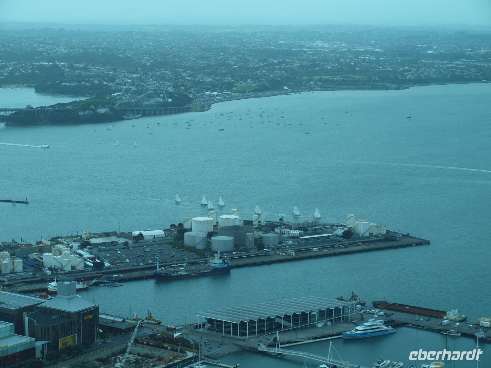 Um uns abzulenken gehen wir unserem Tagesprogramm nach. Wir fahren gen Westen, nach Opononi. Von einem Aussichtspunkt aus sehen wir noch ein paar Wanderdünen. Es ist sehr windig hier, daher gehen wir relativ schnell auch wieder zurück in den Bus. Hauptattraktion des heutigen Tages sind die Kauribäume. Wir erreichen den Herren/Gott des Waldes, Tane Mahuta. Wir haben bereits von ihm gehört, erinnert ihr euch? Er ist etwa 51 Meter hoch und somit der höchste Kauri Neuseelands. Wenige Kilometer weiter erreichen wir über einen Waldweg weitere bemerkenswerte Kauribäume. Die Four Sisters zum Beispiel, vier Stämme, die aus einer Wurzel wachsen. Und dann noch der Vater des Waldes, Te Matua Ngahere, er ist zwar nicht hoch gewachsen, dafür aber sehr breit. Sein Stamm misst einen Durchmesser von über fünf Metern. Von hier aus führt uns die Straße weiter in engen Kurven durch den dichten Waipoua Wald. Nach einer kleinen Pause in Dargaville fahren wir weiter über den Highway 12 und 1 in Richtung Auckland. Kurz vor unserem Tagesziel entführen Hans und ich die gesamte Gruppe noch einmal. Im Wenderholm Park, nördlich von Orewa und Auckland, legen wir eine letzte Pause ein. Während die meisten von uns nochmal zu den Toiletten gehen zaubern Hans und ich auf einer Parkbank ein kleines Buffet herbei. Zusammen stoßen wir auf unsere Reise am anderen Ende der Welt an. Es ist auch schon ein kleiner Abschied, von diesem Paradies, denn morgen müssen wir wieder nach Hause. Über die Hafenbrücke fahren wir in die Stadt der Segel. Gleich nachdem wir die Zimmer bezogen haben treffen wir uns wieder unten in der Lobby und gehen gemeinsam zum Skytower, denn von hier oben sieht man Auckland am besten. Über die Queenstreet schlendern wir dann zurück zum Hotel. Unser letztes gemeinsames Abendessen, wir lassen die Reise Review passieren und ich bin ganz Ohr was das Feedback betrifft. Hier in dieser Stadt, in der für mich mein Abenteuer Neuseeland damals begann und endete, endet es auch diesmal wieder, diesmal aber kann ich dieses Gefühl mit 18 Reisegästen teilen...