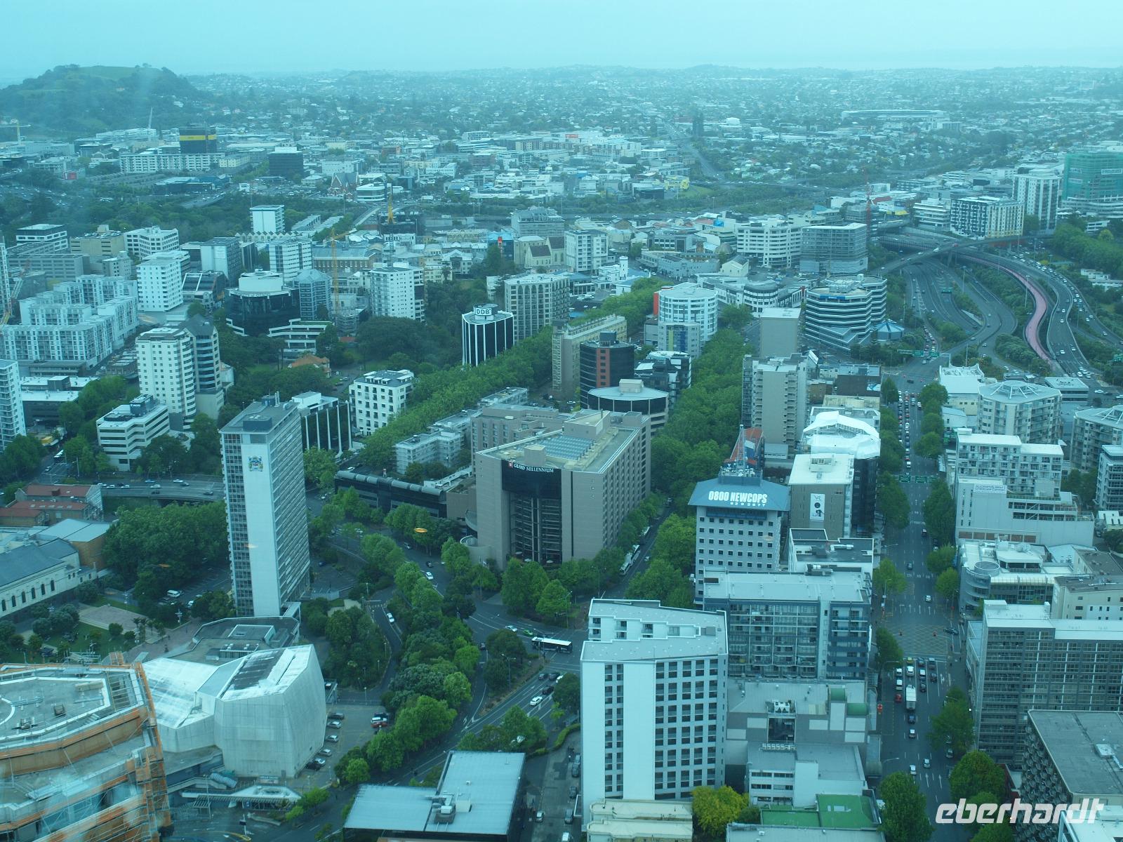 Nach dem Frühstück verladen wir die Koffer ein letztes Mal. Phil und Hans bringen uns zum Flughafen, vorher statten wir aber der Innenstadt, dem Stadtteil Parnell und der Domain noch einen Besuch ab. Auch Hans fasst die Reise auf dem Weg zum Flughafen noch einmal für uns zusammen, dem Stau sei Dank hat er dies auch just in time schaffen können, so viel wie wir erlebt haben...