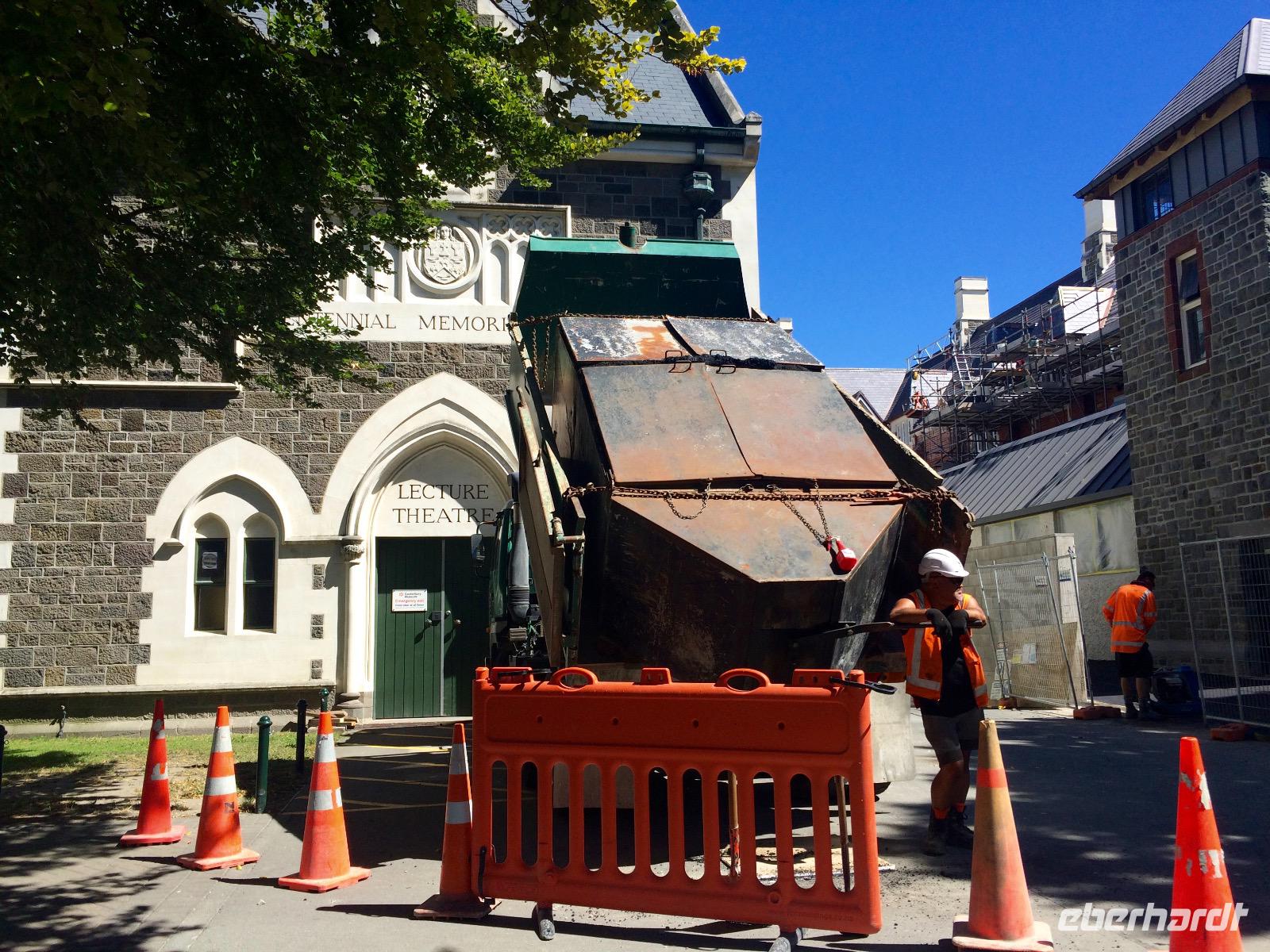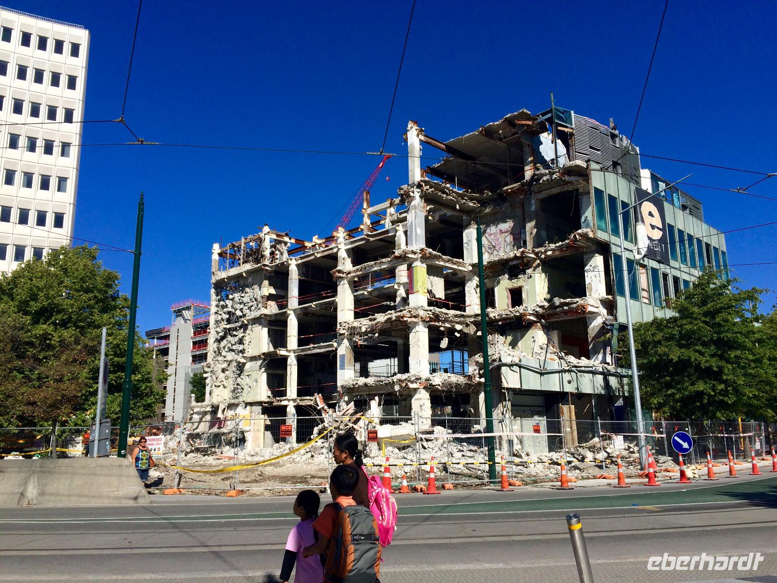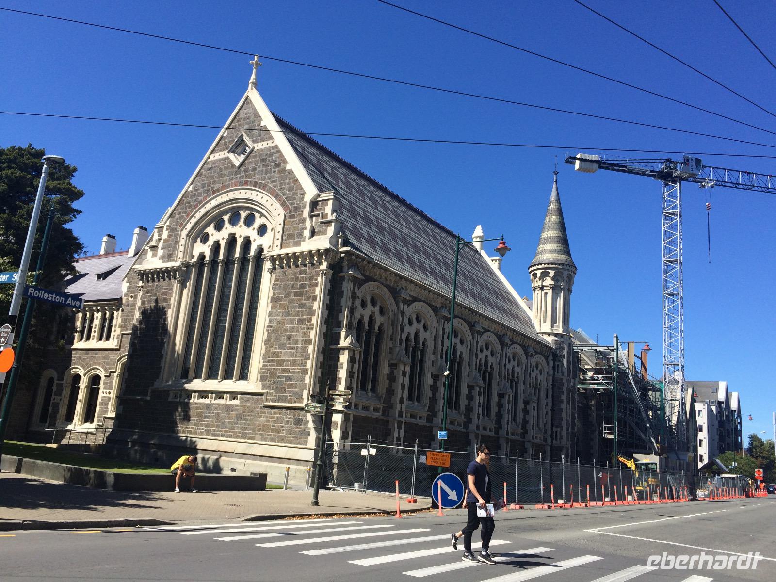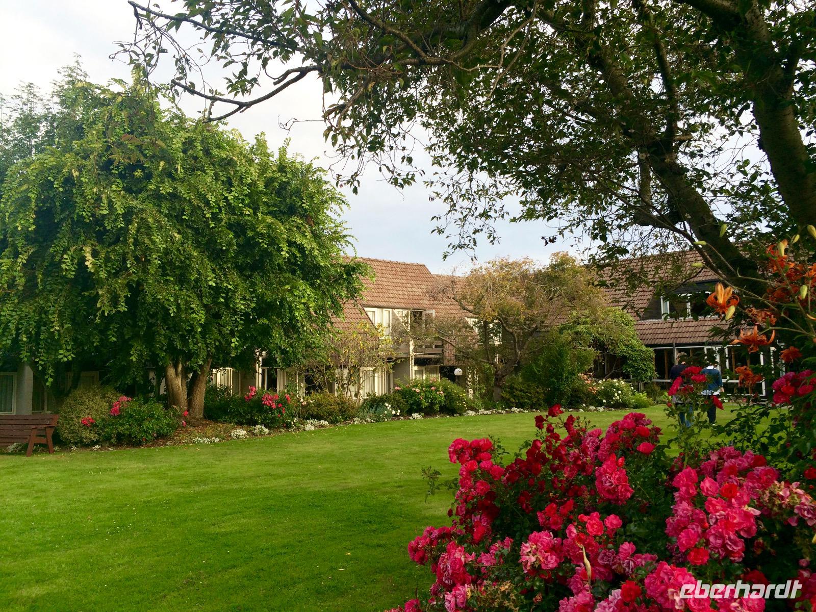 Kia Ora in Aotearoa! Nach knapp 10 Flugstunden kommen wir endlich an am anderen Ende der Welt! Am Flughafen von Christchurch nimmt uns unser Reiseleiter Gernot in Empfang und nimmt uns gleich mit auf eine Erkundungstour. Im Zentrum der größten Stadt der Südinsel sind immer noch deutlich die Spuren der verheerenden Erdbeben von 2010 zu sehen. Gernot, der schon seit mehr als 30 Jahren in Neuseeland lebt, verrät uns, dass ca. 1600 Gebäude durch das Beben zerstört wurden. Rund um den Cathedral Square sind die meisten Gebäude, inklusive der schönen Kathedrale, zerstört oder mindestens beschädigt. Christchurch befindet sich in der Aufbauphase, überall wird fleißig gebaut. Unser Chauffeur Dave erzählt uns, dass jeden Tag neue Straßen wegen Bauarbeiten gesperrt sind und Christchurch im Volksmund nun auch die Stadt der Straßenkegel genannt wird. Diese neuen Projekte schaffen viele neue Arbeitsplätze, aber dennoch wirkt es hier ein wenig trostlos. Der weitläufige Botanische Garten lenkt uns ab von den Baumaßnahmen in der Stadt und am Nachmittag beziehen wir unser Hotel.