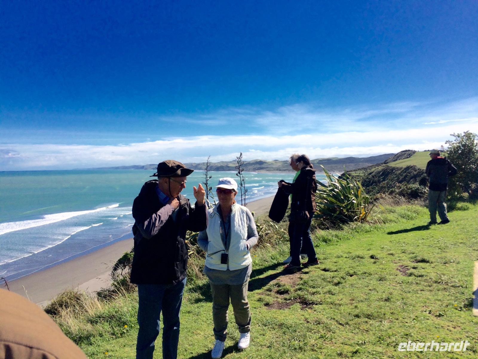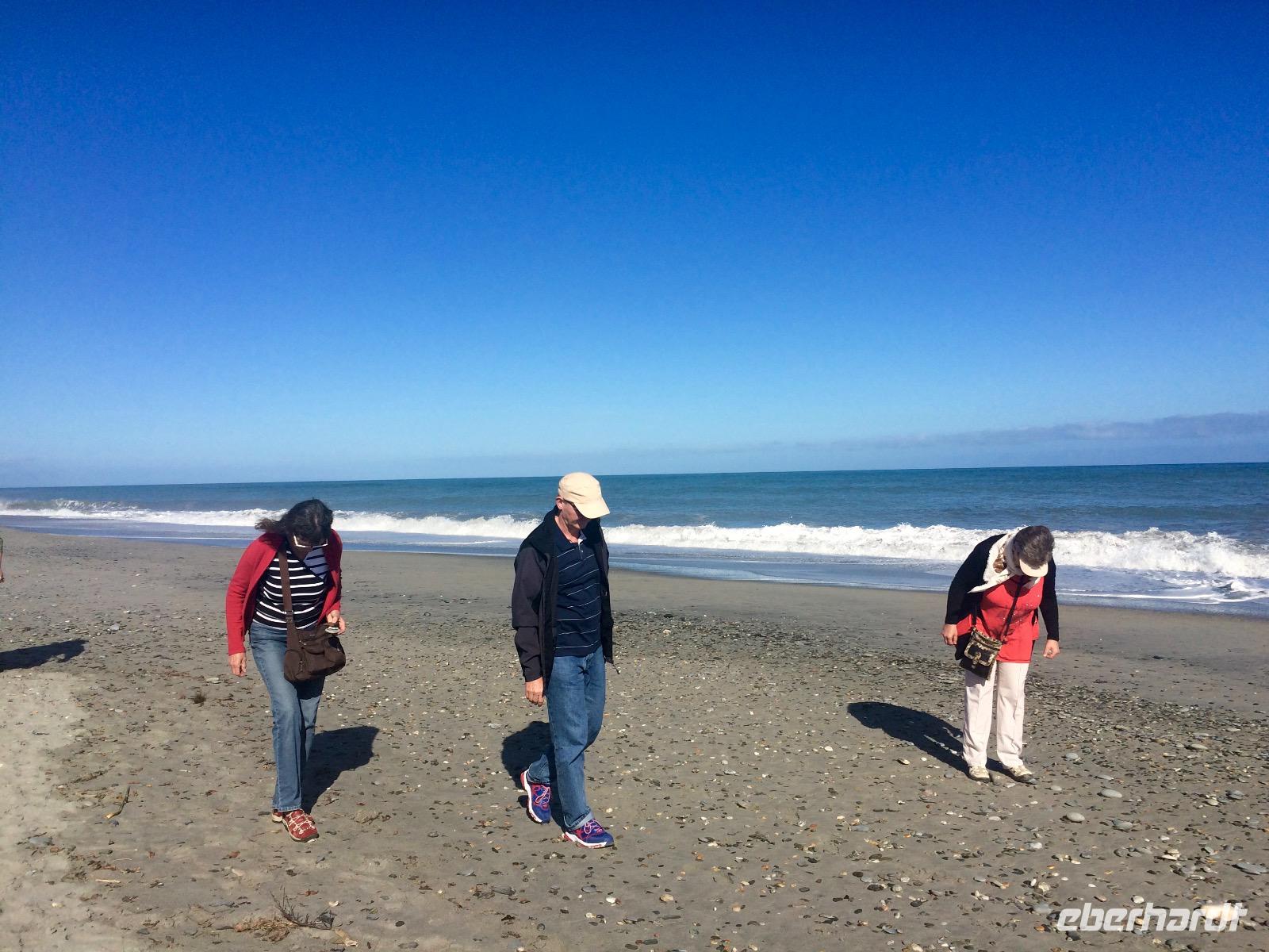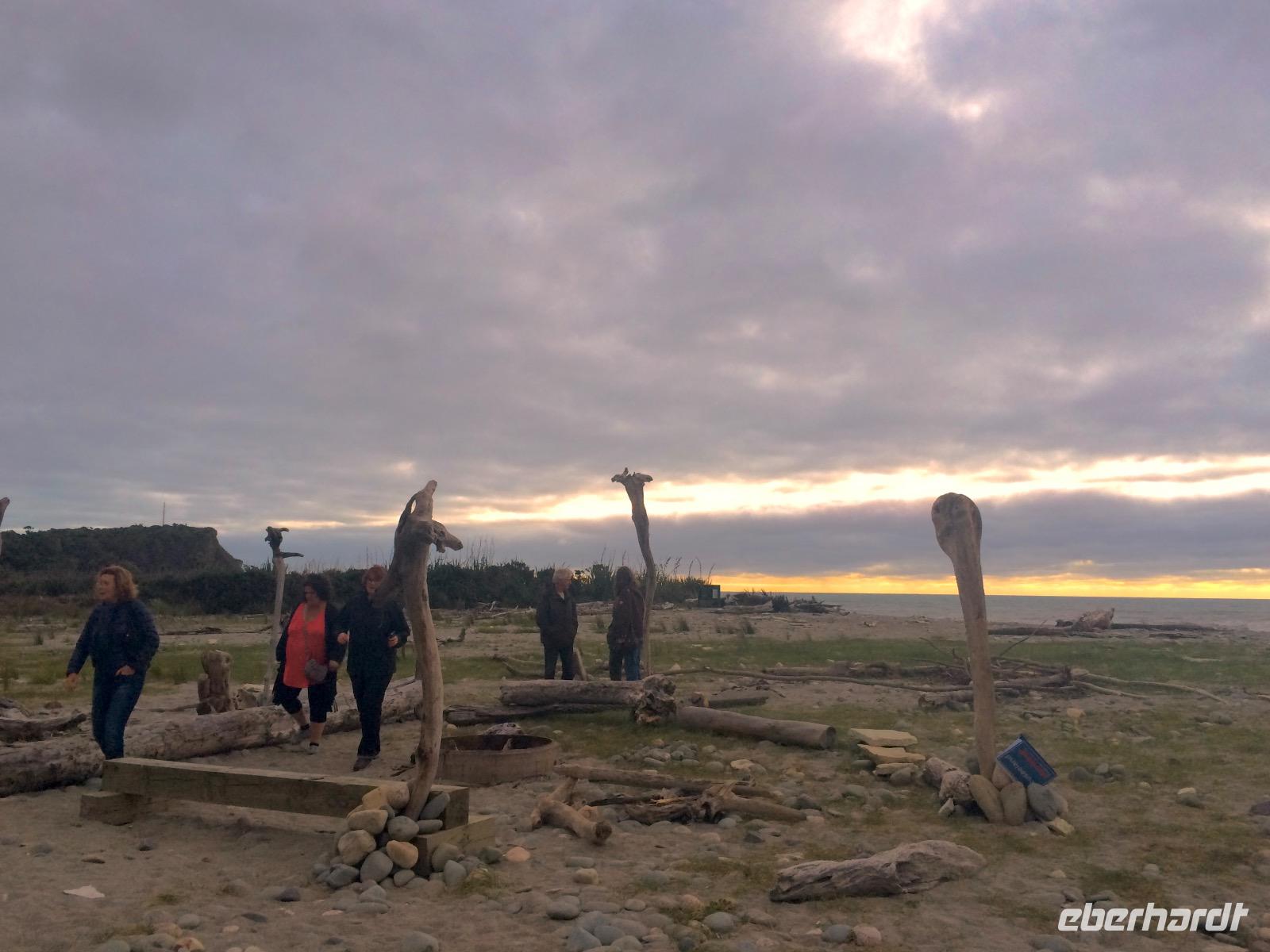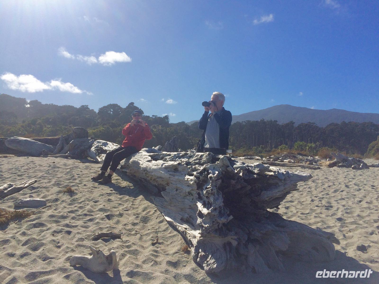 Voller Vorfreude sehen wir den neuen Tag entgegen. Wir begrüßen die aus Australien anreisenden Gäste und freuen uns auf die neue Gesellschaft. Neue Gesellschaft bekommen wir auch im Bus. Kurz vor dem Arthurs Pass hat ein Bus mit taiwanesischen Gästen eine Panne. Wir dürfen die Rolle der Retter spielen, denn in der unberechenbaren Natur Neuseelands kann so etwas jeden treffen, und nehmen die Gruppe mit nach Arthurs Pass. Hier begegnen wir zum ersten Mal einen frechen Kea. Wie klug und raffiniert diese einzigartigen Vögel sind, erklärt uns Gernot: sie beschädigen gern den Gummiring an den Autoscheiben, lassen sich auf Autodächern durch den Tunnel fahren, weil sie zu faul sind über den Berg zu fliegen und klauen Touristen öfter das Essen, wenn diese unbeeindruckt vom Kea wegschauen sollten. Sie sind die einzigen endemischen Tiere, welche sich gegen die Eingeführten durchsetzen können, eben aufgrund Ihrer Neugier und Lernfähigkeit. Am Nachmittag erreichen wir die sonnige Westküste zu den Pancake Rocks in Punakaiki. Hier hat die Natur wiederum ein kleines Wunderwerk vollbracht. Die Felsen sind wie Plinsen aufgeschichtet und bilden interessante Formationen. Ein Spazierweg führt durch einen Wald aus Neuseeland-Flax und Nikau-Palmen zu einigen schönen Aussichtspunkten. An die wilde Küste schmiegen sich die Berge mit einem grünen Teppich aus Südbuchen und Rata-Bäumen. Am Abend lernen wir uns in gemütlicher Runde zum Sonnenuntergang am Strand kennen. Nun werden wir sehen, ob wir alle gutes Karma besitzen und ob sich der weitläufige Ruf der regnerischen Westküste bewahrheitet... wir hoffen wie bisher auf gutes Wetter für die nächsten Tage.
