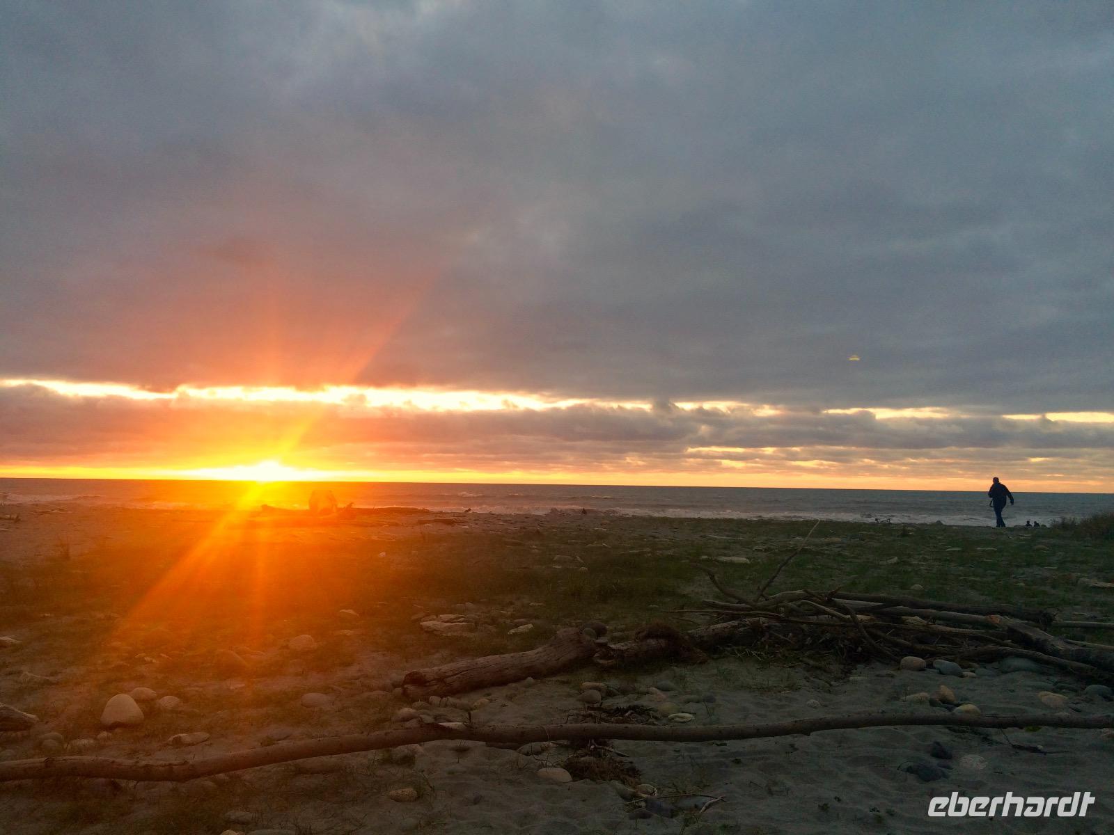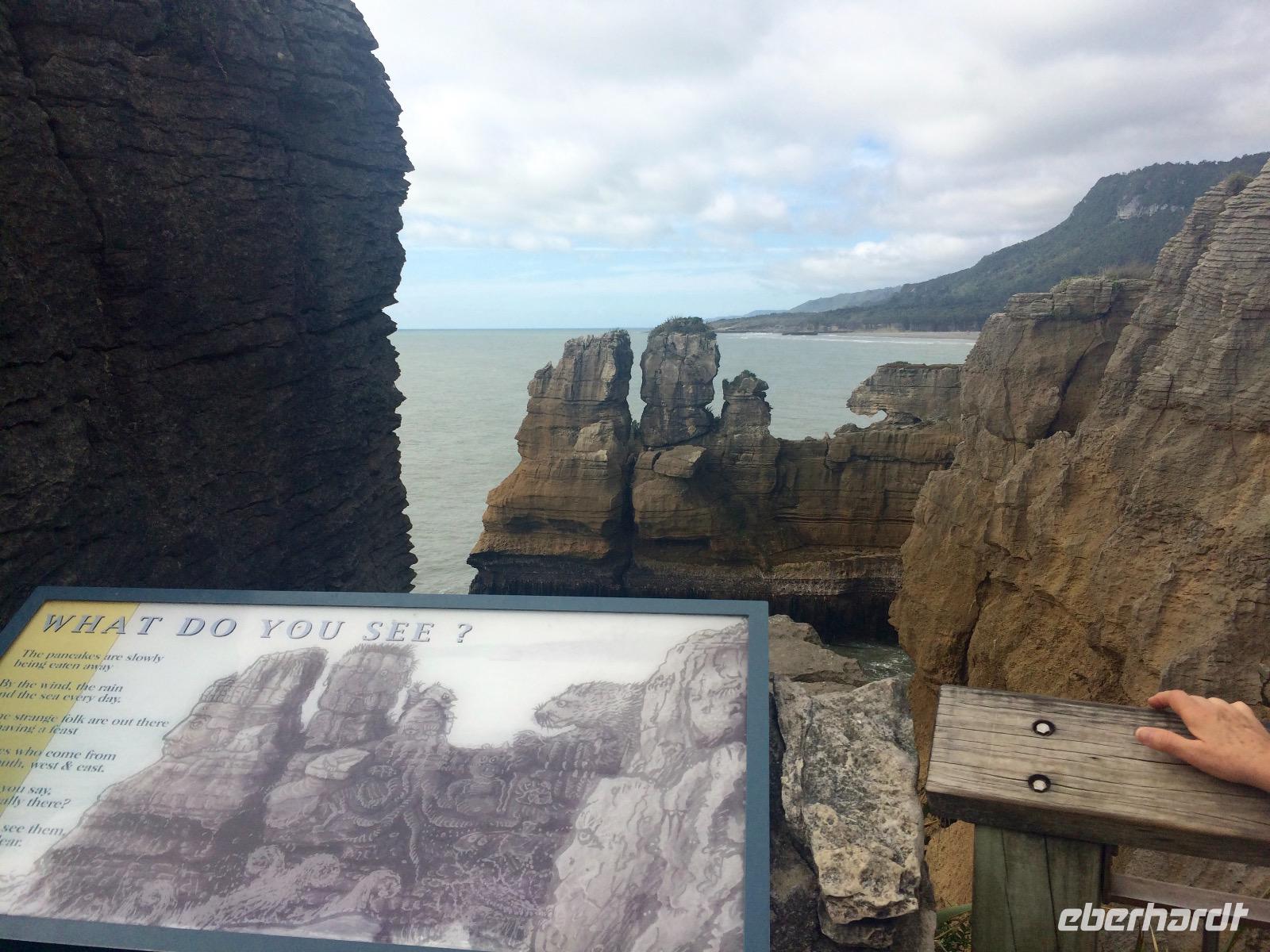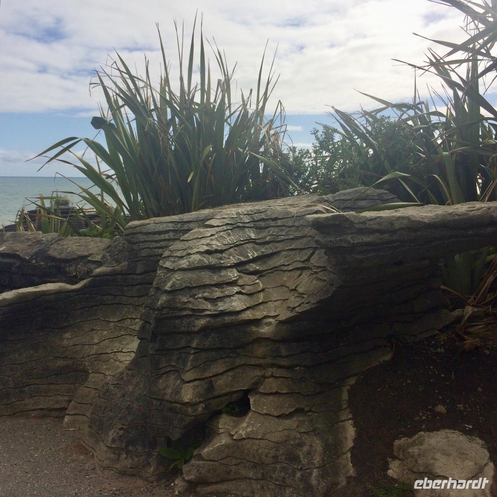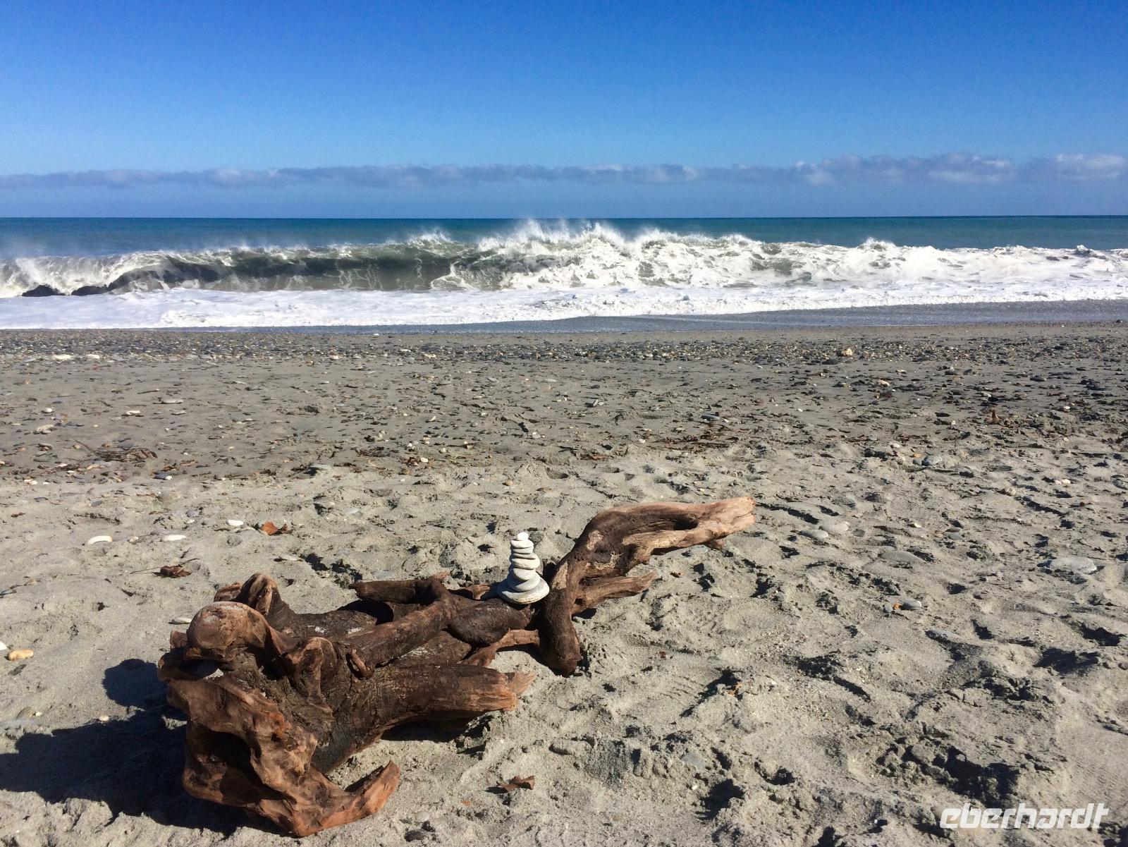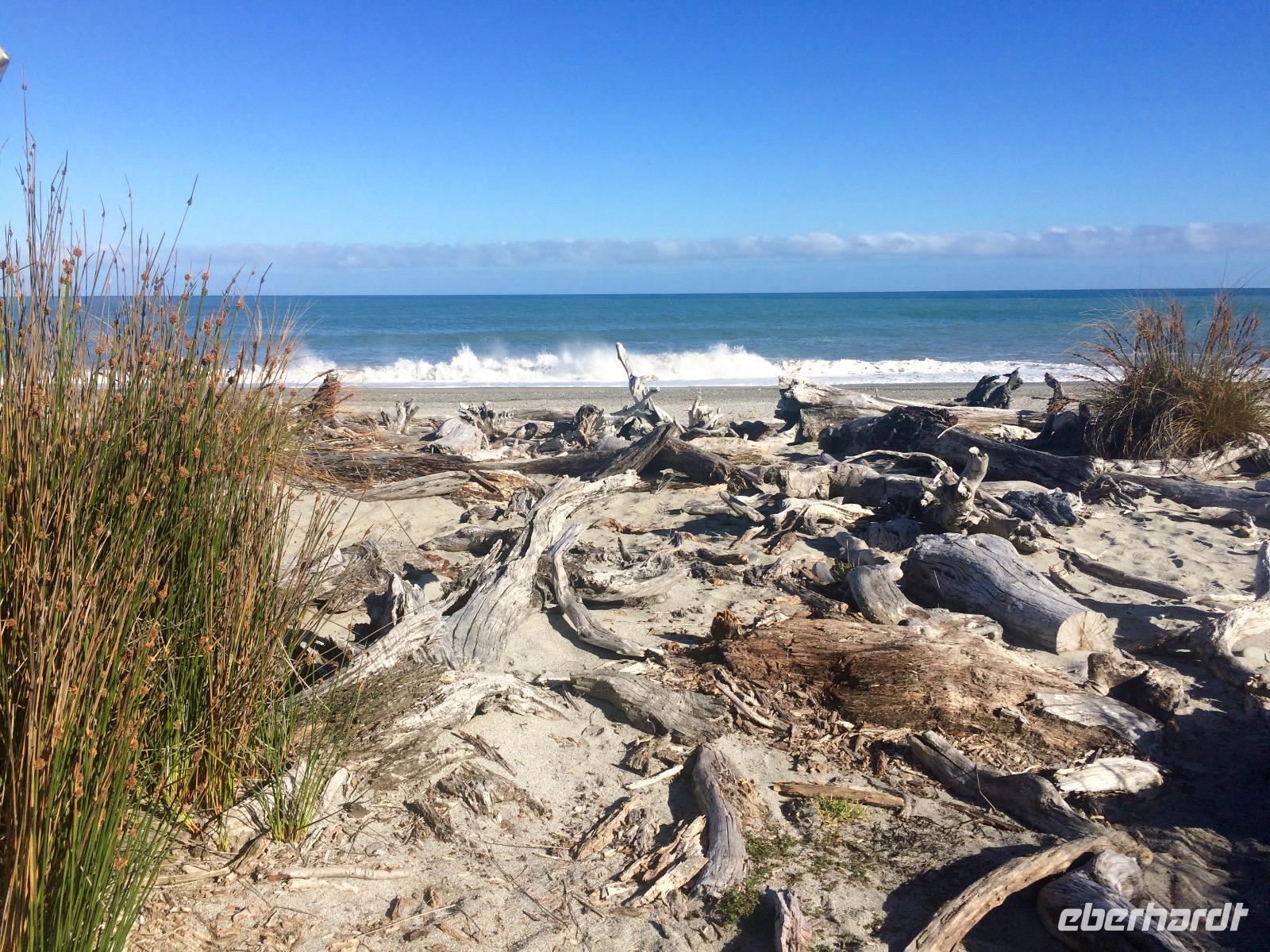 Voller Vorfreude sehen wir den neuen Tag entgegen. Wir begrüßen die aus Australien anreisenden Gäste und freuen uns auf die neue Gesellschaft. Neue Gesellschaft bekommen wir auch im Bus. Kurz vor dem Arthurs Pass hat ein Bus mit taiwanesischen Gästen eine Panne. Wir dürfen die Rolle der Retter spielen, denn in der unberechenbaren Natur Neuseelands kann so etwas jeden treffen, und nehmen die Gruppe mit nach Arthurs Pass. Hier begegnen wir zum ersten Mal einen frechen Kea. Wie klug und raffiniert diese einzigartigen Vögel sind, erklärt uns Gernot: sie beschädigen gern den Gummiring an den Autoscheiben, lassen sich auf Autodächern durch den Tunnel fahren, weil sie zu faul sind über den Berg zu fliegen und klauen Touristen öfter das Essen, wenn diese unbeeindruckt vom Kea wegschauen sollten. Sie sind die einzigen endemischen Tiere, welche sich gegen die Eingeführten durchsetzen können, eben aufgrund Ihrer Neugier und Lernfähigkeit. Am Nachmittag erreichen wir die sonnige Westküste zu den Pancake Rocks in Punakaiki. Hier hat die Natur wiederum ein kleines Wunderwerk vollbracht. Die Felsen sind wie Plinsen aufgeschichtet und bilden interessante Formationen. Ein Spazierweg führt durch einen Wald aus Neuseeland-Flax und Nikau-Palmen zu einigen schönen Aussichtspunkten. An die wilde Küste schmiegen sich die Berge mit einem grünen Teppich aus Südbuchen und Rata-Bäumen. Am Abend lernen wir uns in gemütlicher Runde zum Sonnenuntergang am Strand kennen. Nun werden wir sehen, ob wir alle gutes Karma besitzen und ob sich der weitläufige Ruf der regnerischen Westküste bewahrheitet... wir hoffen wie bisher auf gutes Wetter für die nächsten Tage.