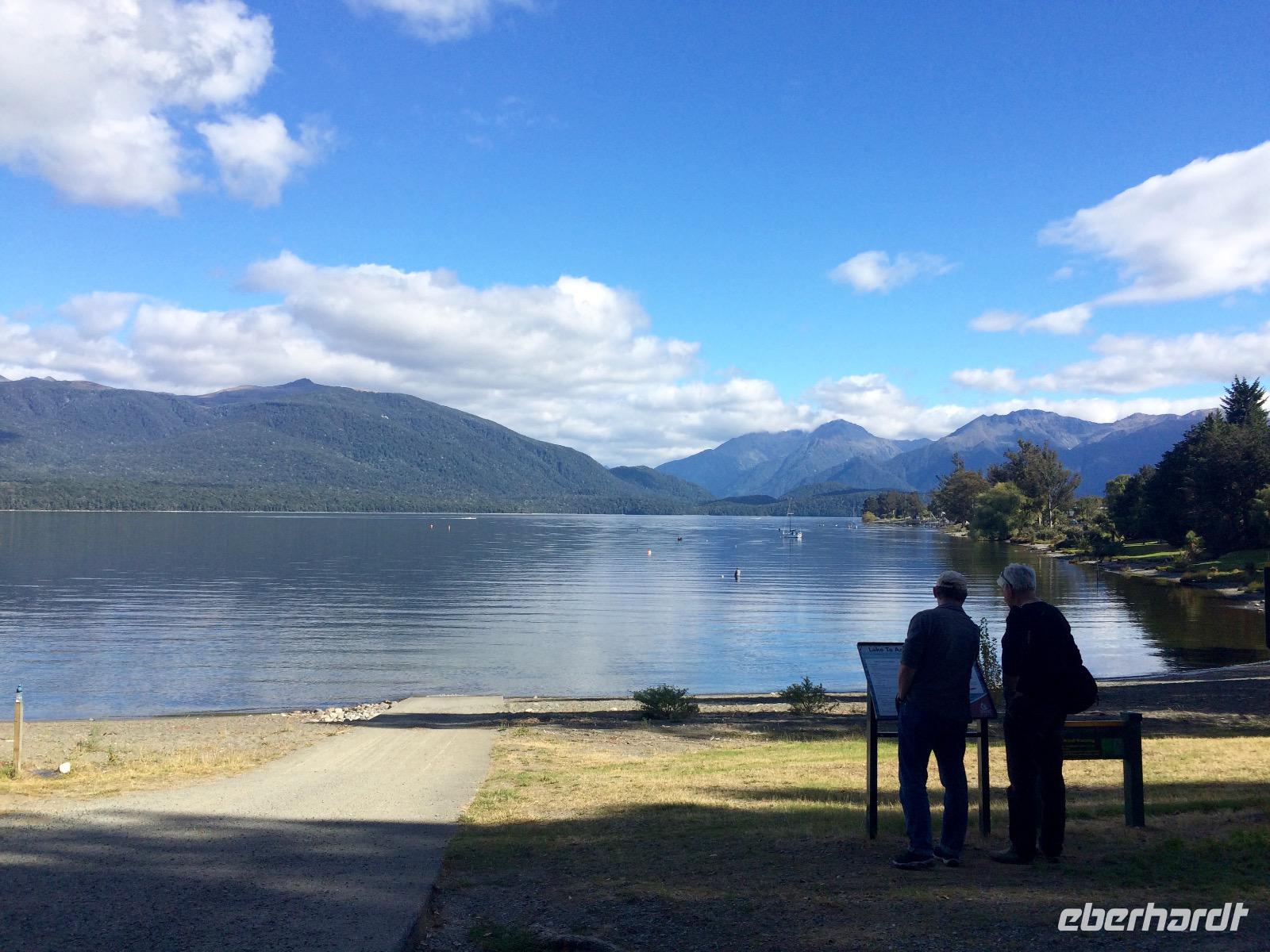 Die Sonne strahlt - ein perfekter Tag für Vogelbeobachtungen. Wir setzen unsere Reise fort nach Te Anau, dem Tor zum Fiordland-Nationalpark, dem größten des Landes. Als erstes statten wir den seltenen Takahe-Vögeln einen Besuch im Vogelpark ab. Die Vögel galten bereits als ausgestorben und man zählt heute einen Bestand von etwa 240 Tieren. Von den Control Gates laufen wir auf einem Teilstück des berühmten Kepler Track am Ufer des Lake Te Anau durch Südbuchenwald und staunen über die unendlichen Schattierungen von Grün. Der Wald wirkt fast märchenhaft mit all den Moosen, Farnen und Flechten. Vor lauter Genießen der Landschaft schrumpfte unsere Gruppe für einen Moment! Oh, Lizzy ist uns kurz abhandengekommen, denn die Papageien im Vogelpark haben es ihr angetan. Schließlich wendet sich alles doch zum Guten und wir finden einander wieder, auch wenn es heißt, sich von den Papageien zu verabschieden. Dafür wollen wir anderen Tieren auf der Weiterreise begegnen. Vom Lake Te Anau mit seiner umgebenden Gebirgskette, über die Milford Road, geht es entlang des Eglinton River durch das gleichnamige Tal in eine subalpine Wunderwelt. Nach den vergangenen regenreichen Tagen im Fiordland stürzen zahlreiche Wasserfälle von den Bergen hinab. Am Mirror Lake können wir die sich im Wasser spiegelnden Gipfel perfekt vor der Linse positionieren. Nach Überquerung des 45. Breitengrades folgen wir dem Hollyford River. Die Berge werden immer höher und die Wasserfälle dementsprechend umso beeindruckender. Hinter dem Homer-Tunnel ist der Milford Sound schon greifbar nah und wir erreichen entspannt unser schwimmendes Hotel für die Nacht, dem „Milford Mariner". Unterwegs durch den Fjord begleitet uns kurz eine Delfinfamilie. Woah! So nah waren wir Delfinen noch nie! Bei einem leckeren Abendessen klingen wir den Tag aus. Besuch von einem Seebären bekommen wir auch. Der sitzt entspannt auf der Treppe am Heck und lässt sich gar nicht von unserem staunenden Stöhnen stören. Auf jeden Fall war ER angetan, dass WIR ihm ein Fotoshooting zur späten Stunde noch gegeben haben. ...Posieren und Fotografieren natürlich! Für die Lang-Munter-Bleiber lohnt sich ein Blick in den Himmel zu werfen. Bei solch einem klaren Himmel sehen wir sogar die Milchstraße. Wow!