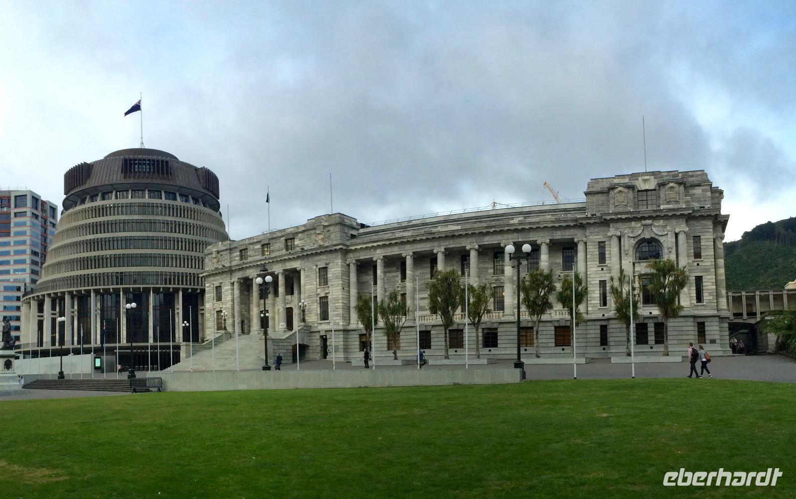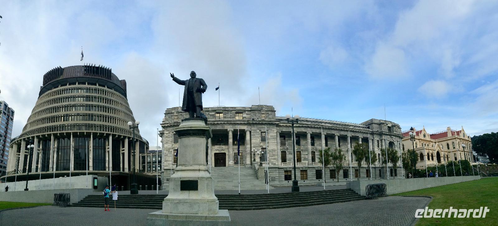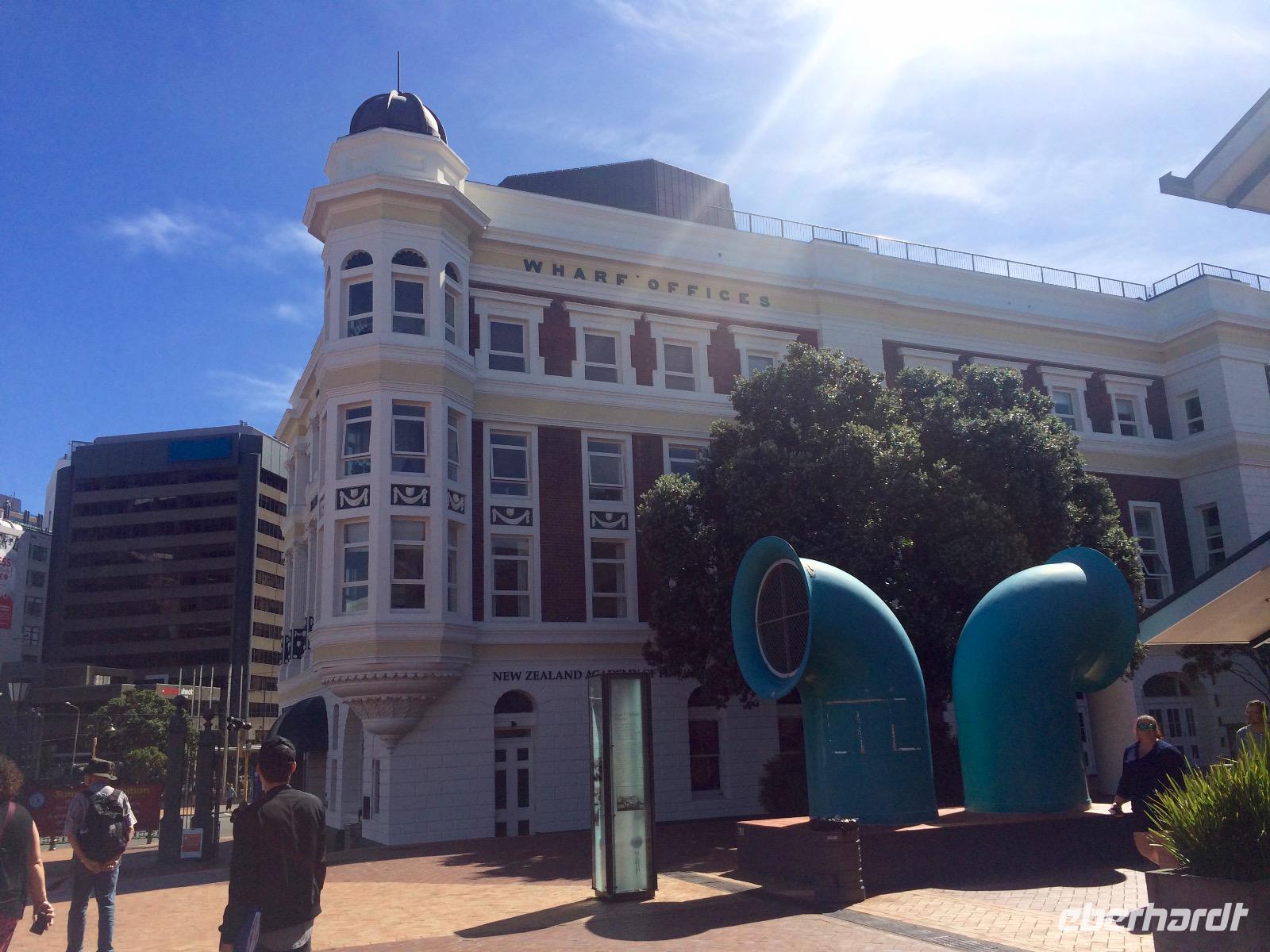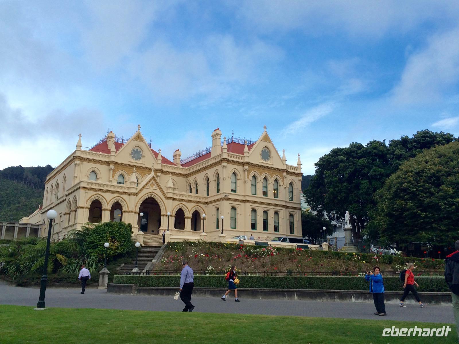 Am Morgen verabschieden wir uns mit einem weinenden und einem Lachenden Auge von Dave und der Südinsel. Es waren großartige Tage, doch wir freuen uns auch auf die spannende Nordinsel. Leider sind aufgrund von Erdbeben in Kaikoura vor einigen Wochen sowie Großflächenbrände vor wenigen Tagen die Bahngleise des TranzCoastal und TranzAlpine beschädigt, sodass wir Wellington nun per Flugzeug ansteuern. Dadurch gewinnen einen ganzen Tag in der Kiwi-Hauptstadt und nehmen uns die Zeit, die Stadt ausgiebig kennenzulernen. Unser neuer Chauffeur David heißt uns herzlich Willkommen in der Stadt, in der es am schwierigsten ist, mit einem Bus durchzufahren. Mein Cousin Hieu (zu Deutsch Treue) leistet uns Gesellschaft. Gemeinsam schlengeln wir durch schmale, vollbeparkte Gässchen den Berg rauf zum Victoria Peak und später zum Botanischen Garten. Ein paar kunstvolle Andenken auf der Haube nimmt David gleich auf den Rest der Reise mit, aber er bleibt gut gelaunt. Auf einer Rundfahrt durch die neuseeländische Hauptstadt sehen wir die Waterfront, die Parlamentsgebäude mit dem „Bienenkorb" und die St. Pauls Kirche, ein bedeutsames Kulturdenkmal und Beispiel gotischer Holzarchitektur von 1866. Es ist auffällig, dass Alt und Neu in Wellington oft unmittelbar nebeneinander liegen: moderne Hochhäuser neben schmucken viktorianischen Häuschen. Es bleibt Zeit, das schöne Tepapa-Naturkundemuseum zu besuchen, in dem viel Interessantes über die Maori und Natur Neuseelands vermittelt wird. Ein kleiner Film in einem DDR-ähnlichen Wohnstübchen veranschaulicht auf sympatischer Weise die Facetten Neuseelands. Wer mag, fährt mit der alten Standseilbahn hinauf, um noch einmal einen schönen Blick über das Hauptstädtchen mit gerade Mal 300.000 Einwohnern (dabei zählt man schon die äußeren Stadtteile mit) zu genießen. Immer wieder weht eine frische Brise um unsere Ohren und wir verstehen nun den Kosenamen der Stadt „Windy Welly".