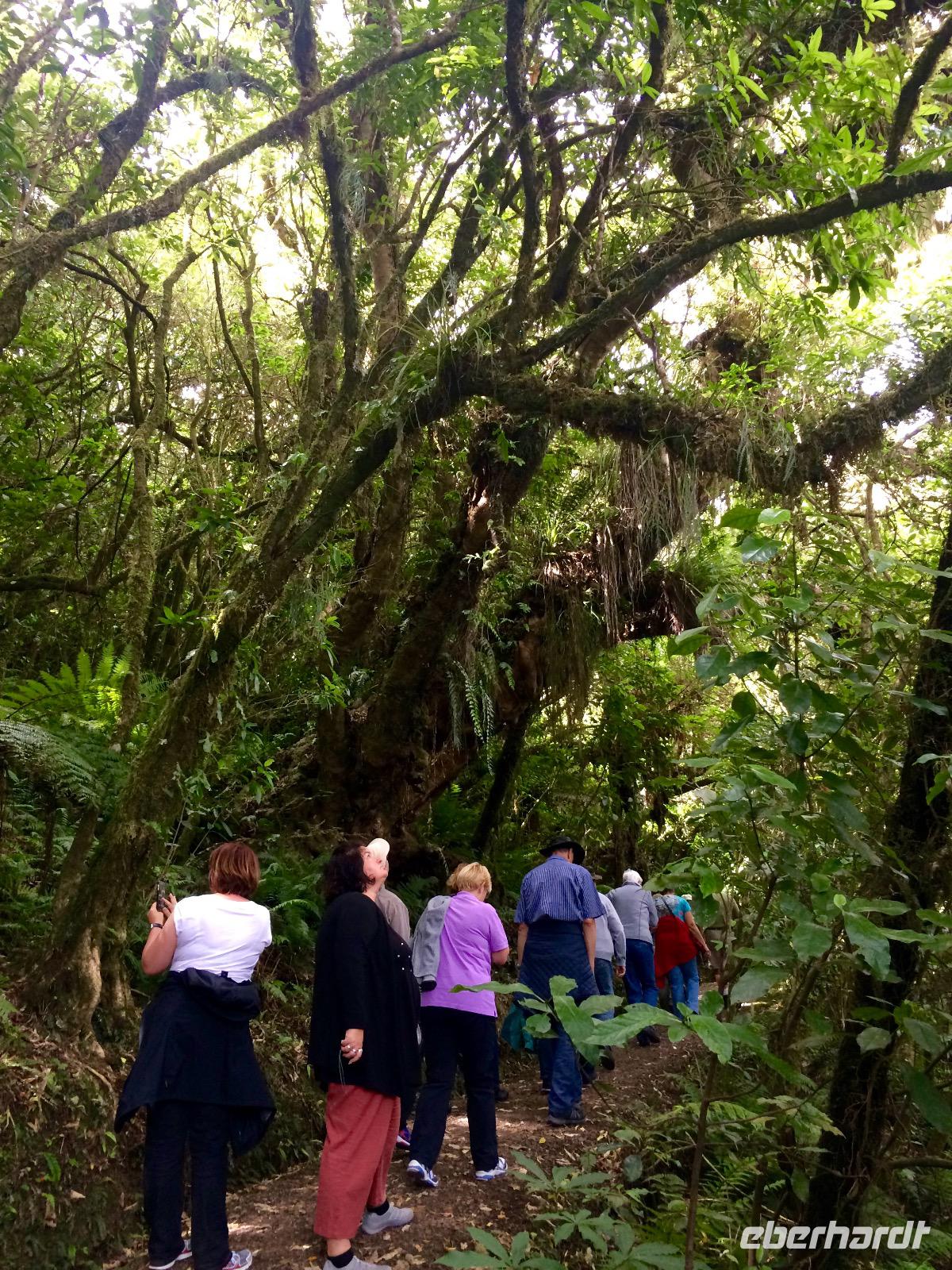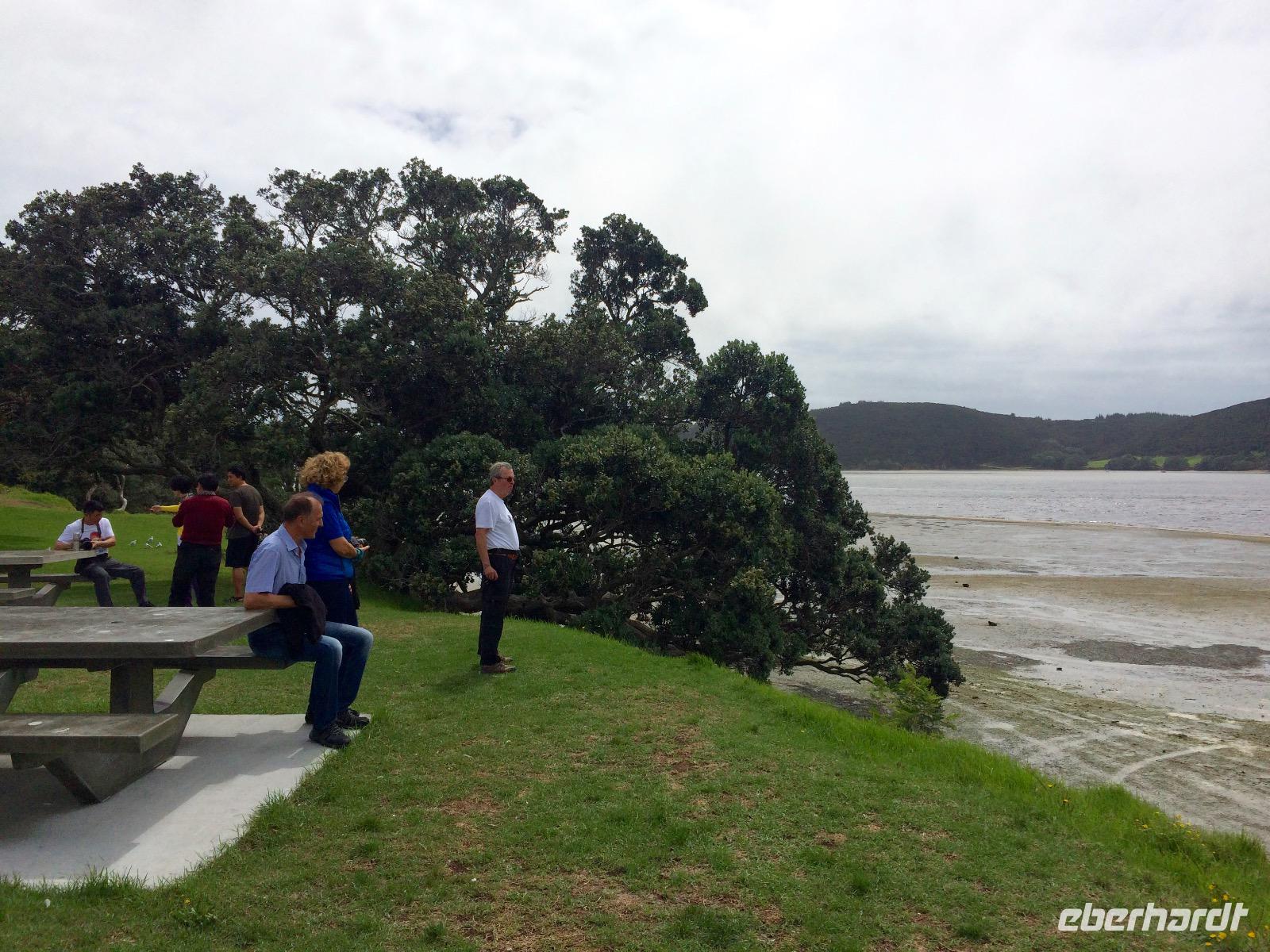Heute ist einer der wenigen längeren Fahrttage der Reise. Wir verlassen die Bay of Islands und fahren vorbei an großen Mangrovenfeldern und Auckland. Ein Blick auf den Hafen Aucklands gibt uns erste Eindrücke der Stadt der Segel. Statistisch gesehen besitzt jeder dritter Haushalt ein Boot. Wir lassen Auckland hinter uns und fahren gen Norden durch das „Rolling Hill Country", eine Landschaft aus „rollenden Hügeln" mit einem grünen Teppich aus Gras und Wald. Wir sehen die Kraft der Natur und wie unberechenbar sie sein kann. Aufgrund der hohen Niederschlagsmengen in den letzten Tagen sind Teile der Straßen überschwemmt, auch die Kühe stehen im Wasser und Bauern müssen ihre Kühe retten kommen.