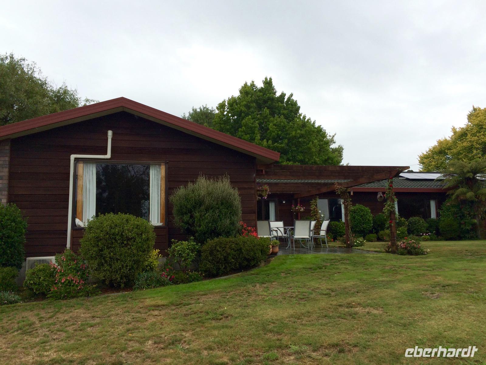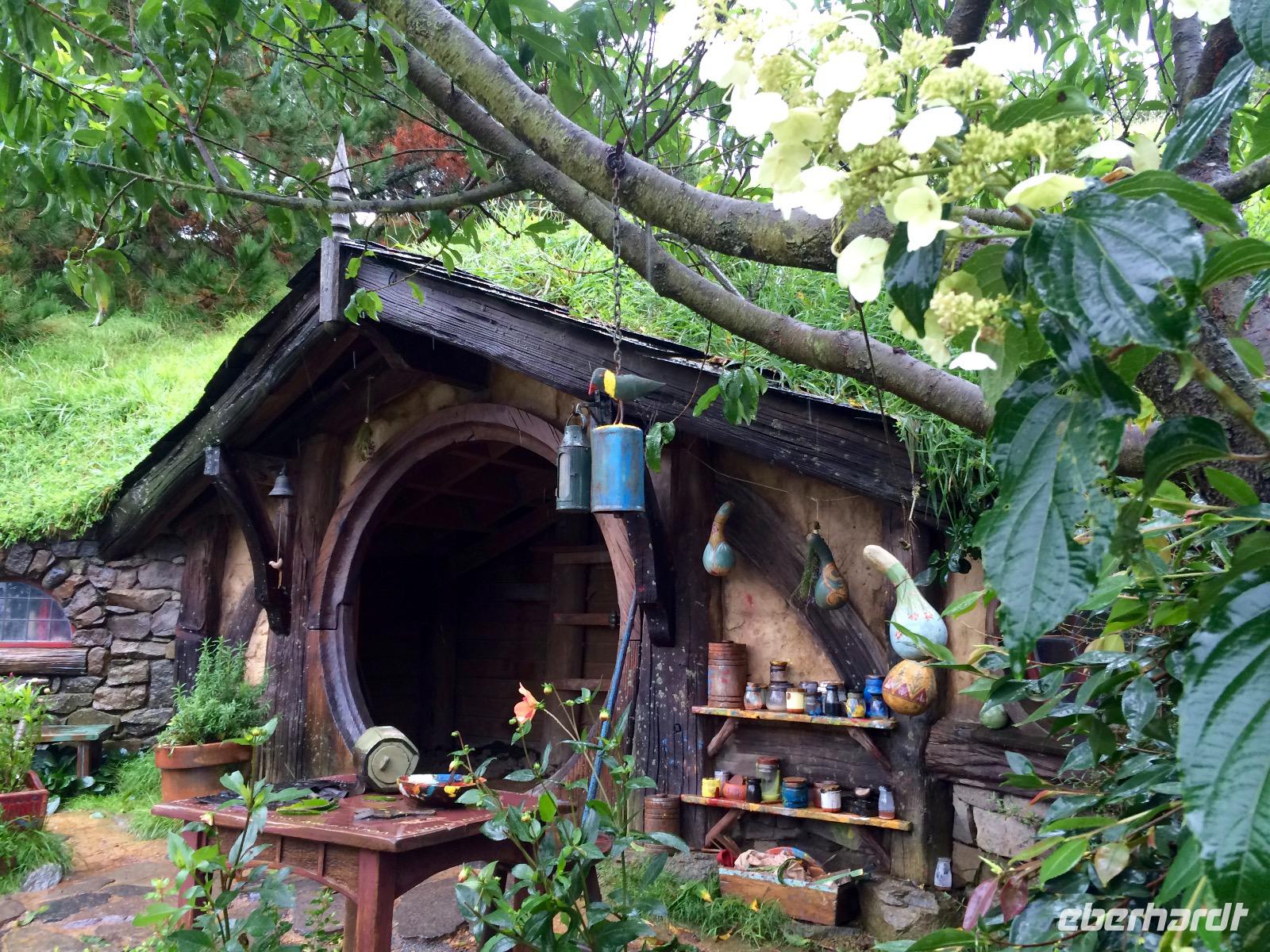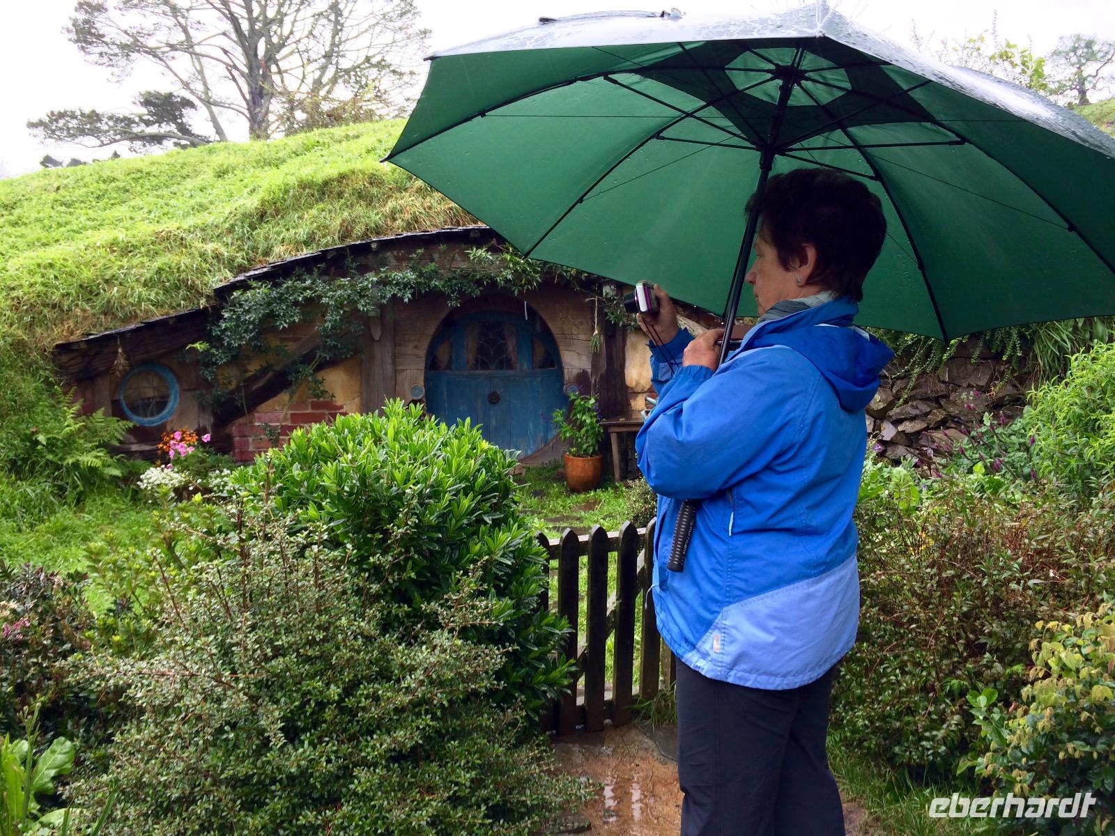 Alles Gute zum Frauentag, meine Damen! Der Himmel ist so froh uns zu haben, dass er den ganzen Vormittag Wasser als Symbol des Lebens und der Fruchtbarkeit über uns schüttet. So heißt es für die einen "Bleib-im-Bett-Tag" und für die anderen "Plitsch-Platsch-Pfützenspring-Tag" in Hobbiton. Auf der Fahrt ins Land der Hobbits bekommen wir einige Filmszenen vorgespielt und Busfahrer Danny verrät uns Interessantes zur Entstehung des Filmsets. Die Anlage aus kleinen grünen Hügeln mit den hübschen Hobbithäuschen ist beeindrucken groß und dennoch legte man so viel Wert auf die Liebe zum Detail. Alles ist großzügig und üppig bepflanzt mit kleinsten Blüten, größten Bäumen, Sträuchern mit seltsamen Früchten und bunten Blumenbeeten. Dieses Filmset wirkt wie ein lebendiges, idyllisches Dörfchen und lädt wirklich zum Verweilen ein.„Kiwi" hat in Neuseeland ja dreierlei Bedeutung: zum einen die leckere Kiwi-Frucht, zum anderen den flugunfähigen putzigen Vogel, der sich zum Nationalvogel des Landes gemausert hat und last but not least bezeichnen sich die Neuseeländer selbst als Kiwis. Also freuen wir uns heute auf die Begegnung mit dem Kiwivogel im Rainbow Springs Park bevor wir nach Cambridge fahren, um die Kiwi-Menschen zu treffen. Heute Abend wird die Reisegruppe in fünf verschiedene neuseeländische Familien untergebracht. Die netten Gastgeber führen uns durch ihr Anwesen, manche besitzen Kühe, Schafe, Pferde oder Alpacas. Während der Zeit bei den Familien lernen wir das echte, alltägliche Leben der Kiwis kennen und bekommen Antworten auf Fragen, die uns schon lange auf den Nägeln brennen.