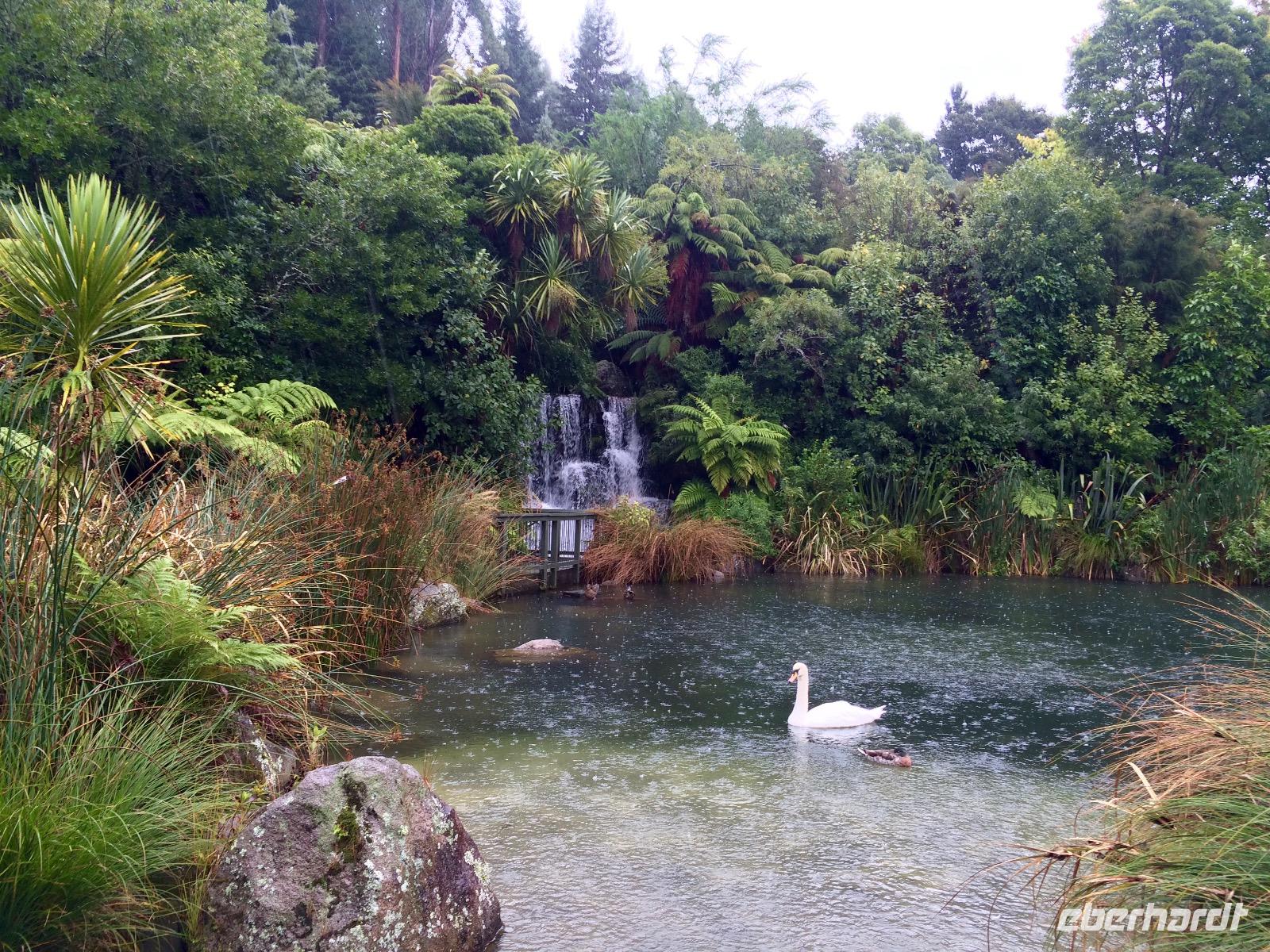 Der Regen hat zwar in Cambridge nachgelassen, aber auf der Coromandelhalbinsel gibt es Überschwemmungen und die Straßen in und aus der Region sind gesperrt. Aus diesem Grund können wir unsere Reise nicht so wie geplant durchführen, aber wir sind dankbar, dass wir nicht in dem Überschwemmungsgebiet feststecken. So fahren wir zur Sonnenseite an die Westküste nach Raglan, dem Surferparadis. Am Nachmittag bleibt etwas Zeit, um die berühmten Hamilton Gardens mit dem Indischen, Chinesischen, Japanischen Steingarten oder Englischen Garten zu spazieren.