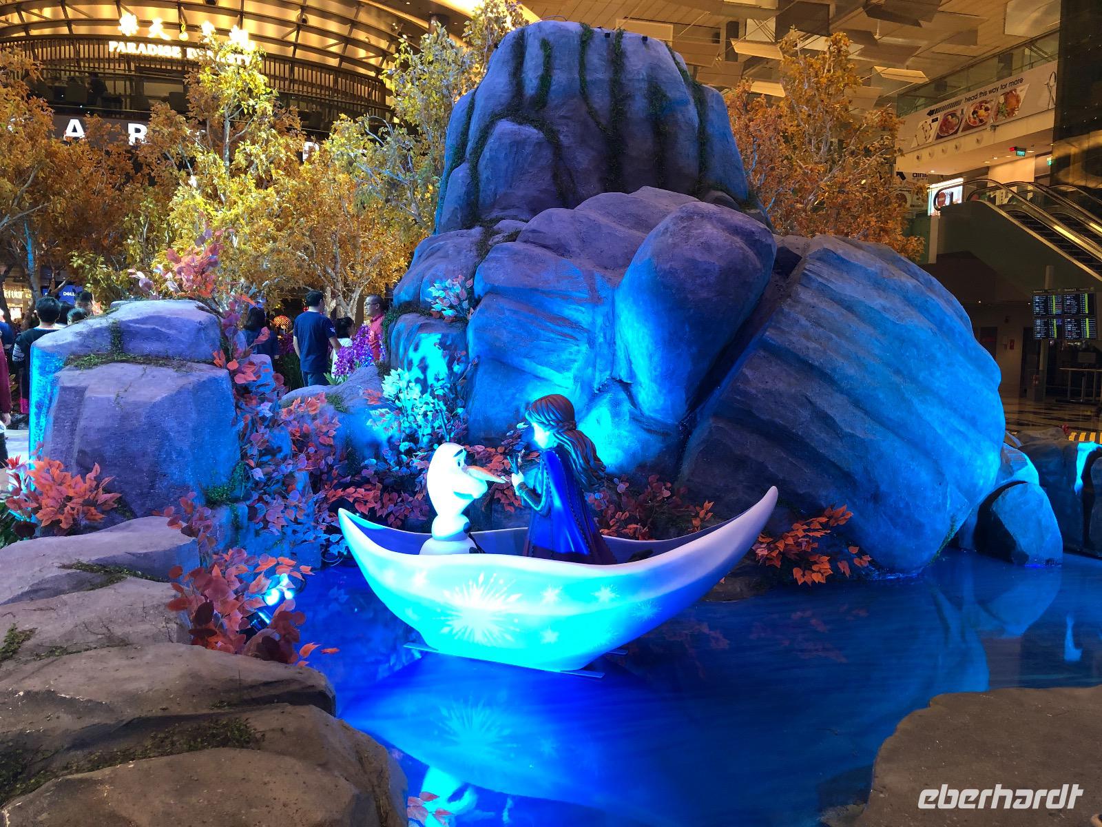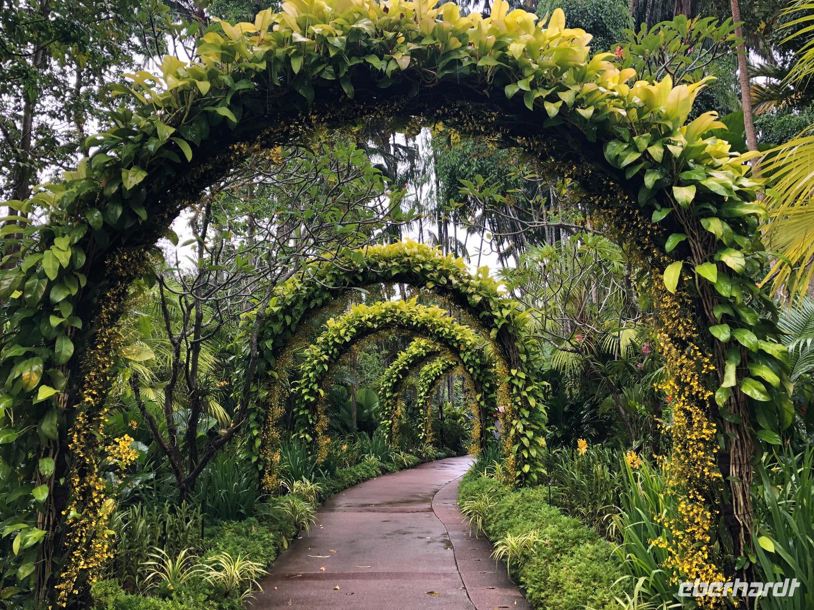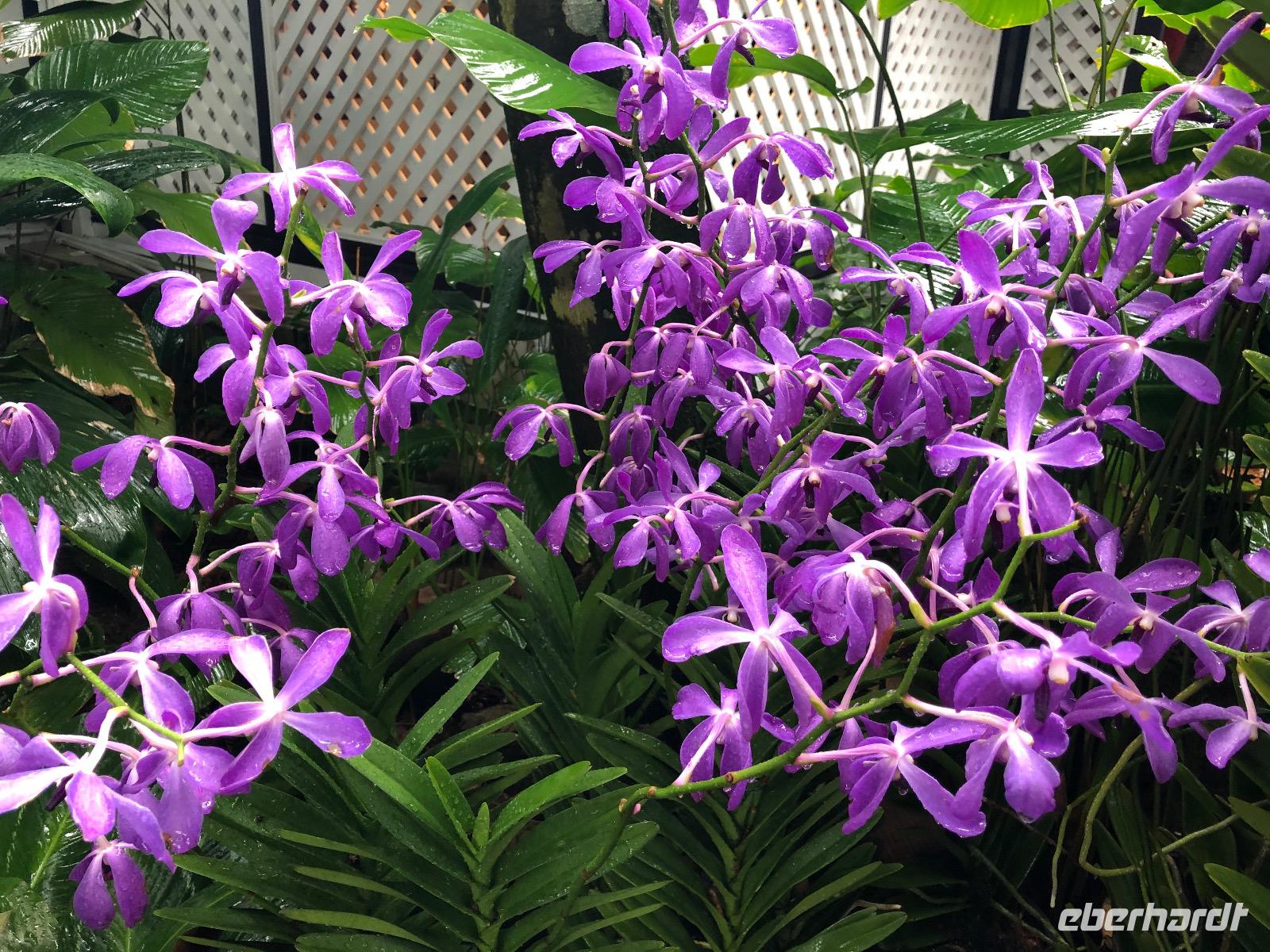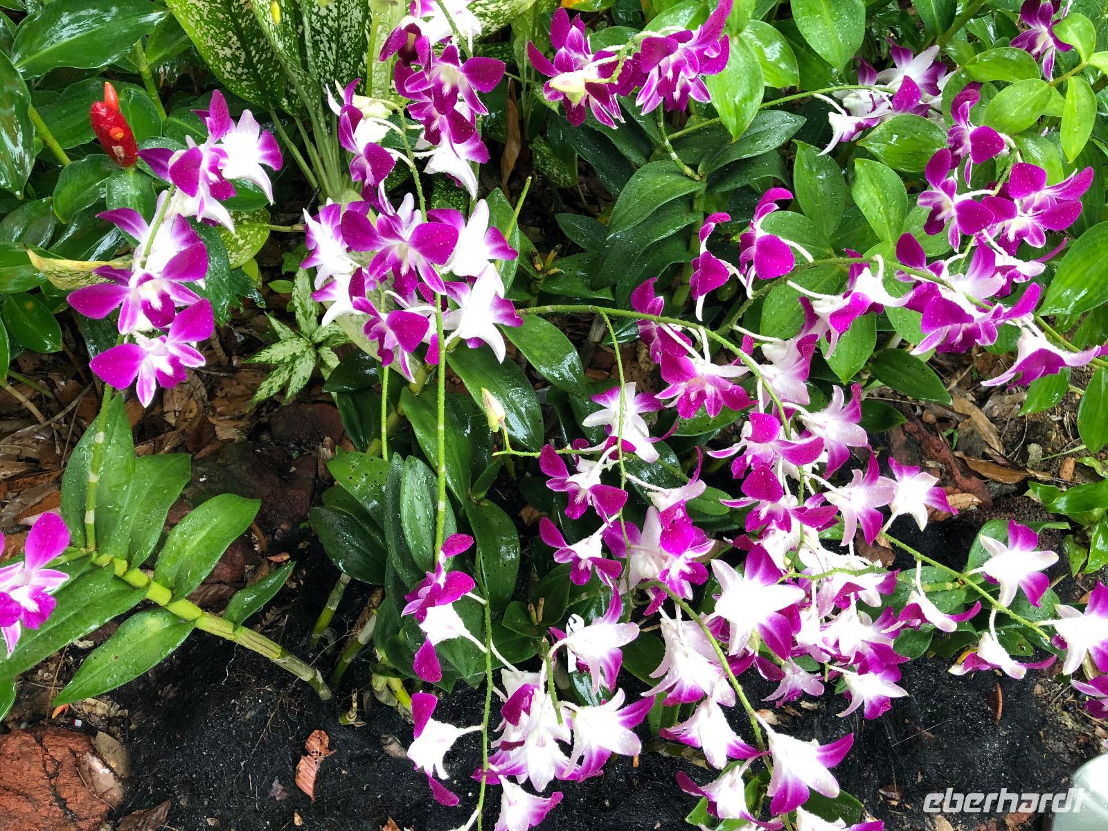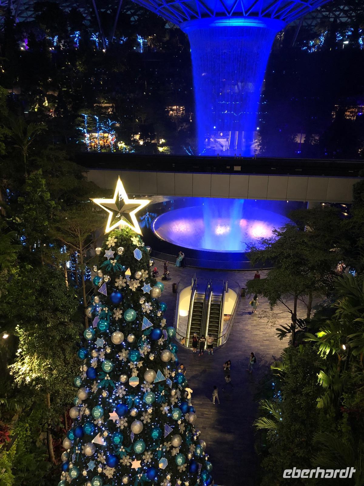 Wir fahren zum Botanischen Garten. Gut beschirmt, weil es immer noch regnet, erfreuen wir uns an der Blütenpracht. Mit dem Bus durchqueren wir die Orchardroad, eine Einkaufsstraße mit teuren Markenläden. Der erste Weihnachtsschmuck ist schon aufgehängt.