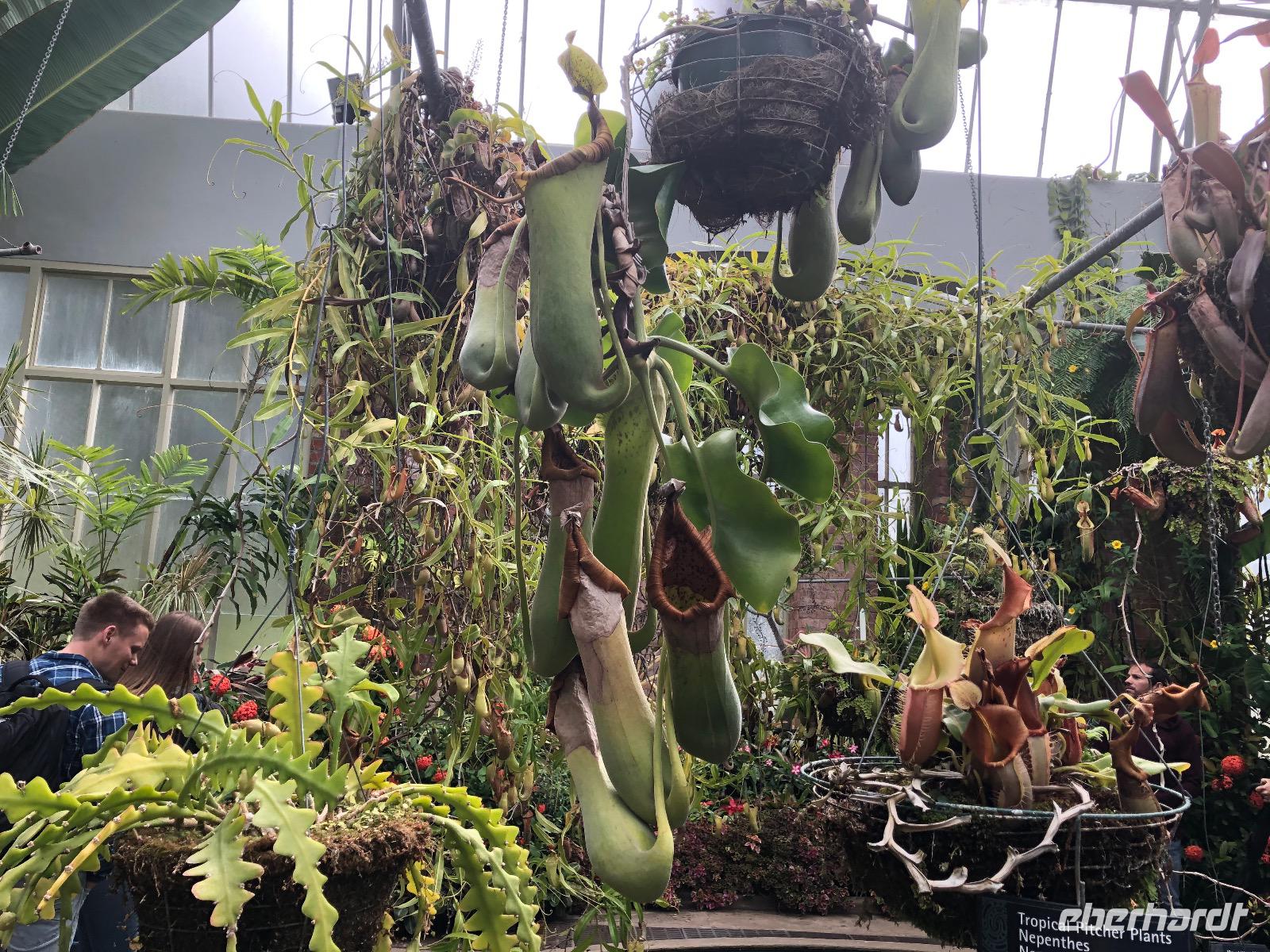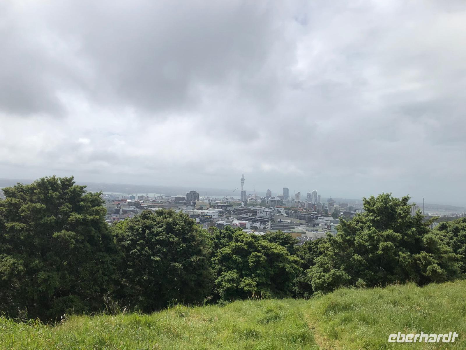 Unser Guide vor Ort ist Gernot und er empfängt uns am Ausgang. Dylan ist unser Fahrer für die nächsten siebzehn Tage. Auf dem Weg ins Hotel legen wir drei Stopps ein. Wir werfen einen Blick auf Auckland von oben, vom Mount Eden, der mit 196 Metern die höchste Erhebung der Stadt bildet. Nach einem kurzen Stopp am Hafen besuchen wir den Wintergarten der Auckland Domain mit zauberhaft bunten Blumen. Rot, gelb, weiß und blau, eine Farbexplosion überrascht uns im Gewächshaus. Auch die Größe der Blumen und Pflanzen ist überraschend. Der Wintergarten ist ein Teil der Auckland Domain, welcher einer der größten öffentlichen Parks in Auckland ist.