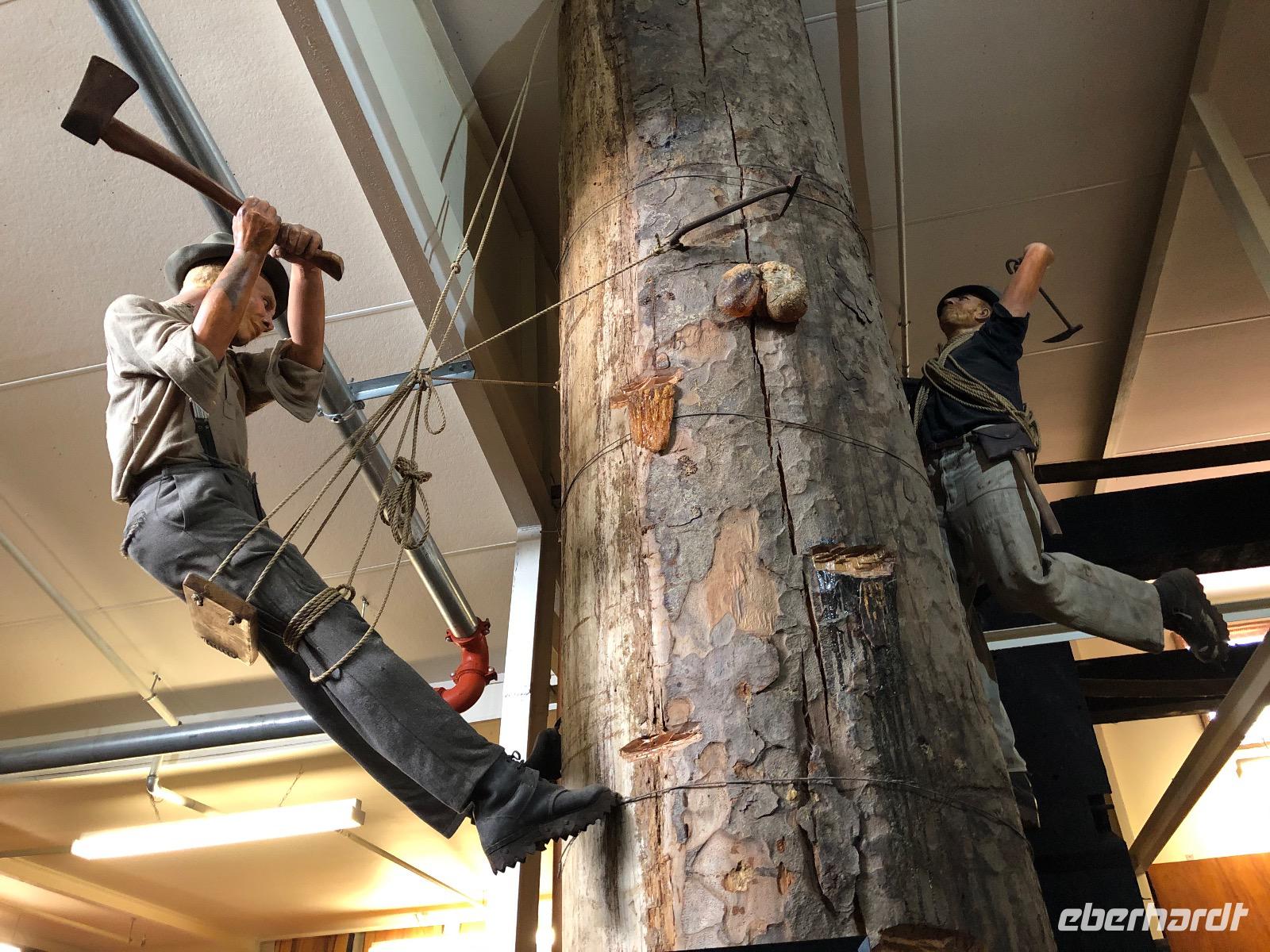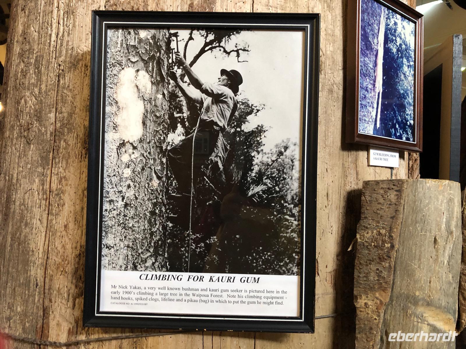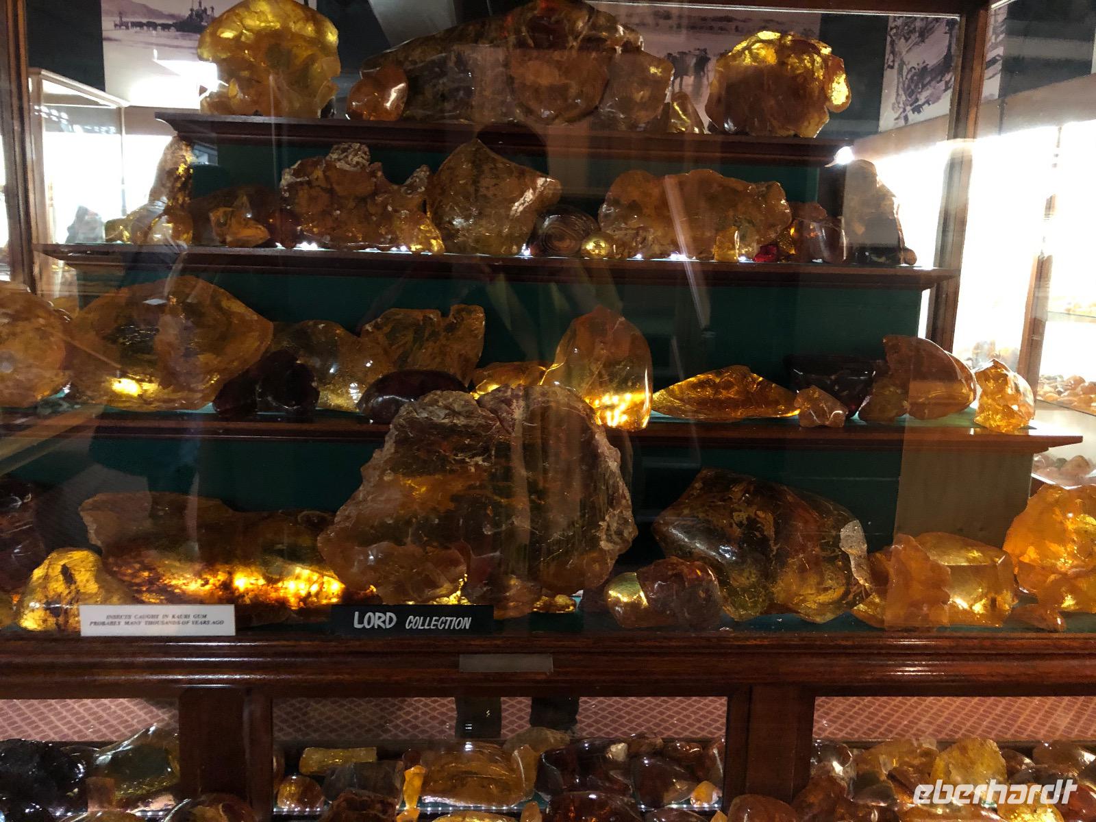 Gegen Mittag erreichen wir das Kauri Museum. Hier dreht sich alles um Holz, denn der Kauribaum ist der größte Baum in Neuseeland und sein Holz war sehr begehrt. Unglaublich dick und groß wuchsen diese Bäume. Die allergrößten sind jedoch bei einem Brand verloren gegangen. Im Museum wird über die Abholzung der Kauribäume berichtet. Anschaulich wird auch das Leben der ersten Siedler und Holzfäller dargestellt. Im Untergeschoss des Museums befindet sich eine der größten Bernsteinsammlungen der Welt. Auf dem Museumsgelände können wir außerdem eine Post, eine Schule und eine Kirche aus der Zeit der ersten Besiedelung anschauen. In einem gemütlichen Café versorgen wir uns je nach Bedarf mit warmen oder kalten Speisen und der Kaffee schmeckt auch.