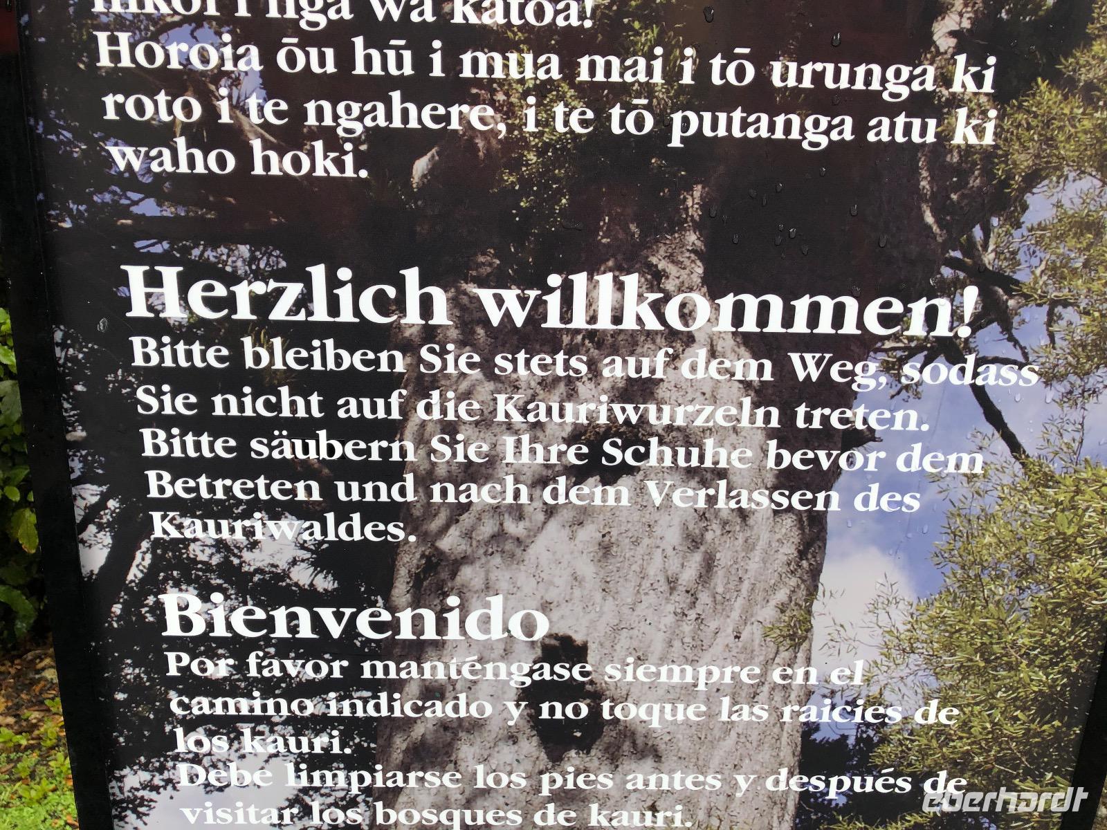 Am Nachmittag erreichen wir Waipoua, wo wir den Kauri Forrest (Kauri Wald) besuchen. Um den mit zweitausend Jahren ältesten Kauri Baum zu sehen, müssen wir zunächst unsere Schuhe desinfizieren. Die Kauri Bäume sind von der Wurzelfäule betroffen und vom Aussterben bedroht. Wir laufen auf einem fest angelegten Weg durch den Regenwald bis wir plötzlich vor Tane Mahuta stehen. Er wird auch GOTT DES WALDES genannt. Dieser Baum spielt eine wichtige Rolle in der Mythologie der Maoris. Er hat nach ihrem Glauben zwischen Himmel und Erde Licht und Raum gebracht und die Luft zum Atmen. Tane Mahuta ist mehr als tausend Jahre alt. Er war schon so gewaltig als 1769 James Cook die Nordinsel Neuseelands entdeckte. Ein Kauri kann bis zu viertausend Jahre alt werden, der älteste Kauri Baum, den es heute noch gibt, wird auf zweitausend Jahre geschätzt. Im 19. Jahrhundert wurden viele Kauri Bäume abgeholzt und für den Bau von Booten und Häusern benutzt. Heute stehen die Bäume unter Naturschutz. Nur die sogenannten Sumpf Kauris, die in den letzten 50.000 Jahren im Morast versunken und vermodert sind, dürfen geborgen und verarbeitet werden. Aus diesem hochwertigen Holz entstehen zum Beispiel Designer Möbel oder Musikinstrumente.