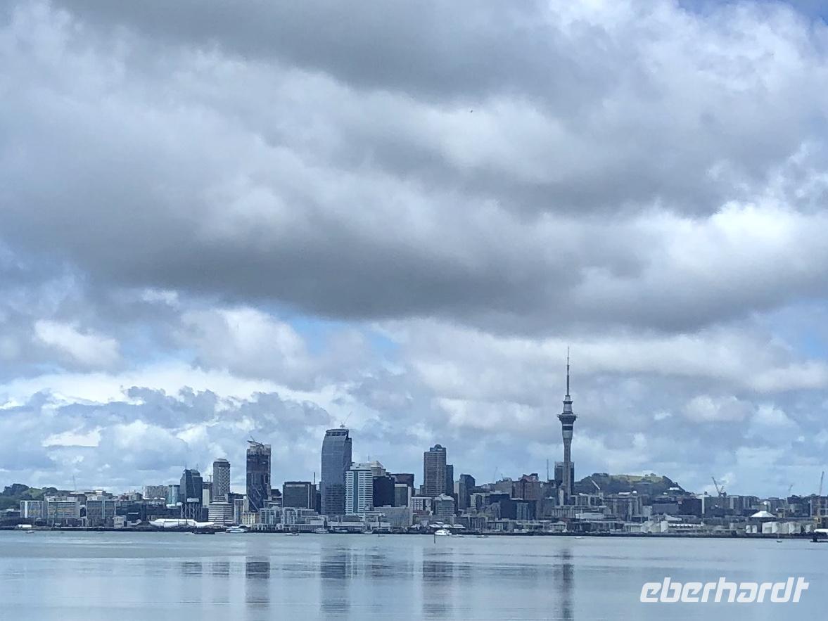 Mittags erreichen wir Auckland. Ein Teil der Gruppe fährt mit einem Schiff, um die Skyline von Auckland anzuschauen, die anderen bummeln auf der Queensstreet durch teure Läden oder fahren auf den Fernsehturm.