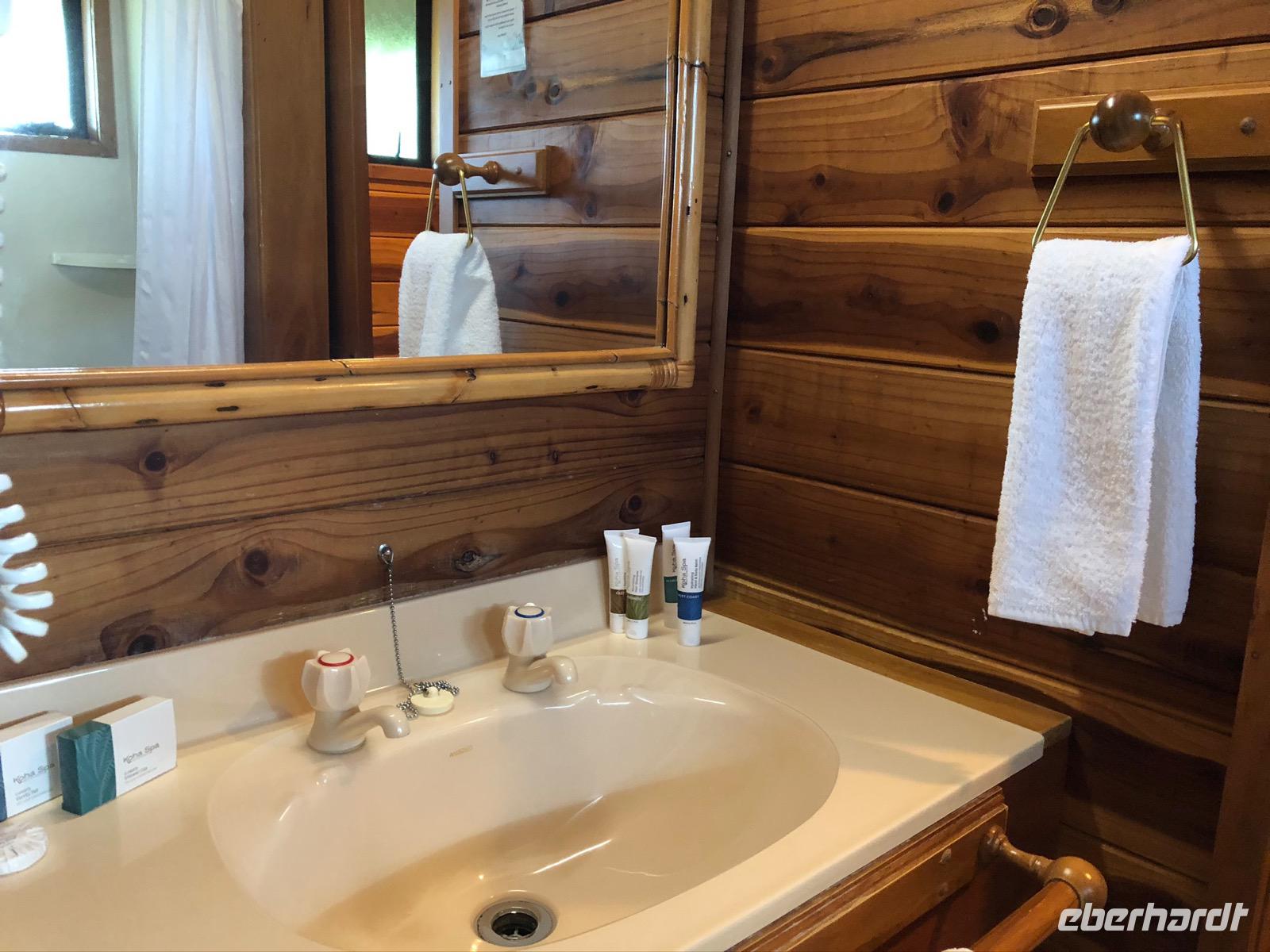 Ein gemütliches Hotel, dass zum länger Bleiben einlädt, aber wir haben nur eine Nacht. Das Haus wurde von seinem Besitzer, einem Zimmermann, selbst gebaut. Alles ist aus Holz und wirkt warm und gemütlich. Zum Abendessen gibt es eine schmackhafte Pilzsuppe, zum Hauptgericht haben wir die Wahl zwischen Steak, Fisch und Nudeln.
