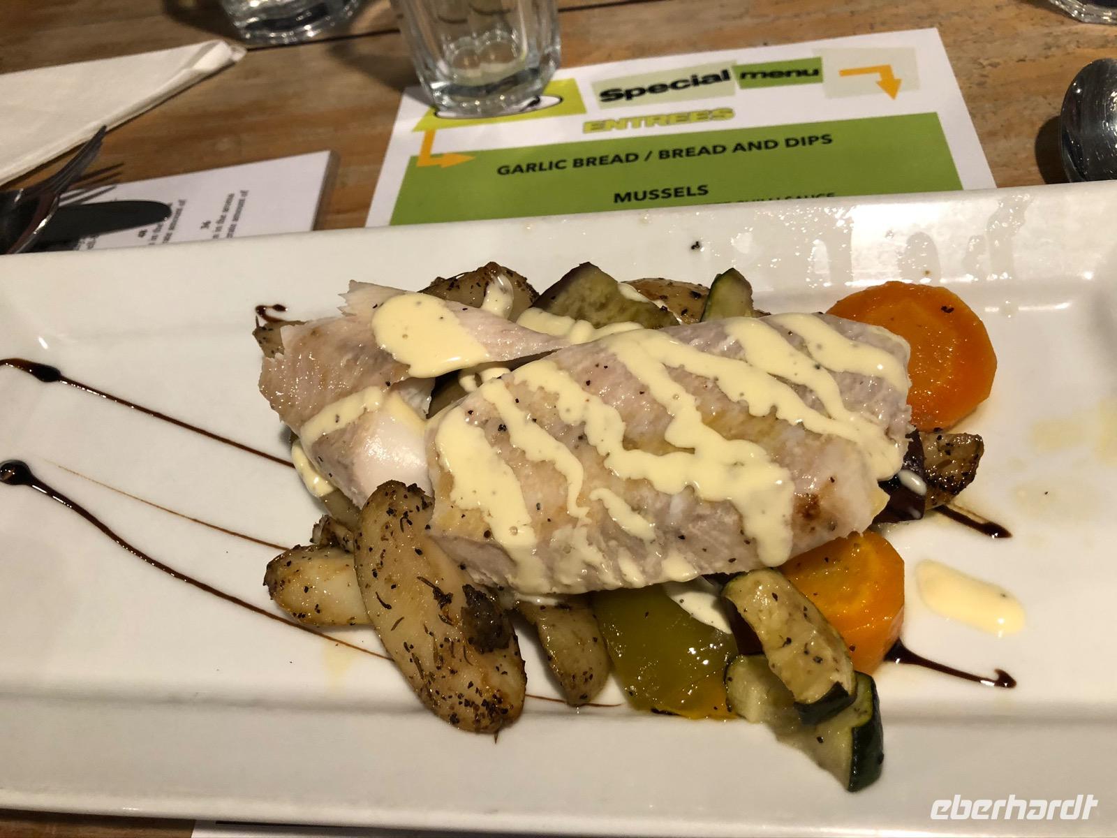 Das Abendessen nehmen wir heute im benachbarten Hilton Hotel ein, wo der Name Programm ist, es schmeckt fantastisch.