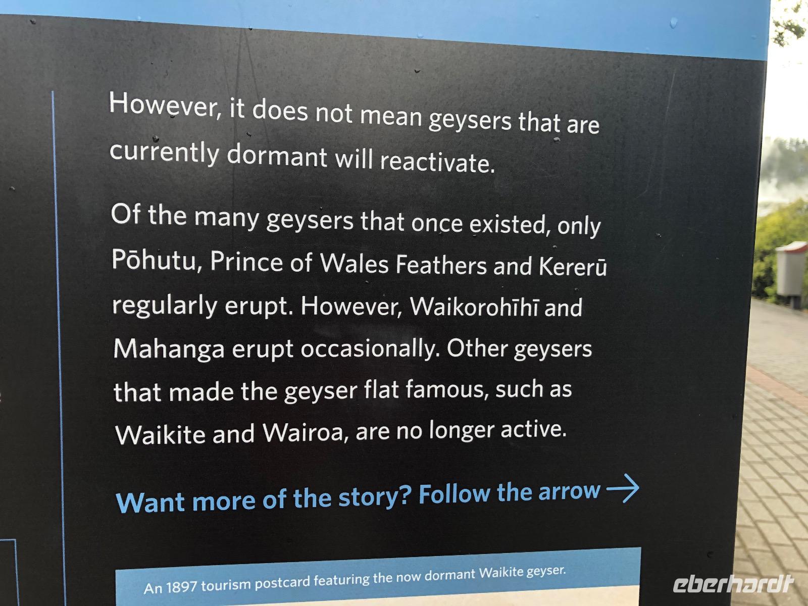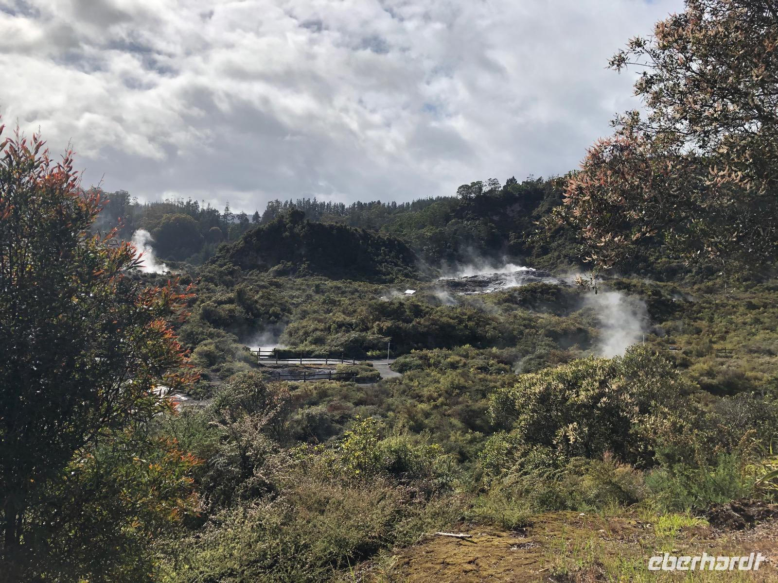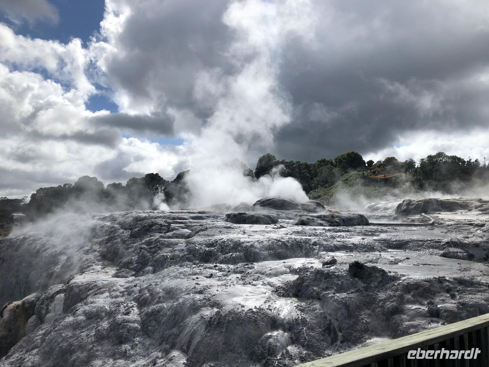 Vormittags besuchen wir Te Pula, ein Kulturzentrum der Maori. Hier besichtigen wir ein Maorihaus und eine Kiwi Aufzuchtstation. Weiter führt uns ein Spaziergang zum Geysir Pohutu, dessen Fontäne bis zu dreißig Metern hoch schießen kann.
