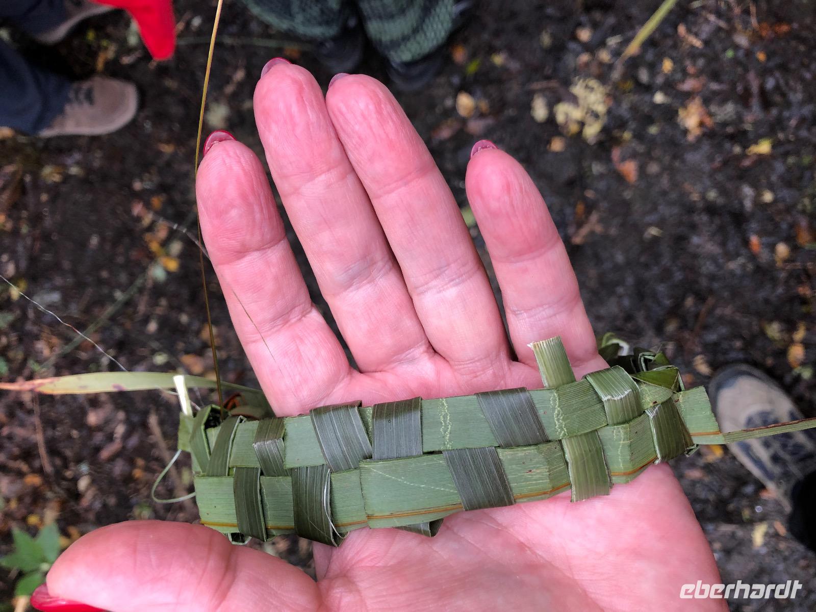 Wir unternehmen eine Wanderung mit einer Maori Familie. Shelly ist unser Guide, ihr Vater und ihr Freund begleiten uns. Durch den Dschungel geht es zunächst bergauf. Shelly und ihr Vater erklären Pflanzen und Bäume. Nach einer Stunde erreichen wir einen See, wo uns Shelly zeigt, wie man aus Palmenblättern Armreifen flechten kann. Die Maori- Männer bereiten derweil ein Picknick vor. Shelly hat zum ersten Mal in ihrem Leben ein Brot gebacken, das sie uns nun stolz präsentiert. Ihr Vater war angeln und hat frisch geräucherten Fisch mitgebracht. Außerdem reichen sie uns Obst und Nüsse und einen speziellen Tee. Es ist kalt und windig und es regnet, so sind wir doch froh, als es wieder zurück geht. Der Rückweg soll zu innerer Einkehr anregen. Wir laufen im Gänsemarsch immer drei, vier Meter Abstand haltend. Am Bus verabschiedet uns Shellys Vater mit einem Gebet und wir uns mit dem Lied „Horch, was kommt von draußen rein".