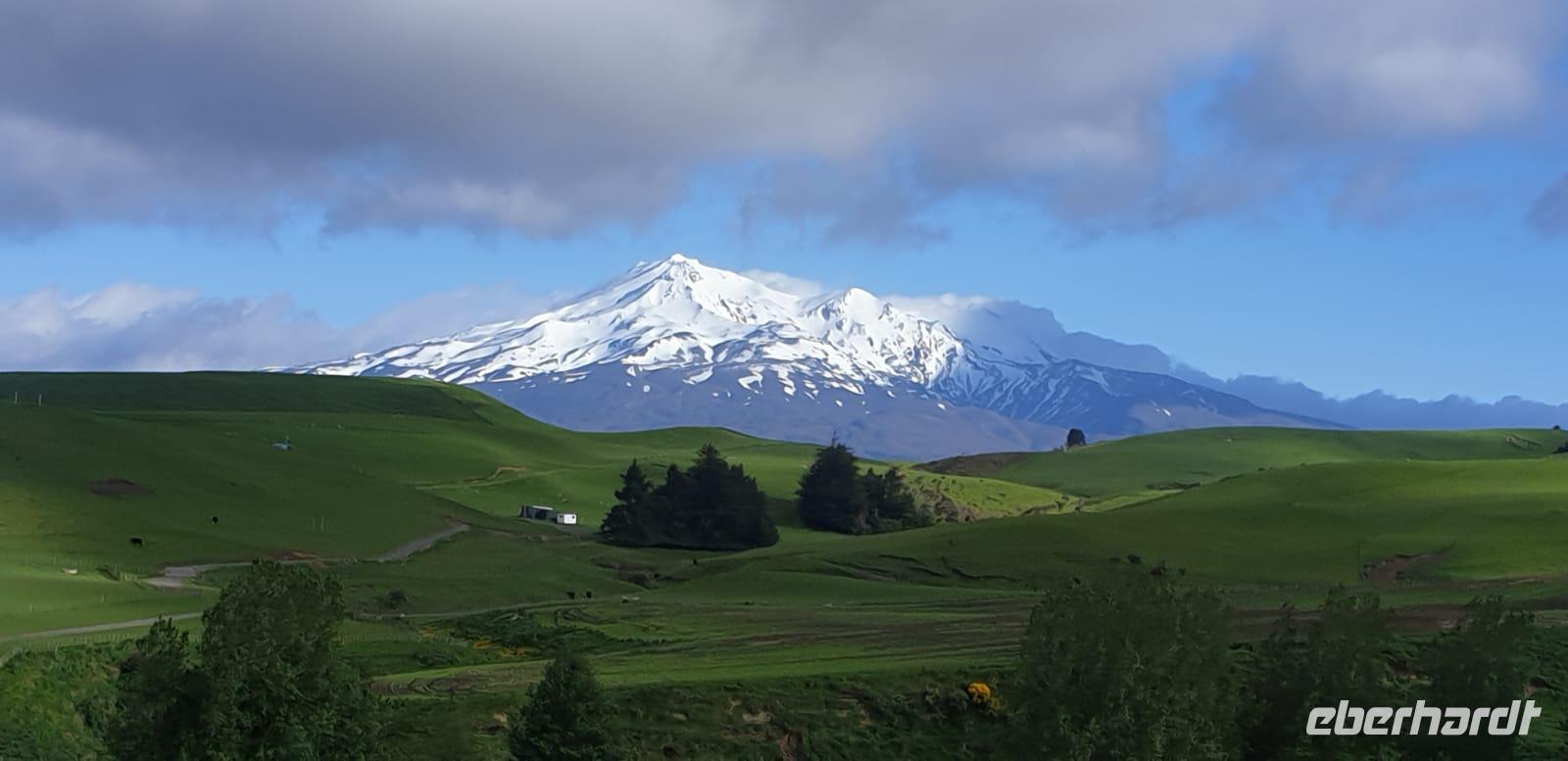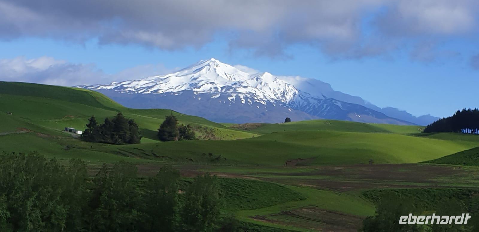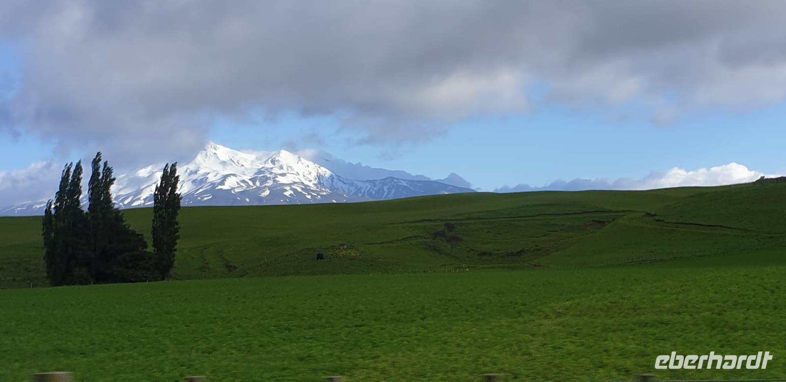 Auf dem Weg nach Wellington legen wir Fotostopps ein: am Vulkan Ruha Pehu, der schneebedeckt in der Sonne leuchtet. Der Rangi Tikey Fluss ist nicht zu sehen, so nutzen wir den Stopp für eine Brause-Pause und laben uns an dem köstlichen neuseeländischen Getränk.
