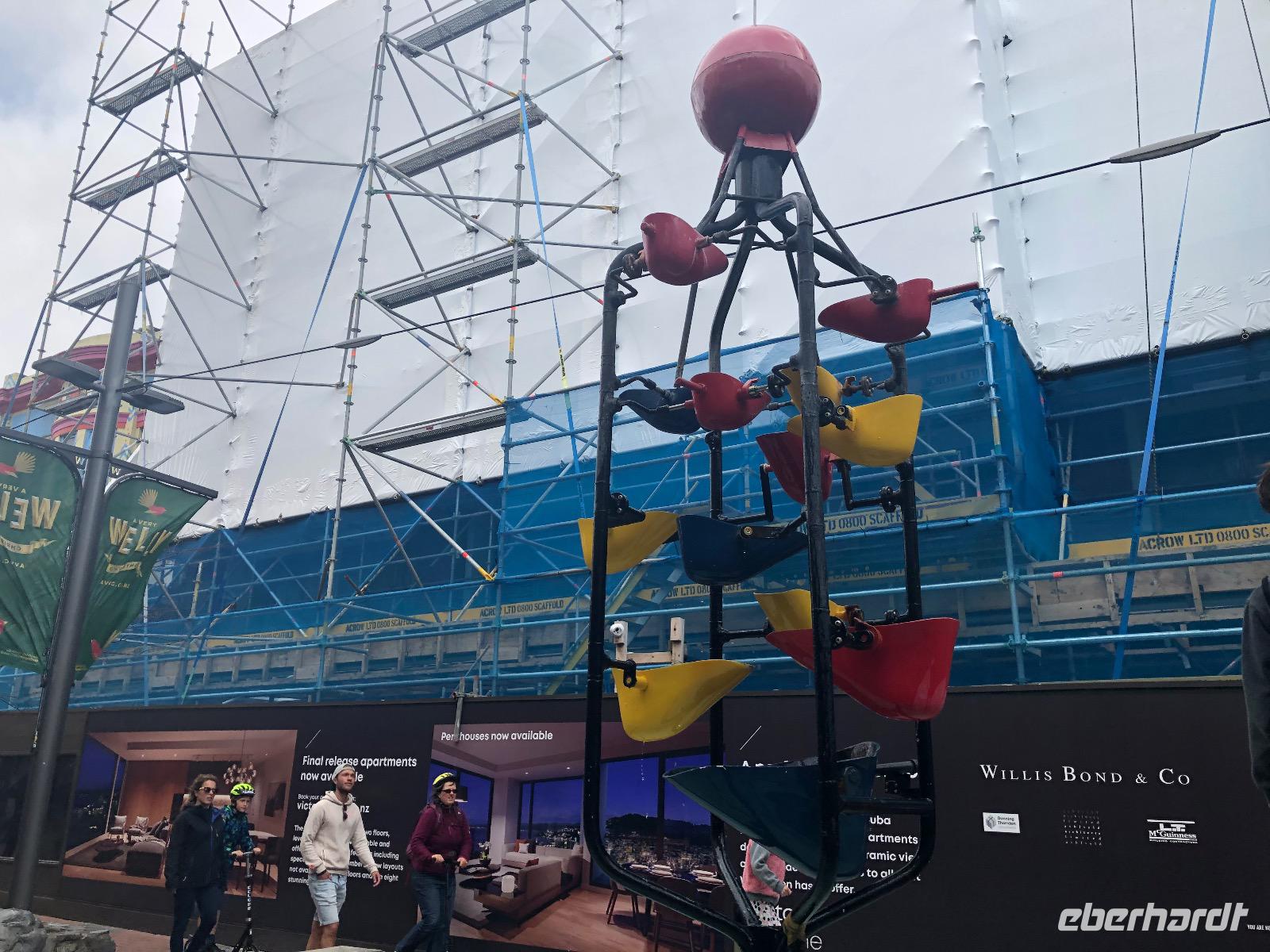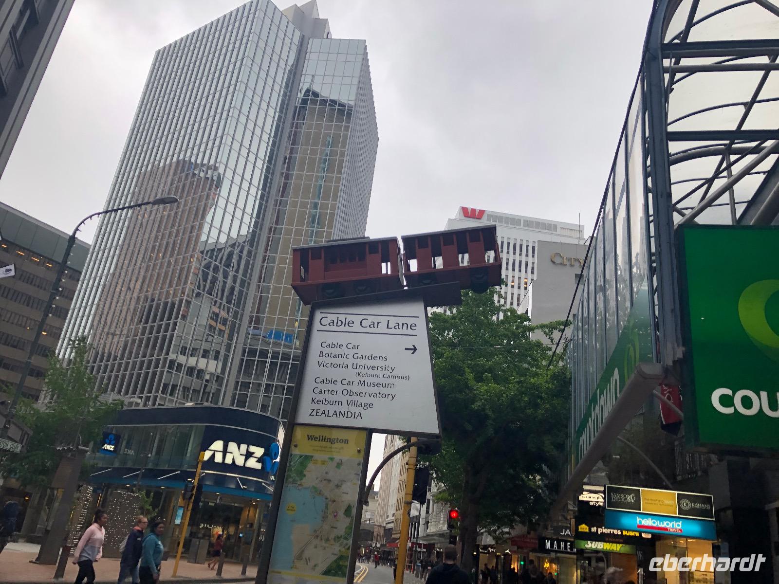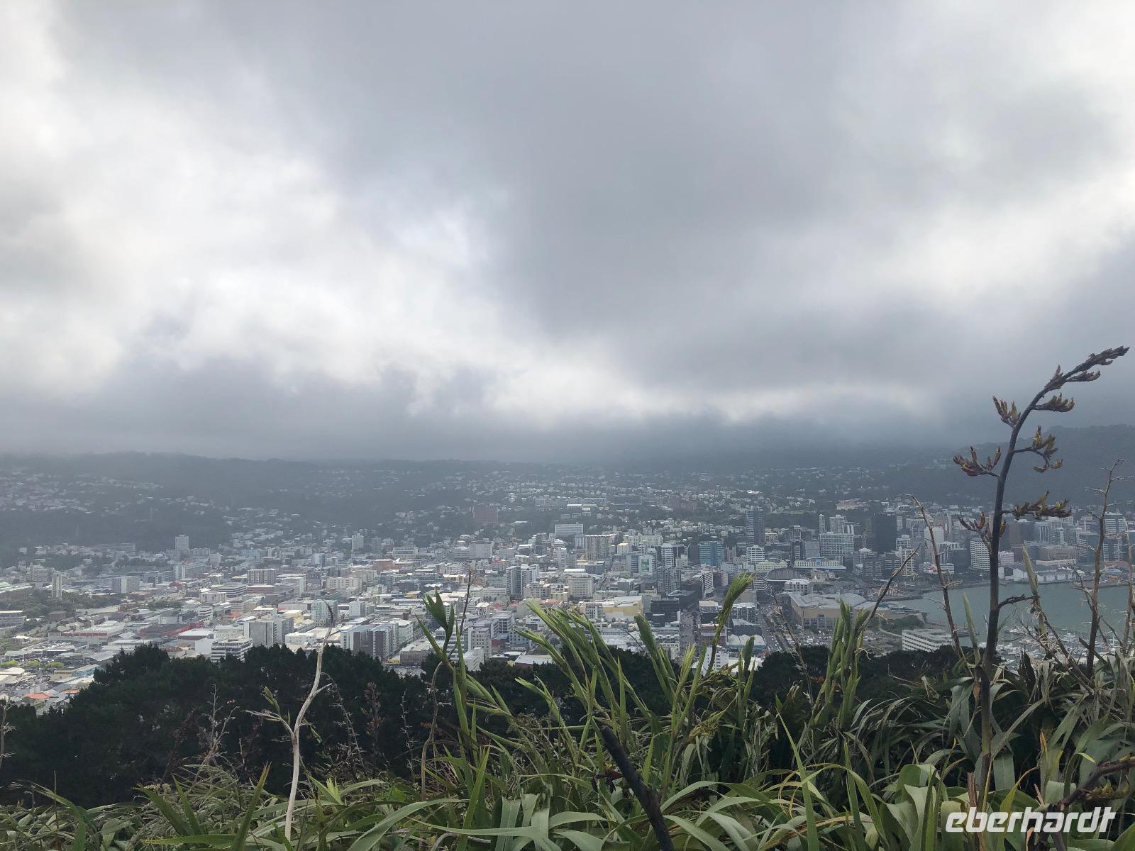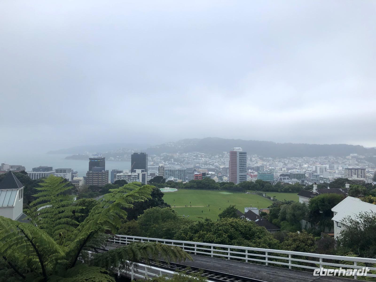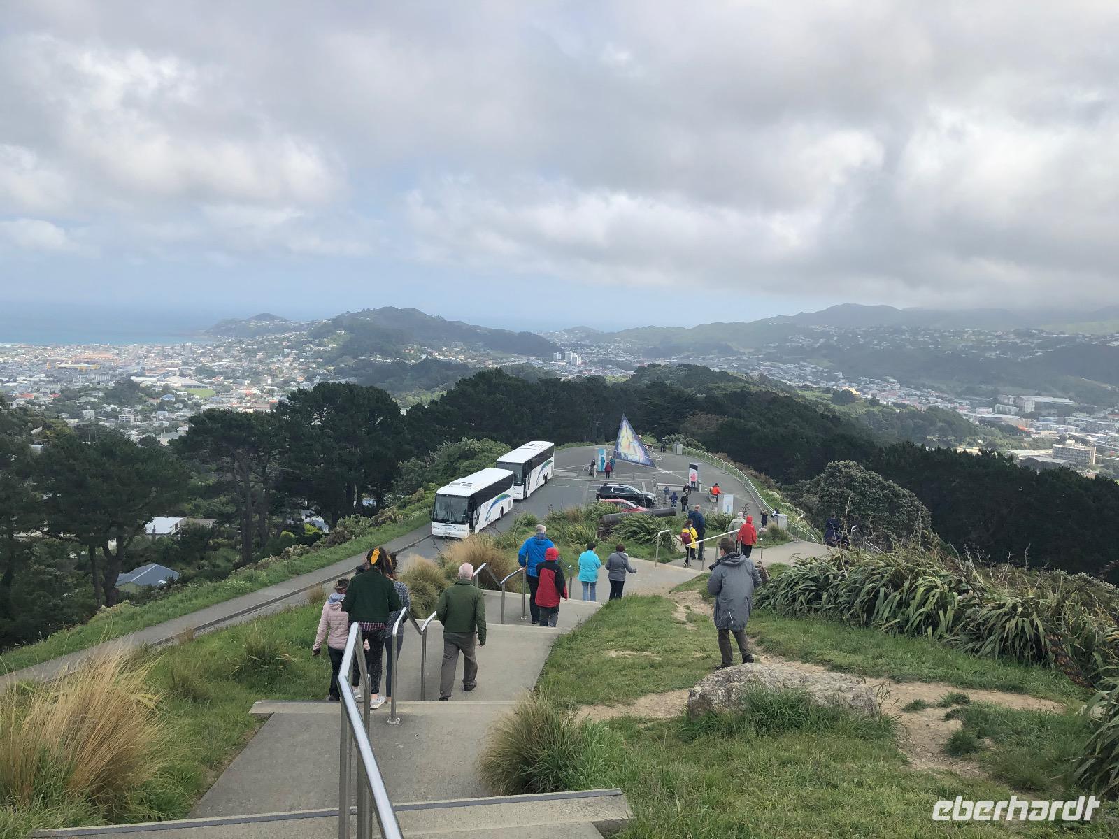 Vom Mount Victoria haben wir später einen windigen Ausblick auf Wellington. Mit der Cablecar, einer knallroten Standseilbahn, fahren wir auf eine andere Anhöhe, doch der Blick auf die Stadt versinkt im Grau des ausklingenden Tages.