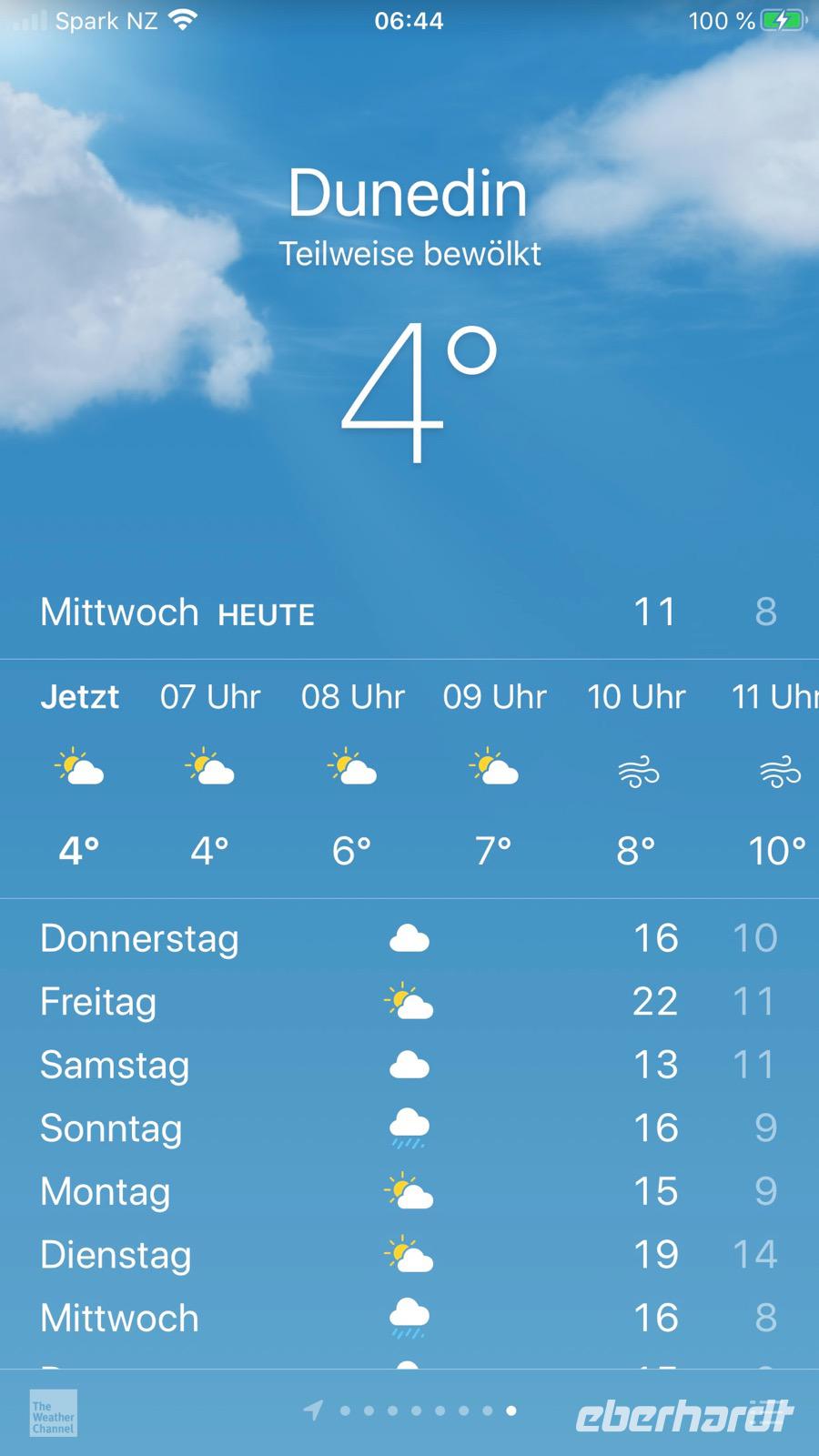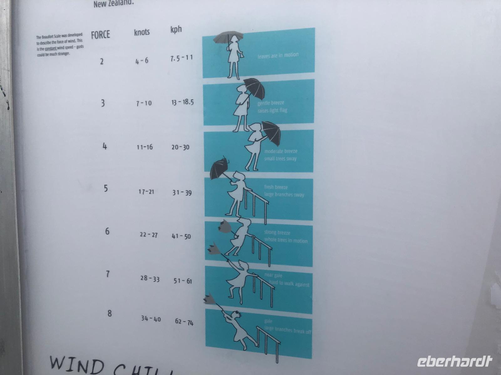 Wetter: frisch, windig; auf der Südinsel sonnig und etwas wärmer