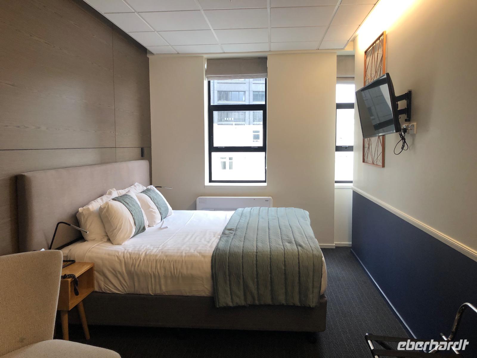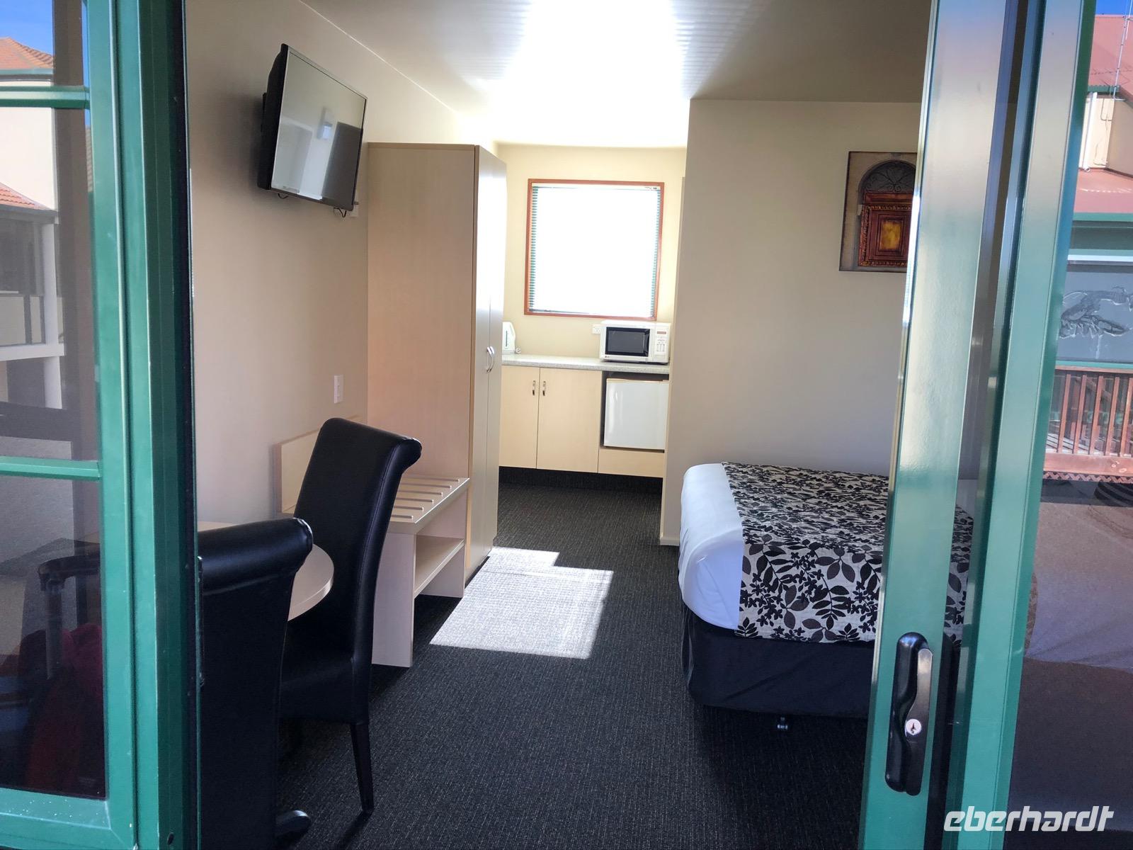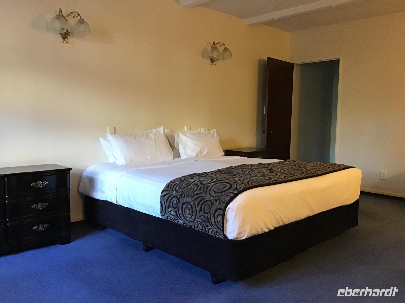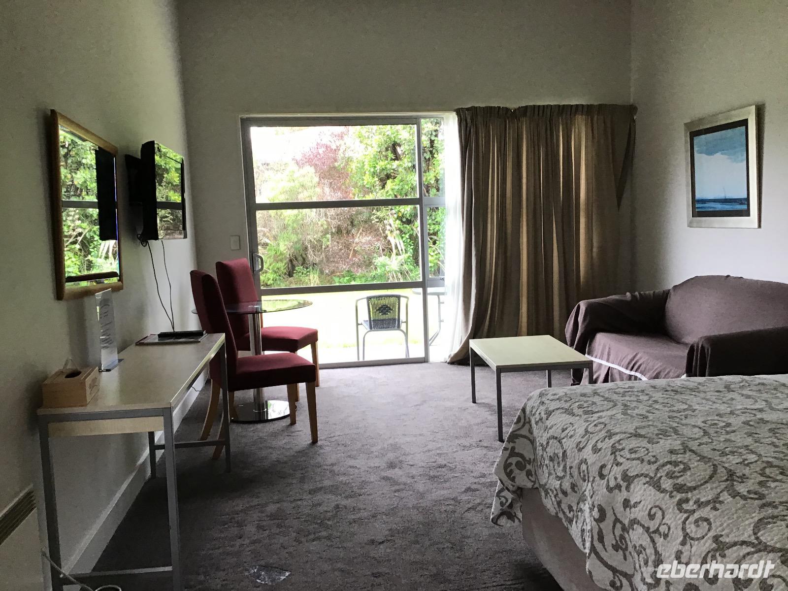 Das Hotel liegt außerhalb des kleinen Stadtzentrums von Greymouth. Es gibt keine Restaurants oder Einkaufsmöglichkeiten in der Nähe. Die Zimmer sind ausreichend groß, die Betten etwas härter, als wir es in den letzten Tagen/Nächten gewohnt waren.