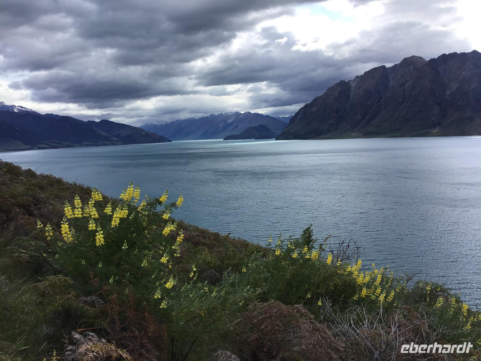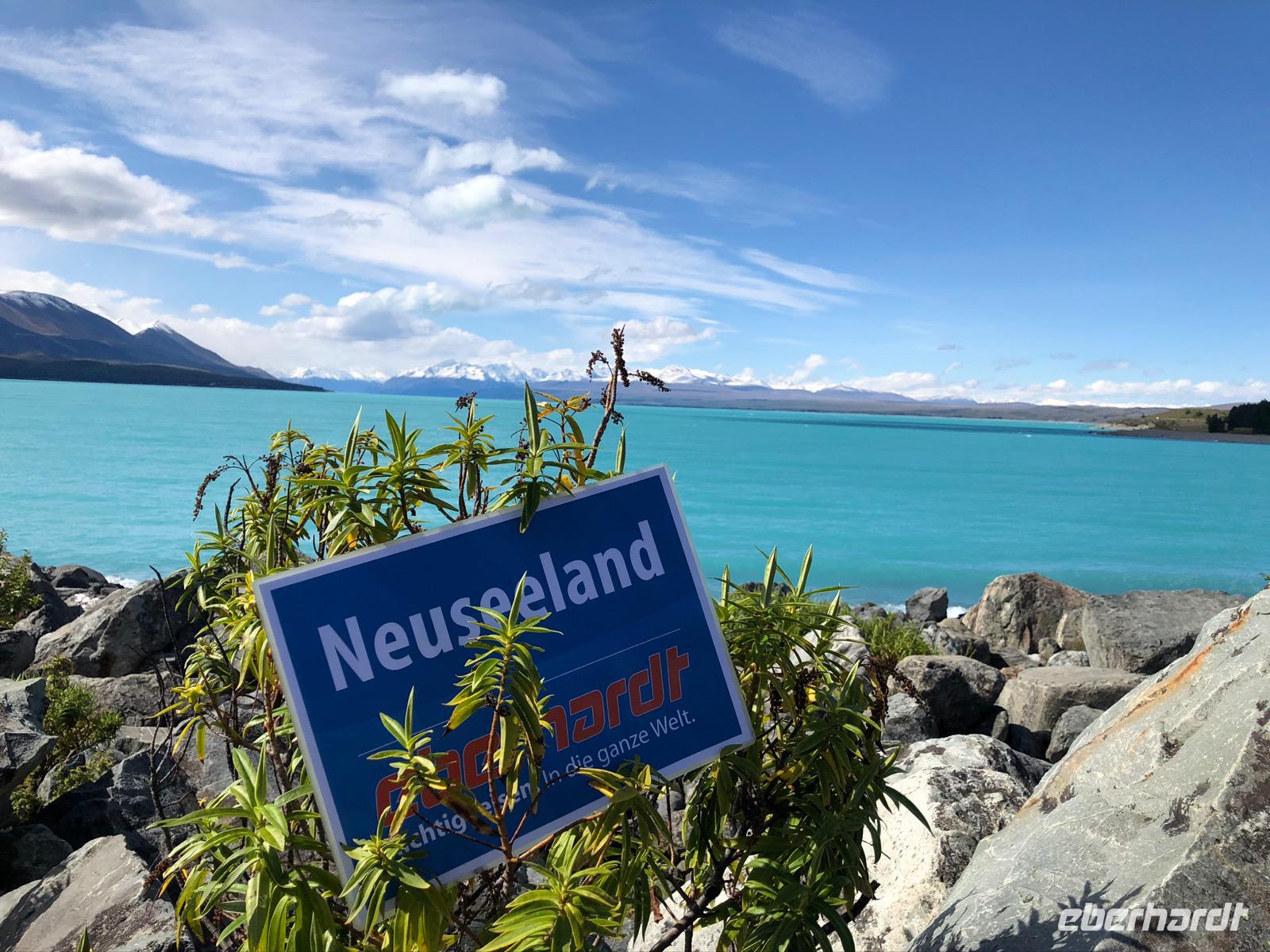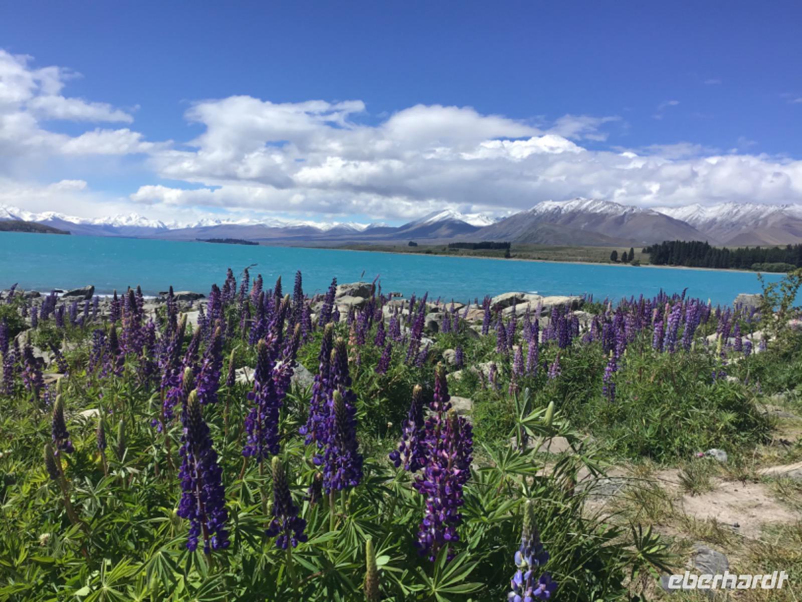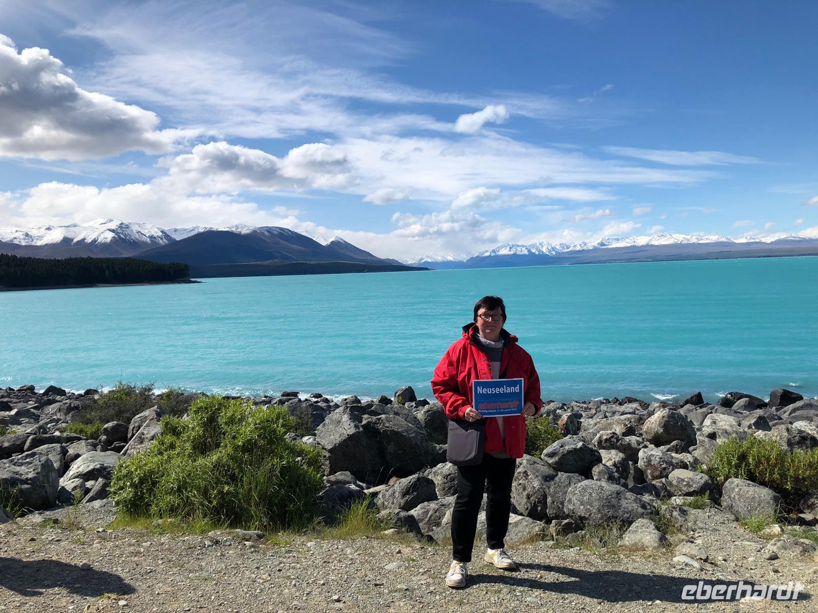 Türkisblaue Seen, umgeben von schneebedeckten Bergen, heute erleben wir ein wahres Postkartenpanorama. Sowohl am Lake Tekapo als auch am See Pukaki verweilen wir mit staunenden Augen. Was haben wir für ein Glück.