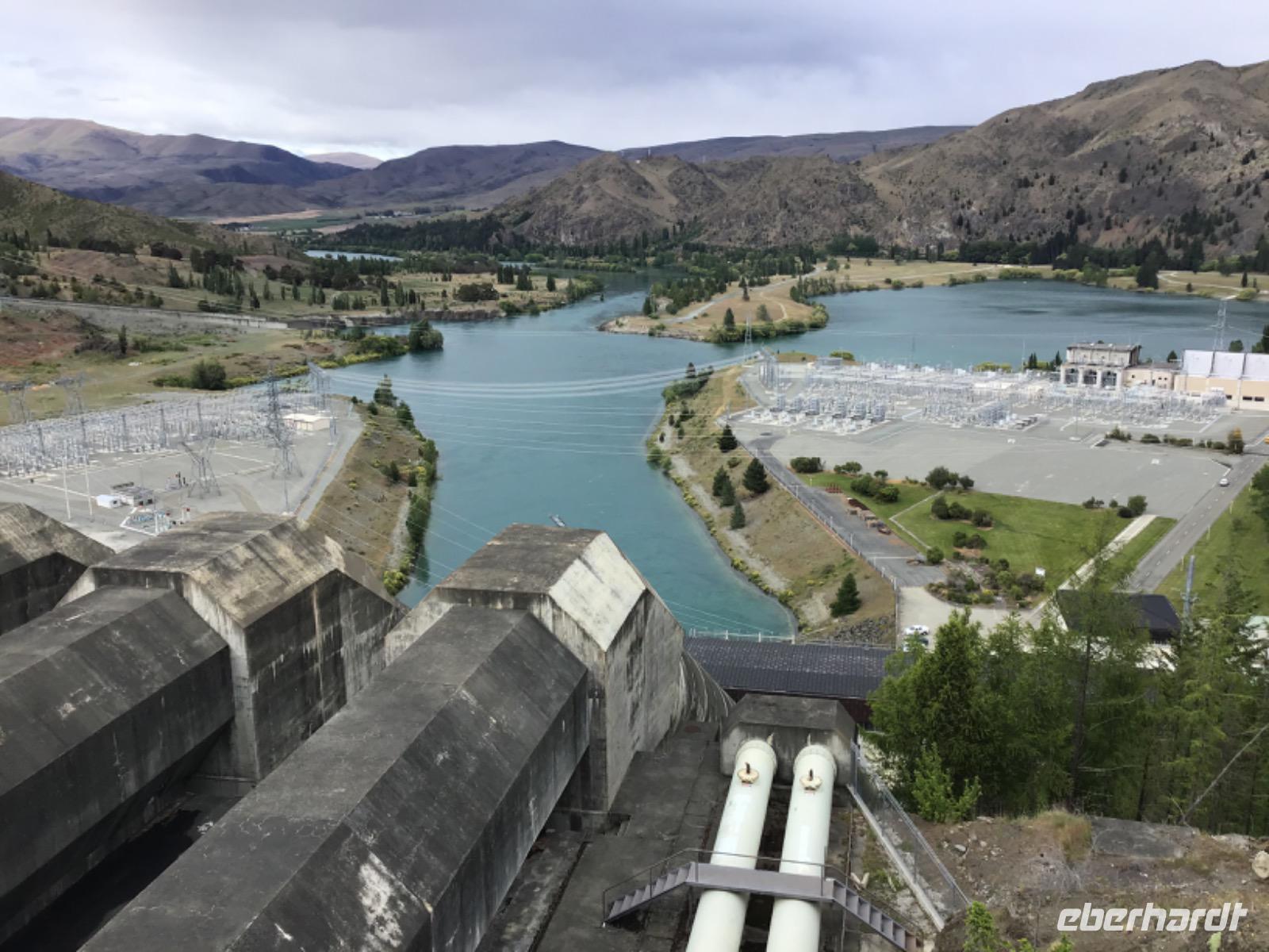 Bei Benmore legen wir einen Fotostopp an einem Staudamm ein. Wir spazieren über die Staumauer und Dale, unser Busfahrer, sammelt uns auf der anderen Seite wieder ein.