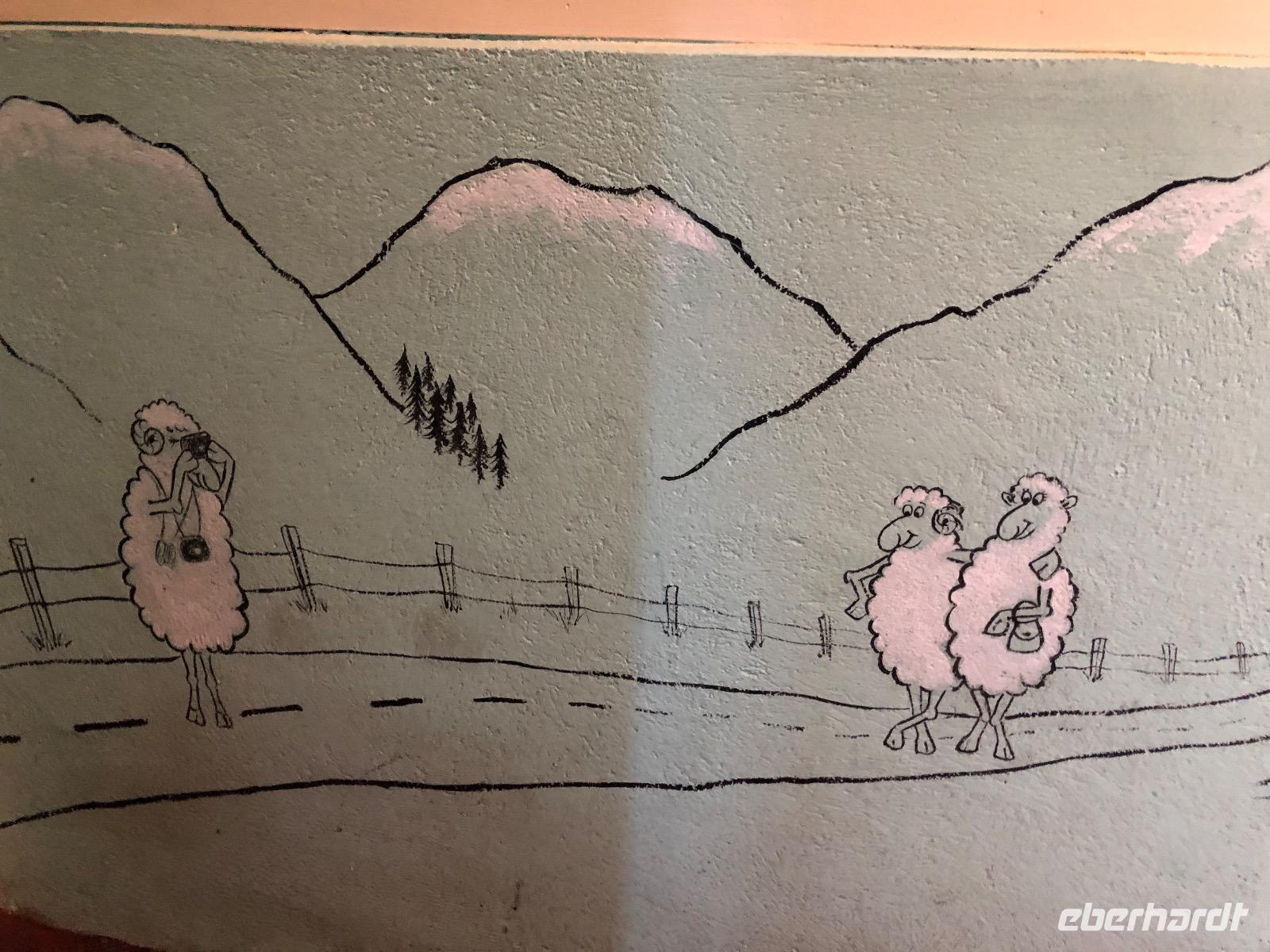 Halb elf werden die ersten Schafe gesichtet. Naja, so viele Schafe sind es ja gar nicht mehr. 1976 waren es 96 Millionen Schafe und drei Millionen Menschen, heute sind es nur noch 30 Millionen Schafe, aber fünf Millionen Menschen.