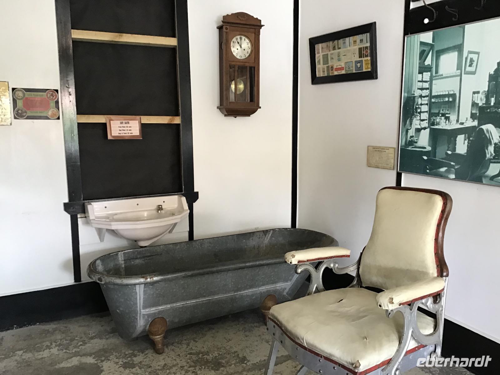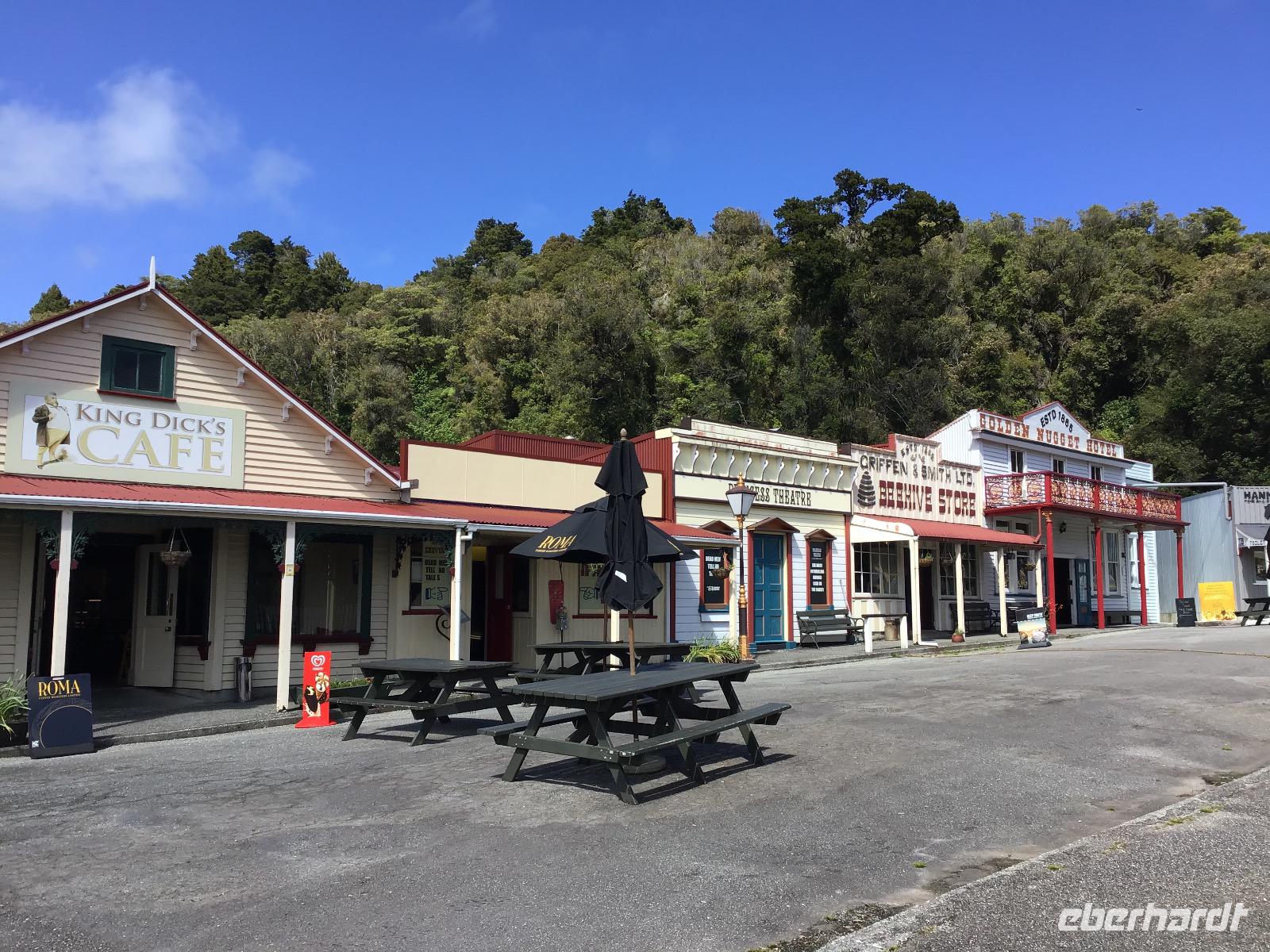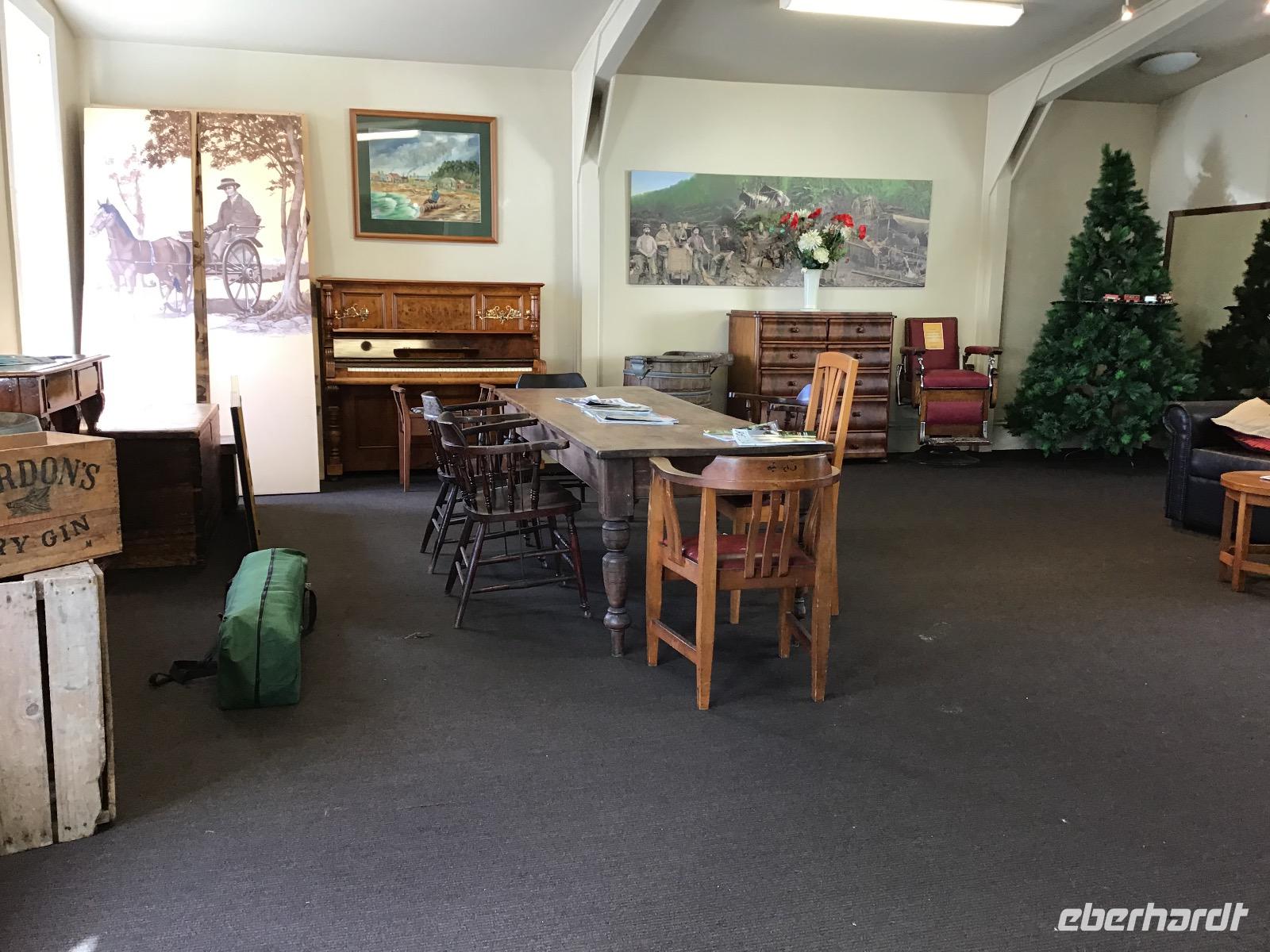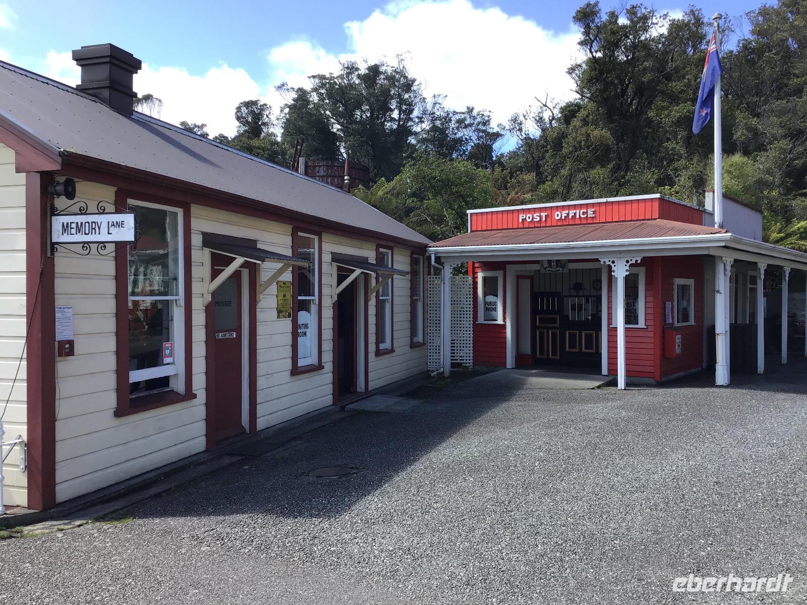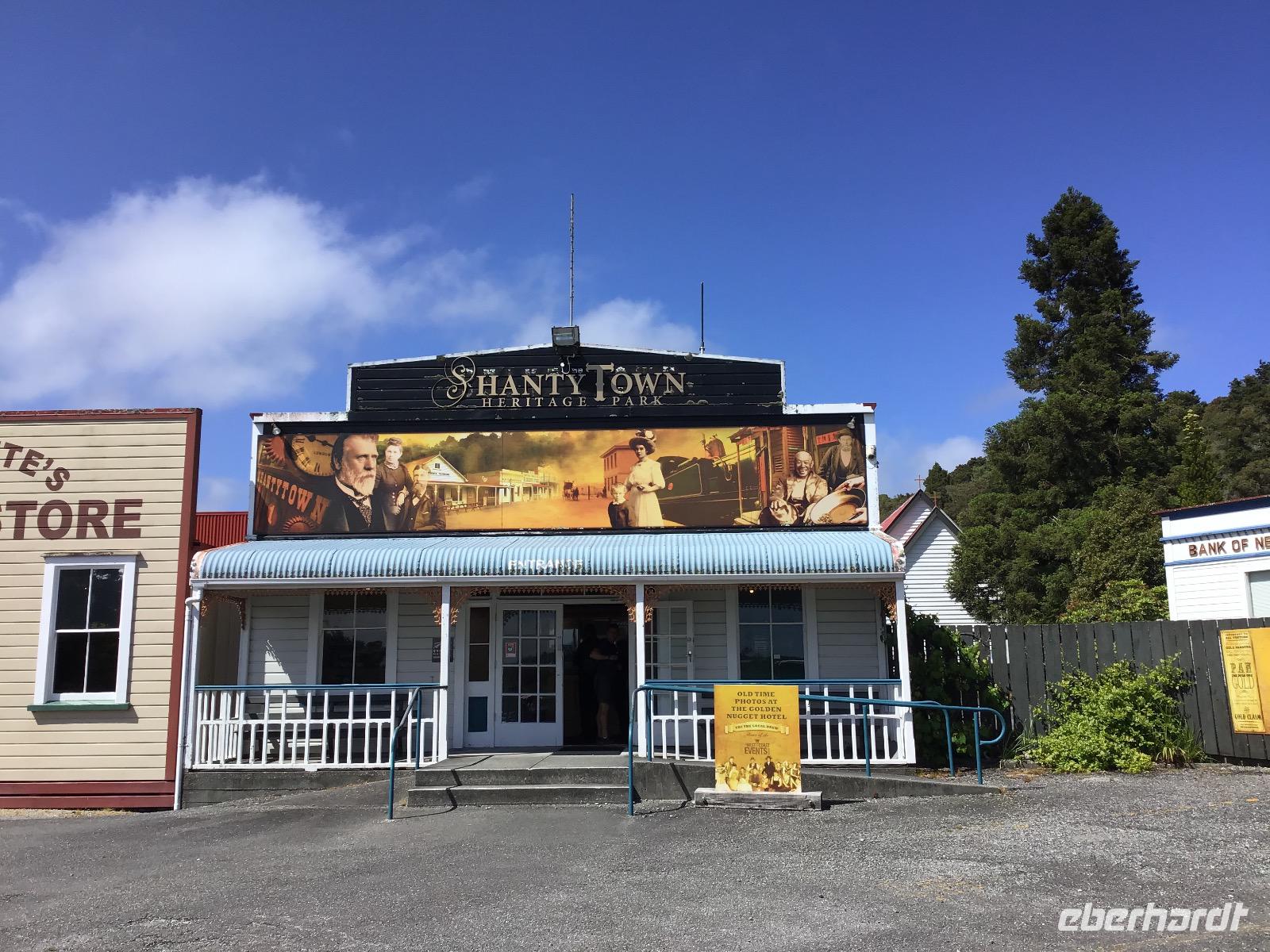 Nun besuchen wir Shanty Town. Hier ist eine alte Goldgräberstadt aufgebaut. Es gibt ein Postoffice (wo man sogar Post einwerfen kann und mit einem besonderen Stempel belohnt wird), einen Saloon, einen Barbier, einen Schumacher und viele andere Häuser von alten Handwerken.