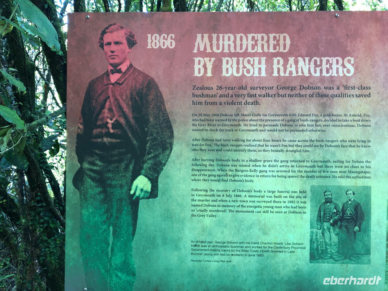 Nett ist der Aufenthalt in Hokitika, wo uns eine junge Verkäuferin über Jadesteine aufklärt. In Greymouth fahren wir erst zum Supermarkt und dann ins Hotel. Vor dem Abendessen ist noch Zeit für einen Spaziergang in der Umgebung.