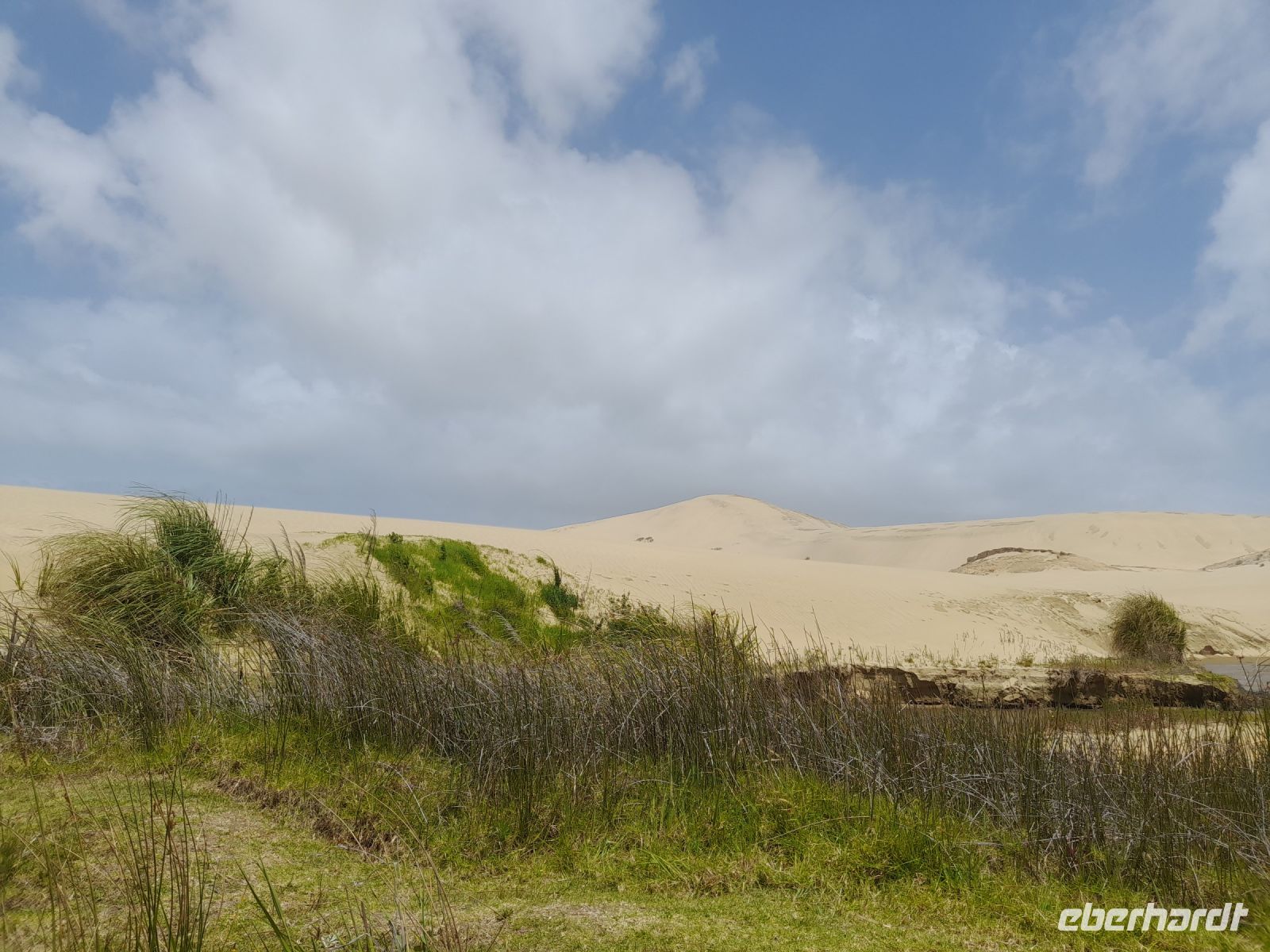 Nach einem kleinen Mitttagssnack geht es dann zu den unweit gelegenen Te Paki Dünen. Die Mutigen unter uns können auf den rund 150 Meter hohen Sandbergen das Sandboarden ausprobieren – ein riesen Spaß für Jung und Alt, wie sich einmal mehr zeigt.
